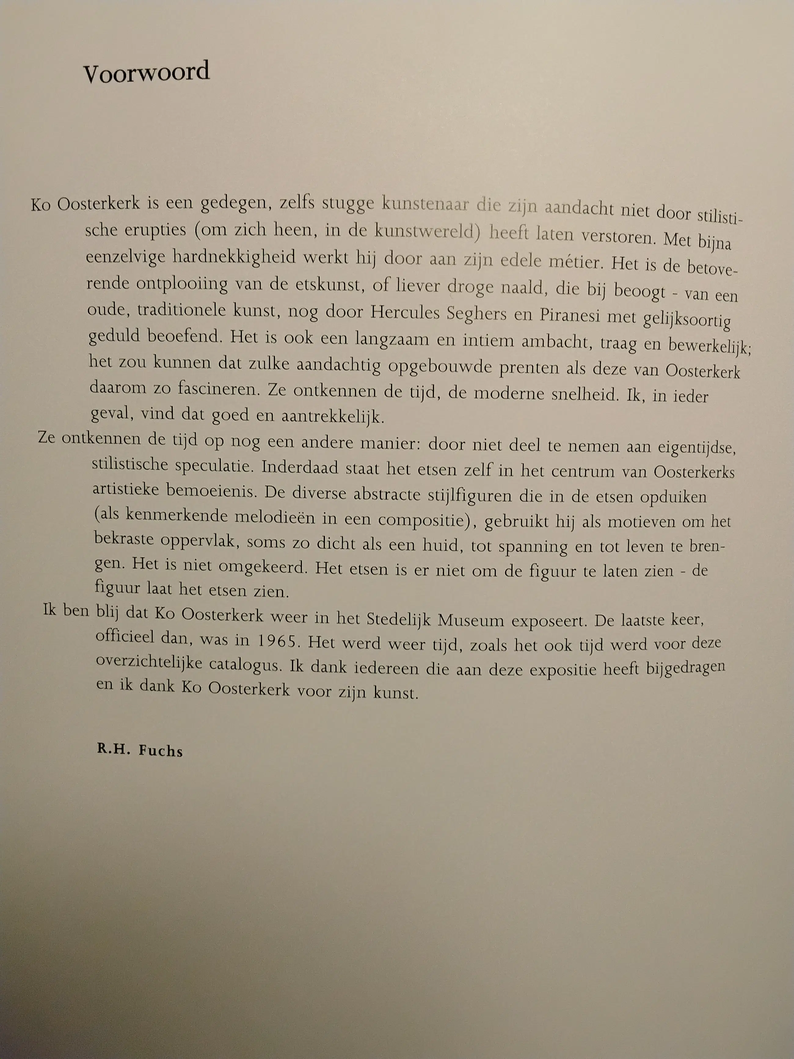 Ko Oosterkerk heeft in 1993 geexposeerd in het Stedelijk Museum in Amsterdam met droge naald etsen. De aangeboden ets is een vroeg werk uit 1963, het jaar dat hij voor de eerste keer exposeerde in het Stedelijk. Gedrukt op stevig geschept papier met een beeldmaat van 39x24 en het werk verkeerd in zeer goede staat.