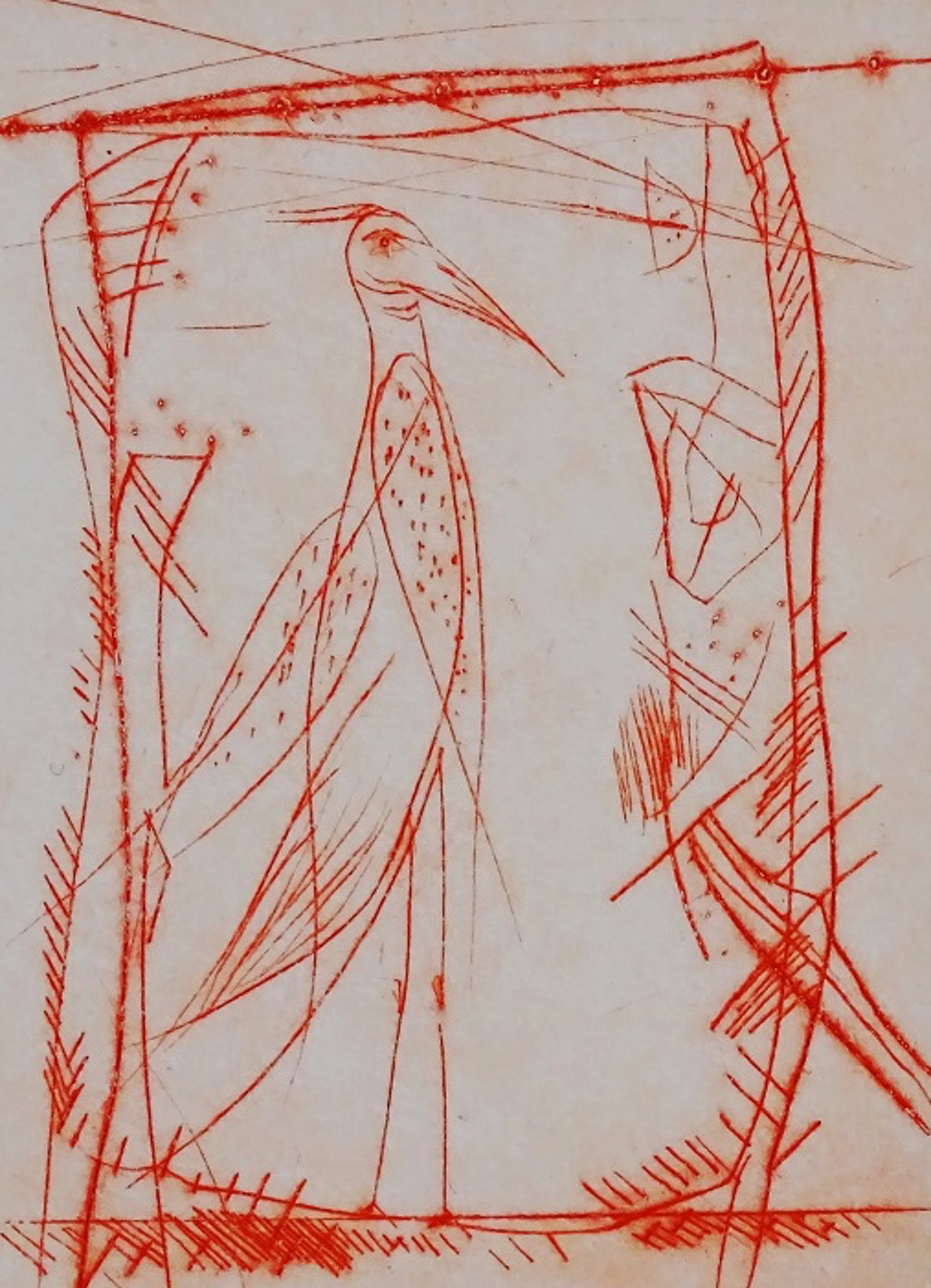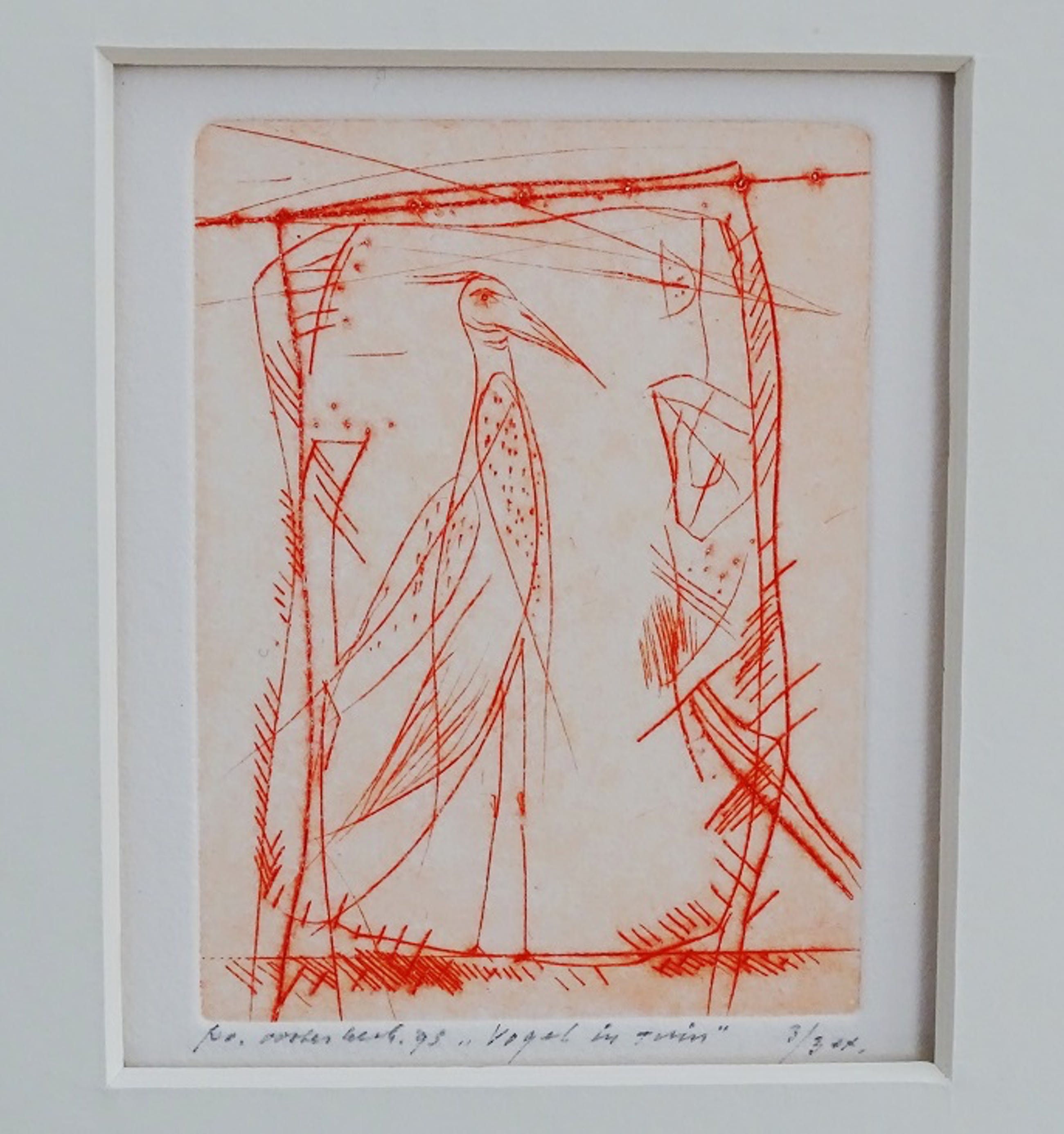 fraaie ets in rood, rechtstreeks uit het atelier van de kunstenaar gekocht