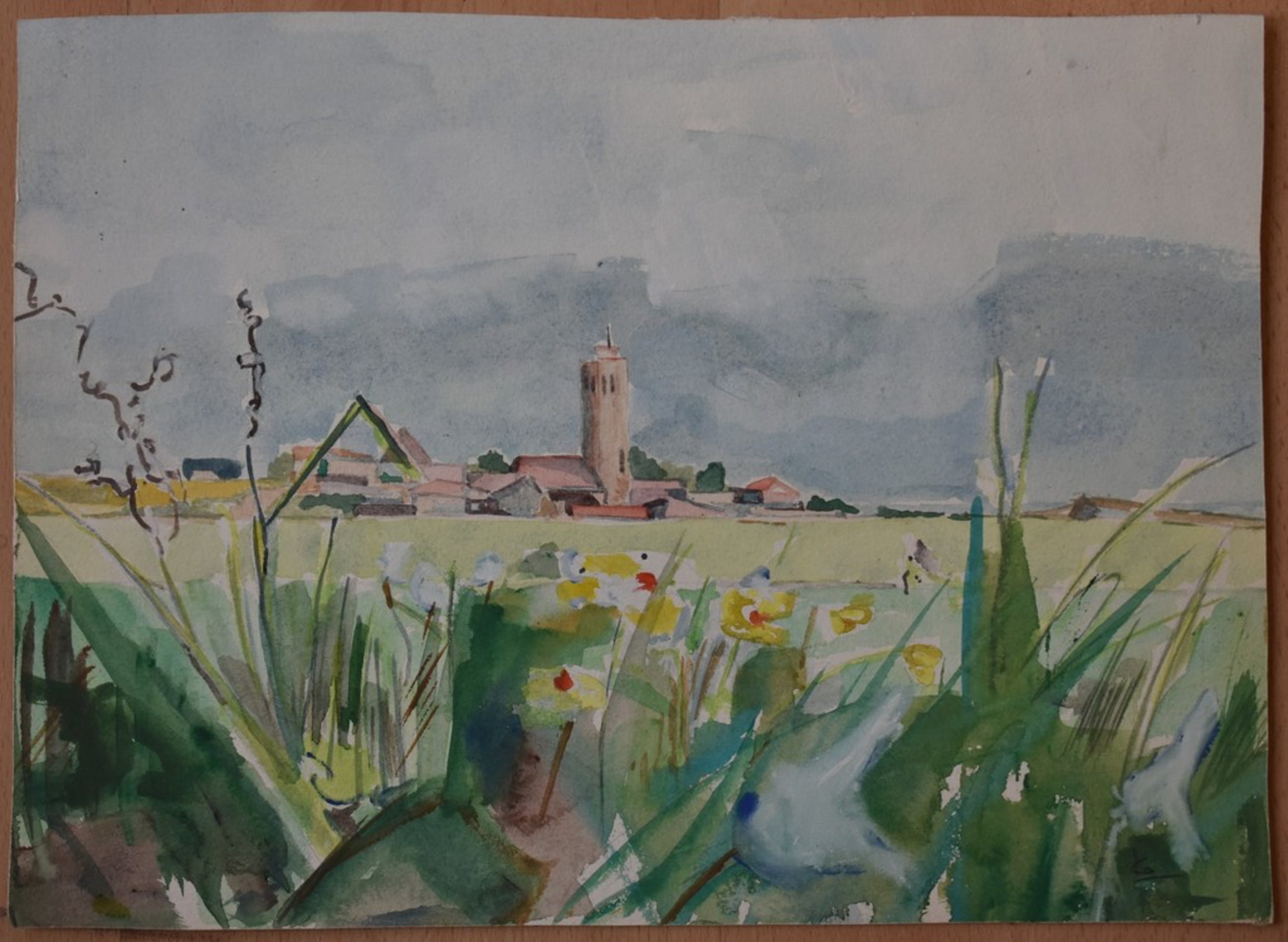 De aquarel is in perfecte nieuwstaat. Maat : 29,5x40 cm. Is gesigneerd Ko. De lokatie is mij niet bekend.
