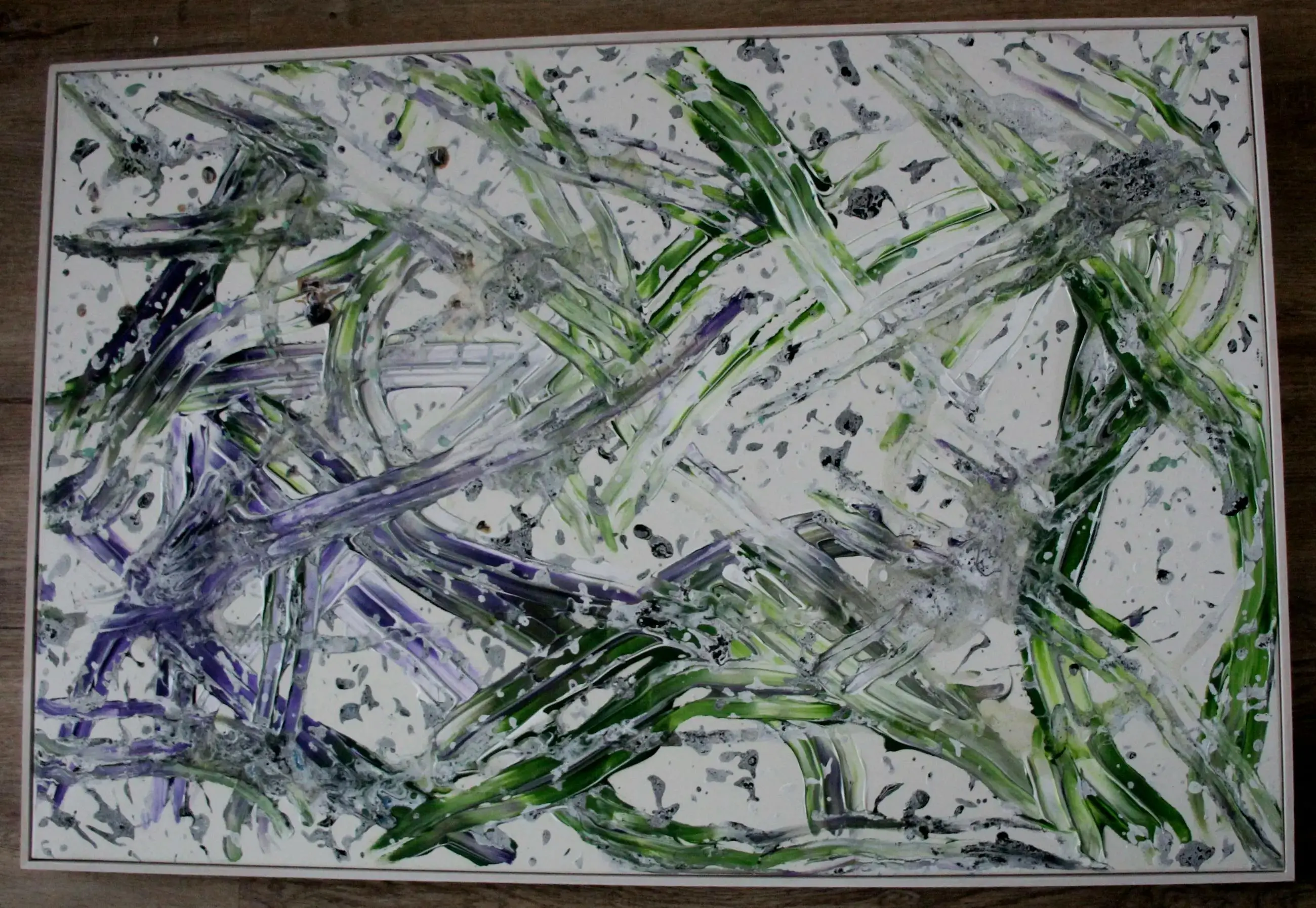Acryl met lak, op canvas, van Koen Deleare. Jaar: 2004. Afmetingen incl lijst: H82 x b122cm. Afmetingen voorstelling: H80 x b120cm. Het werk is, achterop, gesigneerd en gedateerd door de kunstenaar. De authenticiteit van het aangeboden werk wordt volledig gegarandeerd. Een certificaat van echtheid wordt, op aanvraag, gemaild.