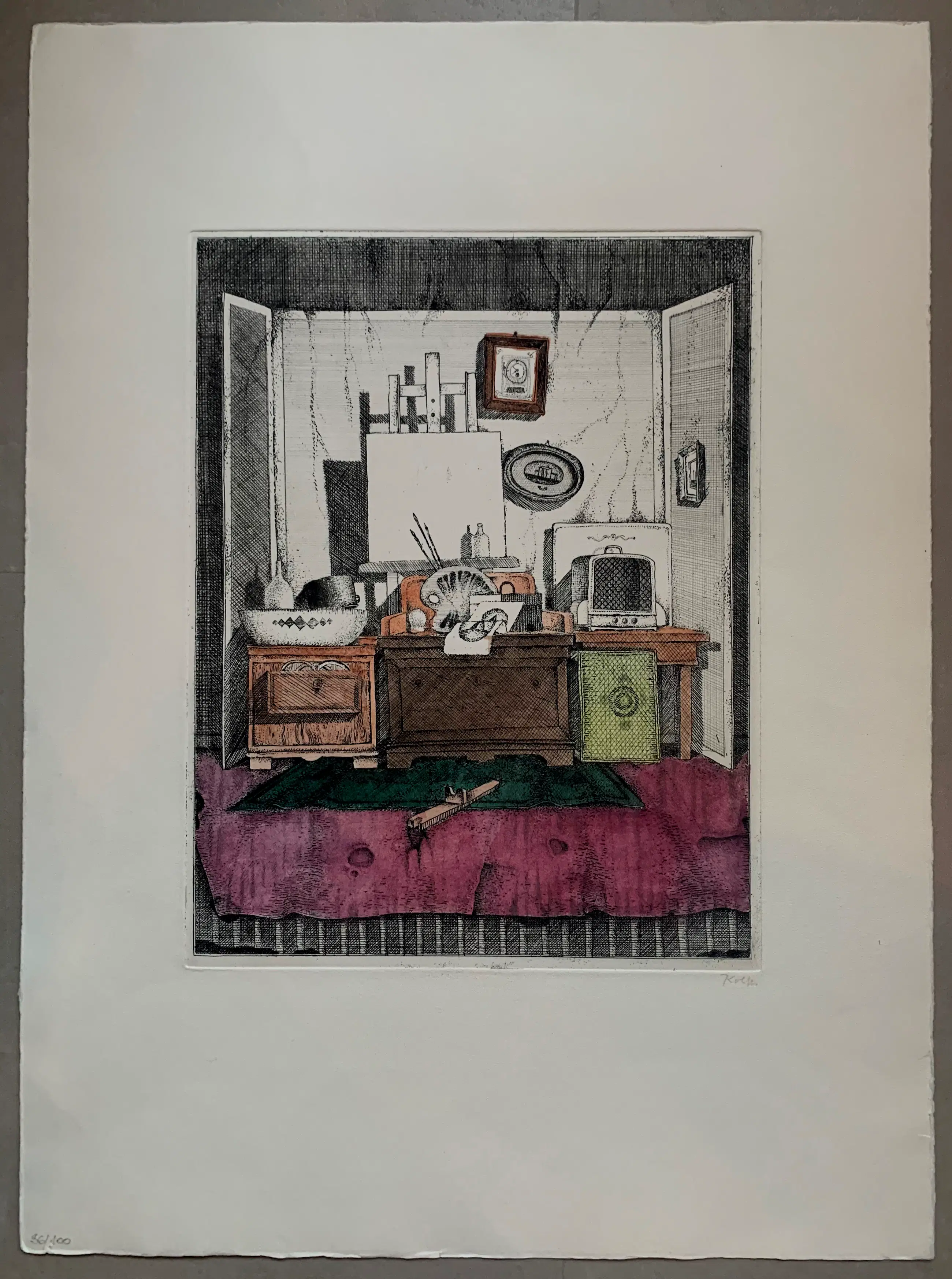 Ets van Koen Scherpereel. Afmetingen blad: H53 x b39cm. Afmetingen voorstelling: H31 x b24cm. Het werk is rechtsonder, met potlood, gesigneerd door de kunstenaar. De authenticiteit van het, aangeboden, werk wordt volledig gegarandeerd. Een certificaat van echtheid kan, op aanvraag, worden gemaild.