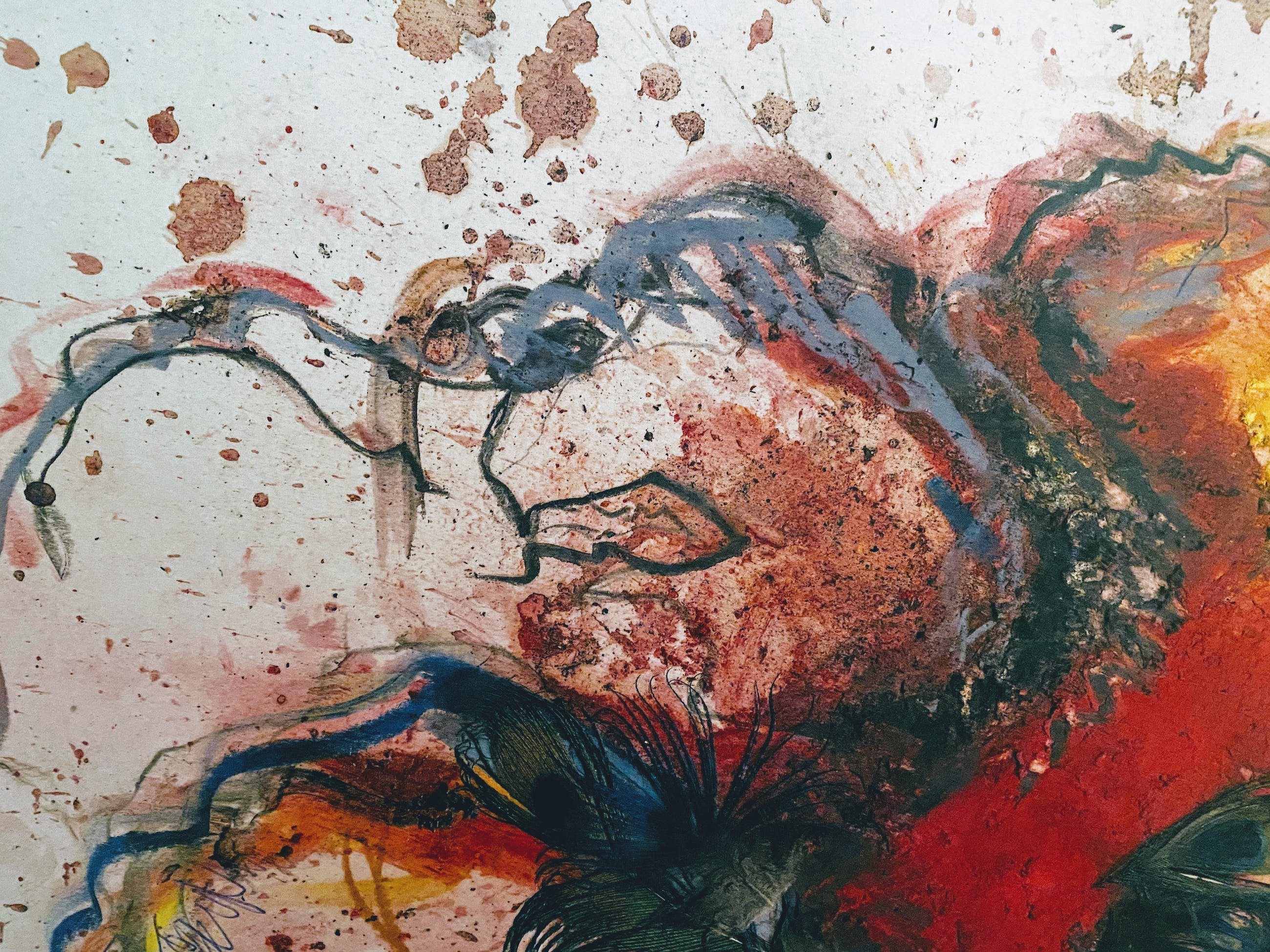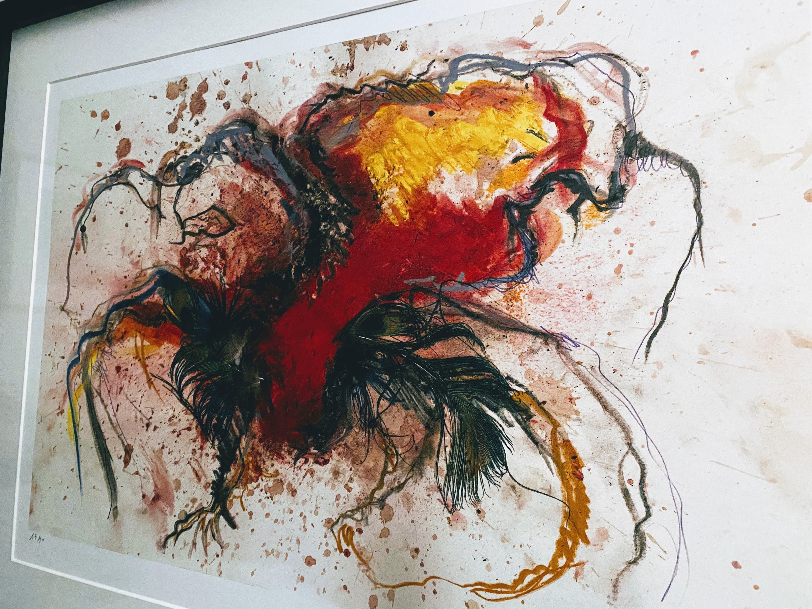 Prachtige, zeldzame offsetlitho van Koen Vanmechelen. Genummerd op 80 exemplaren. Dit is nummer 13/80. Handgesigneerd door de kunstenaar.