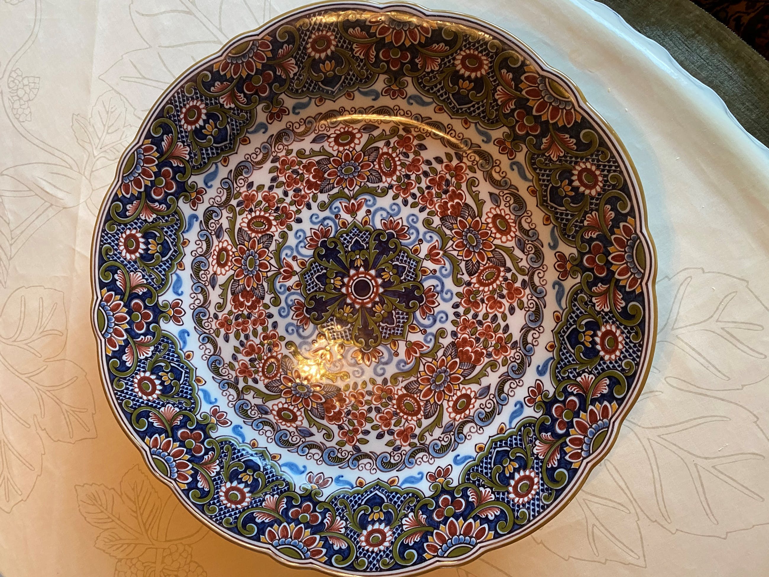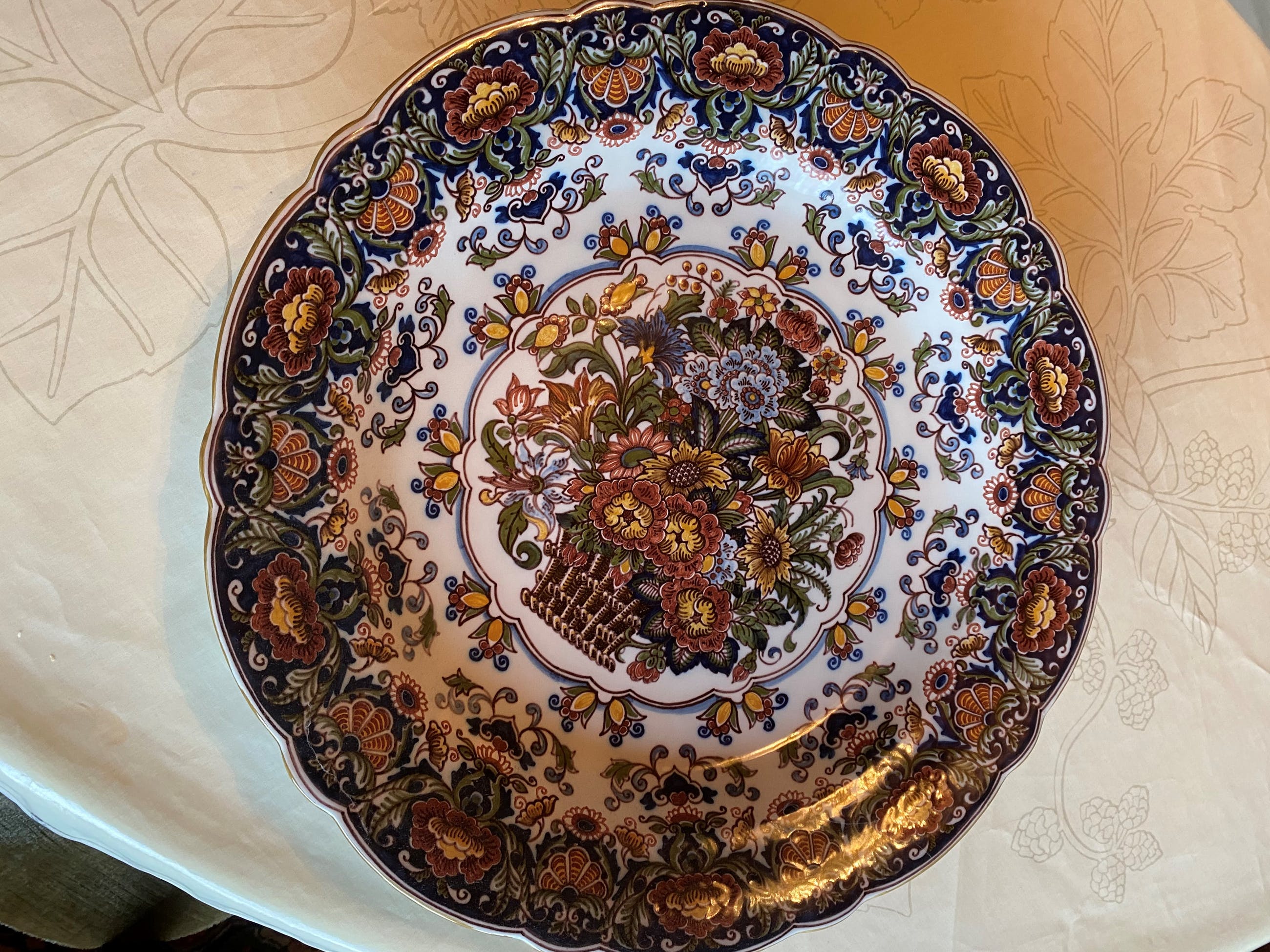 Plateel Makkum schotels. Polychrome bloemdecoratie 20e eeuw Origineel Hollands Aardewerk (AVA Holland)