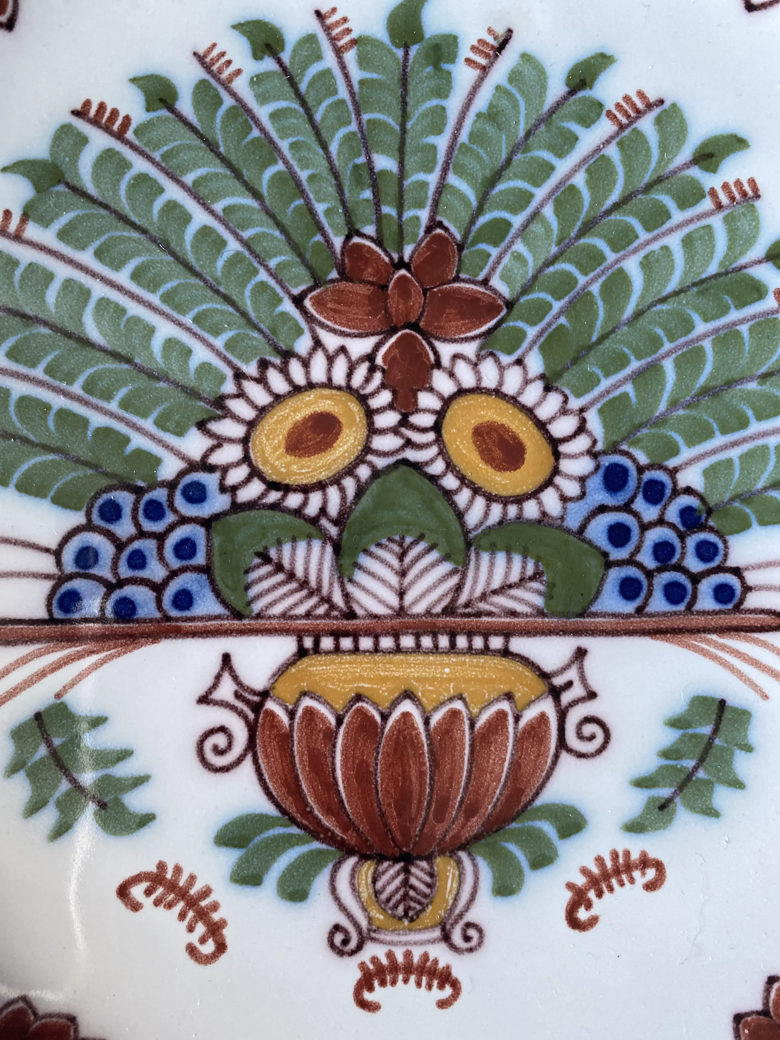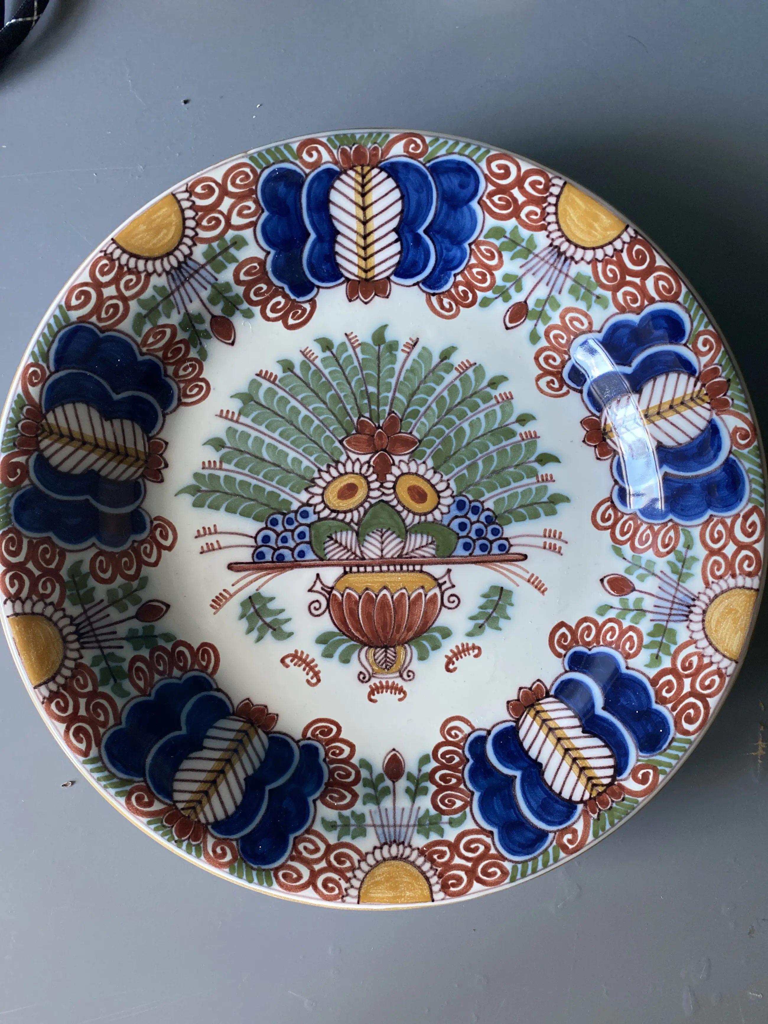 Wandbord 28cm rond van makkumer aardewerk in oudhollandse kleurstelling