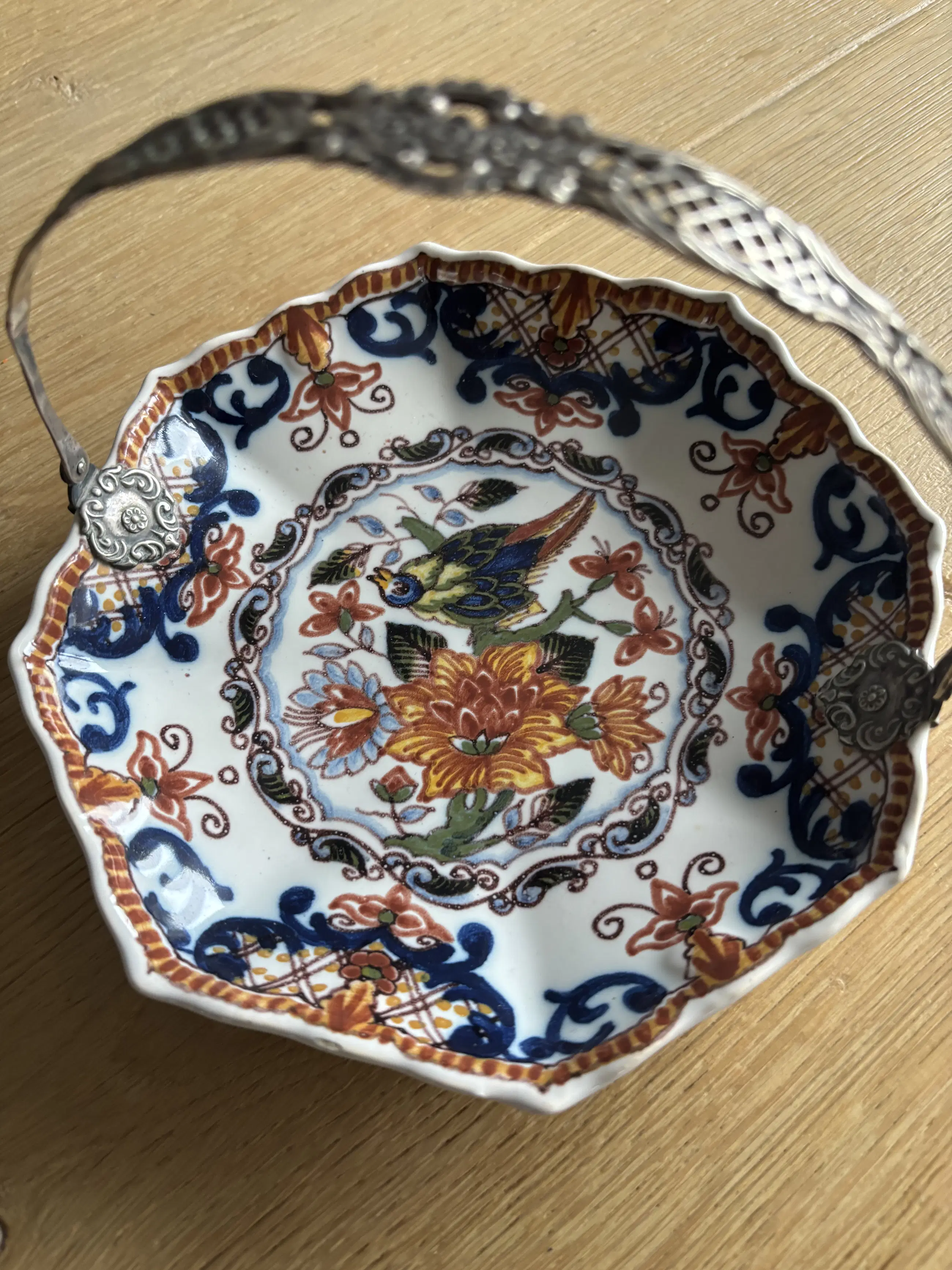 Koninklijke Tichelaar Makkum - Tichelaar Makkum schaaltje met zilverkleurige beugel