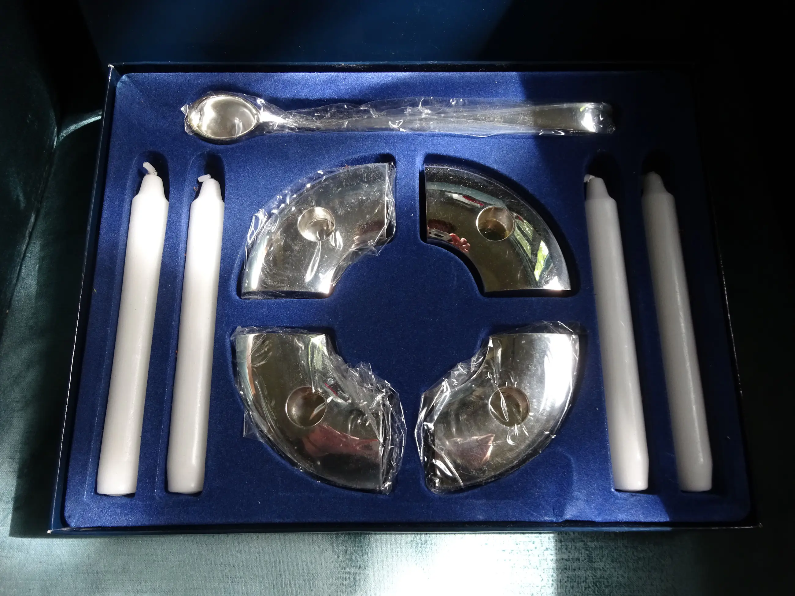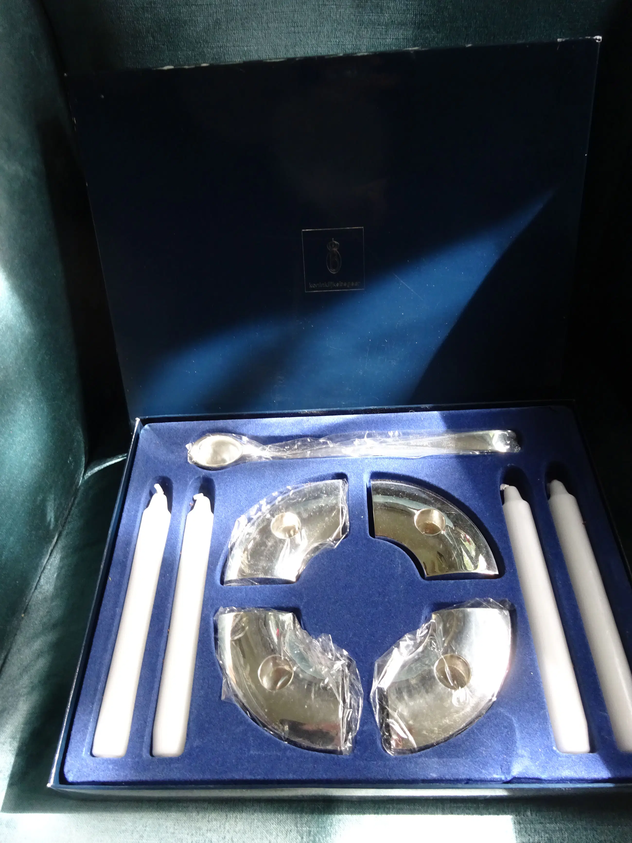 Aan de onderzijde van de kandelaars is voorzien van vilt Jaar: begin 21e eeuwConditie: als nieuw, een enkel productie mini oneffenheidje, in de originele doos en verpakking