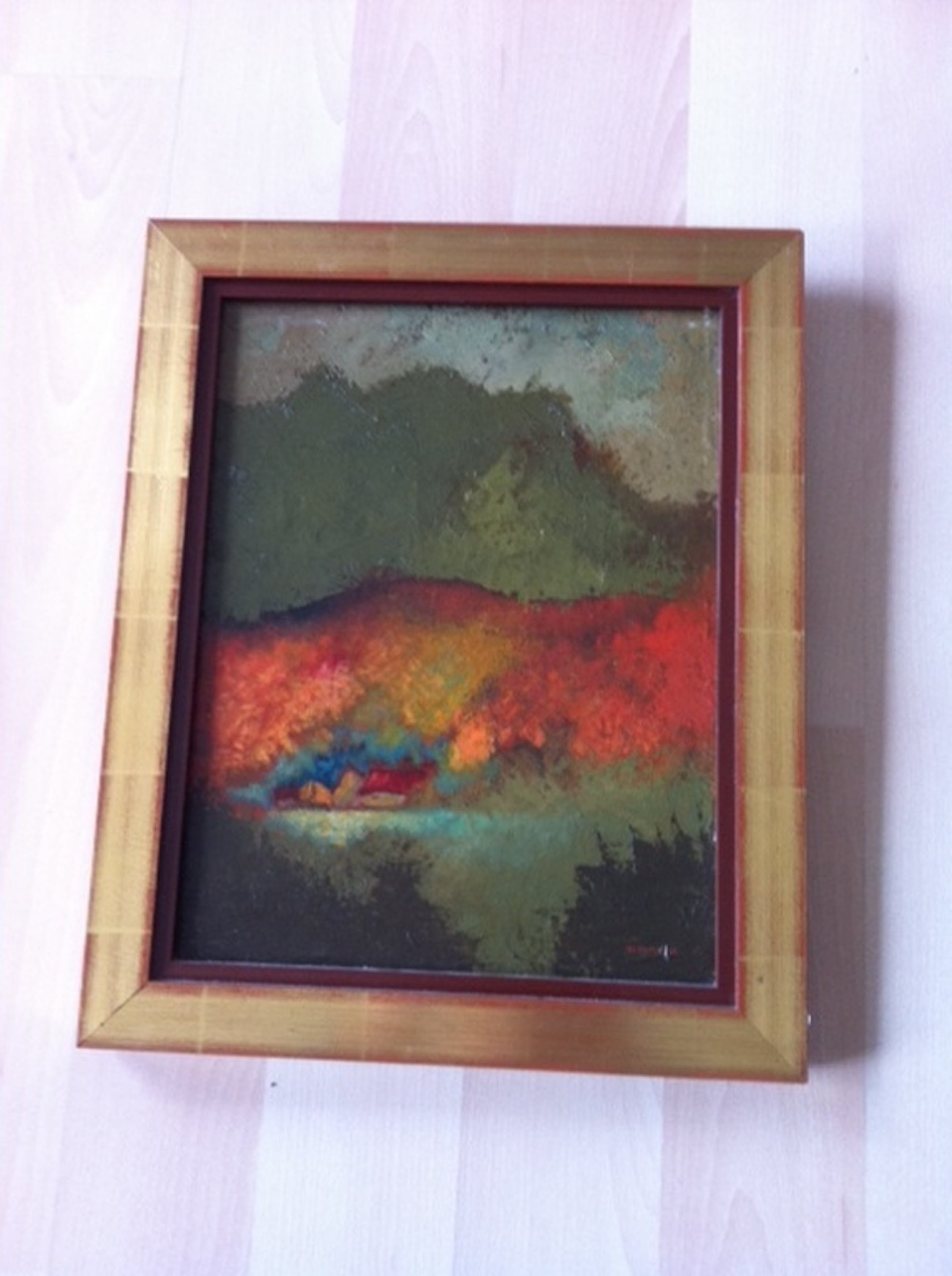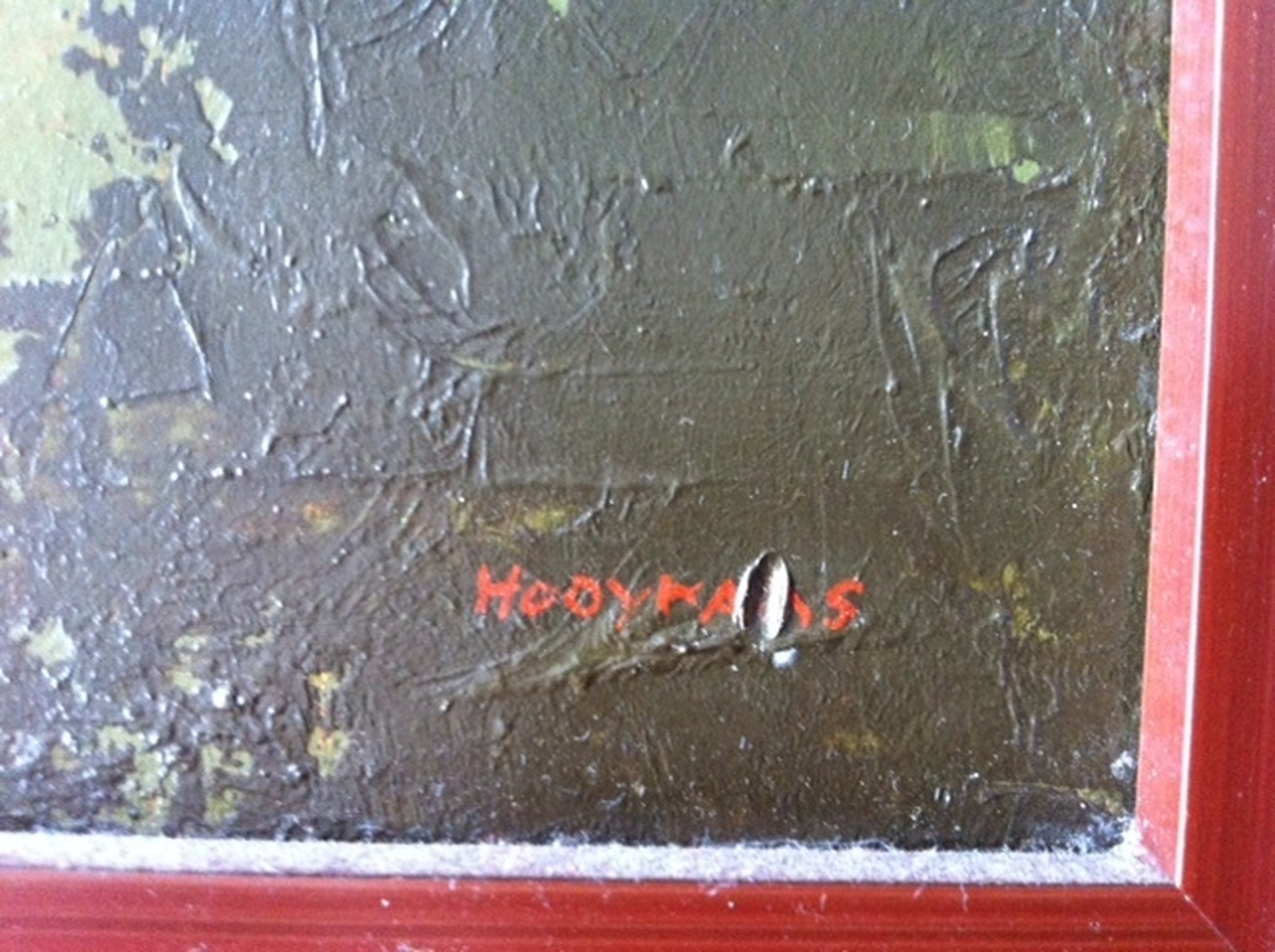 Olieverf op doek, 35 bij 27 cm; gevat in lijst. Signatuur r.o.