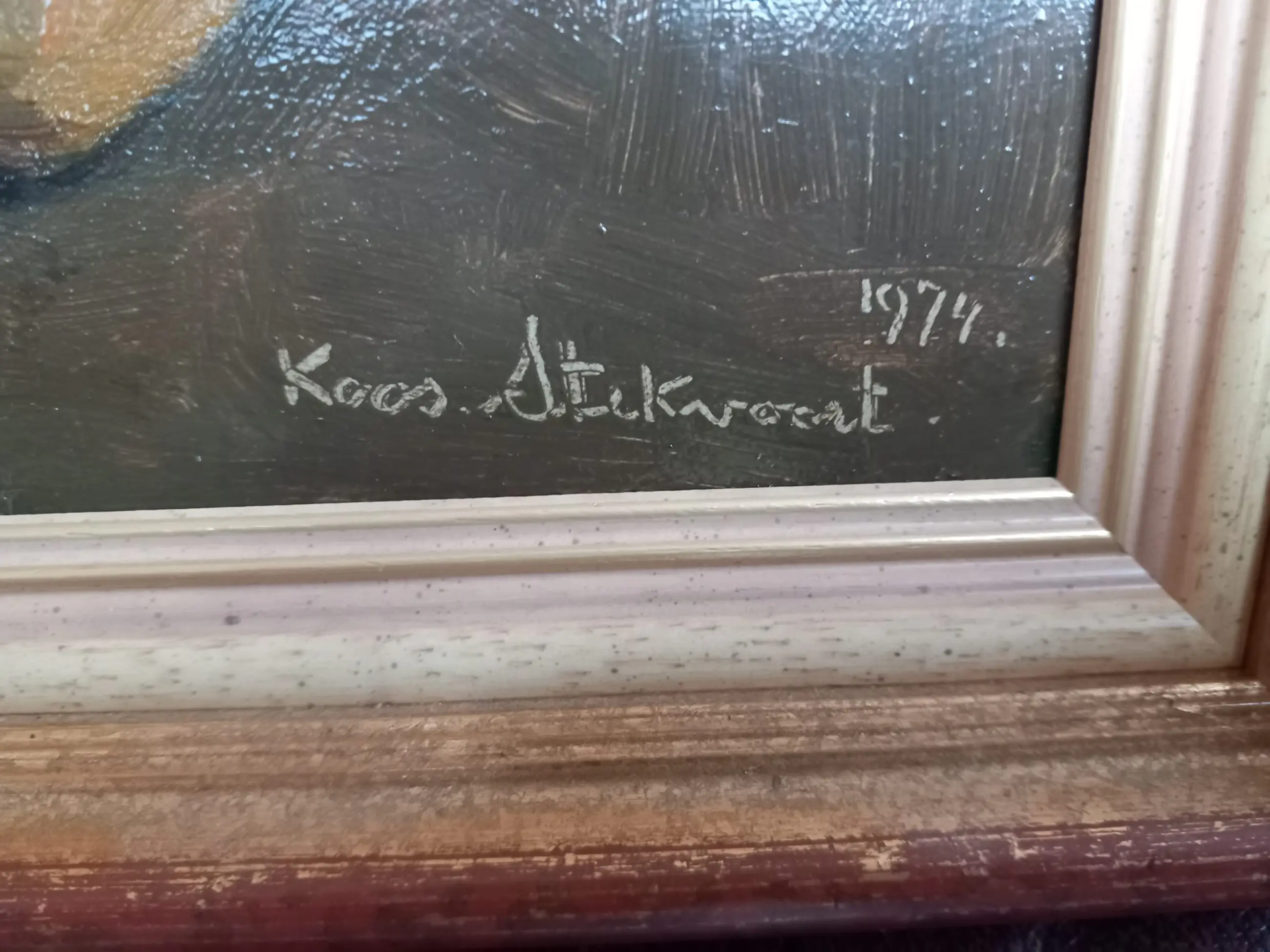 Koos Stikvoort heeft hier een prachtig authentiek stilleven vastgelegd. Werk is handgesigneerd ( rechtsonder) en dateert uit 1974. Het betreft een olieverfschilderij op paneel, keurig en authentiek ingelijst.