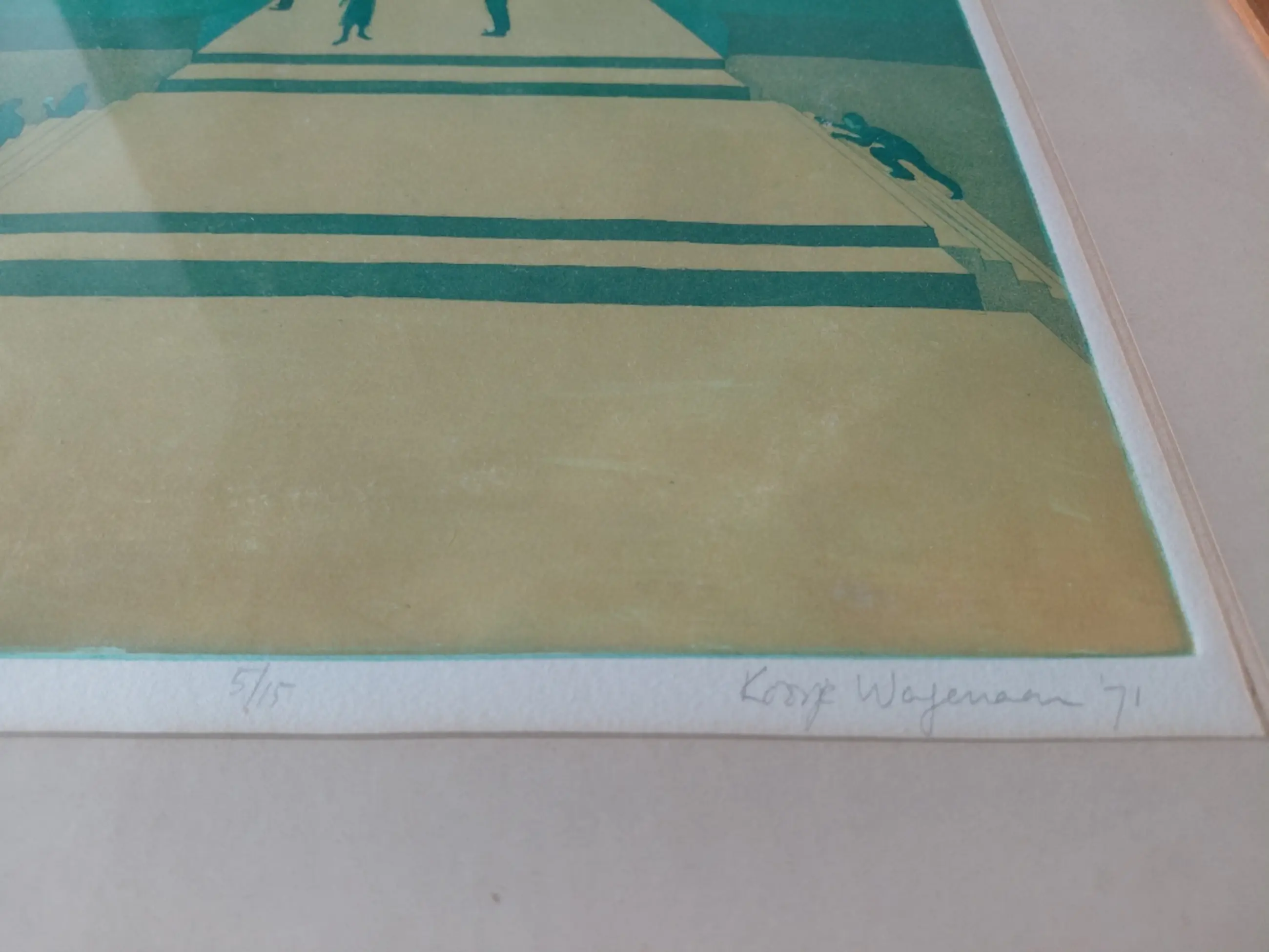 Hierbij een mooi minimalistisch werk van Koosje Wagenaar. Er is lichte schade aan de zijkant van het glas. Het werk zelf is in goede staat.