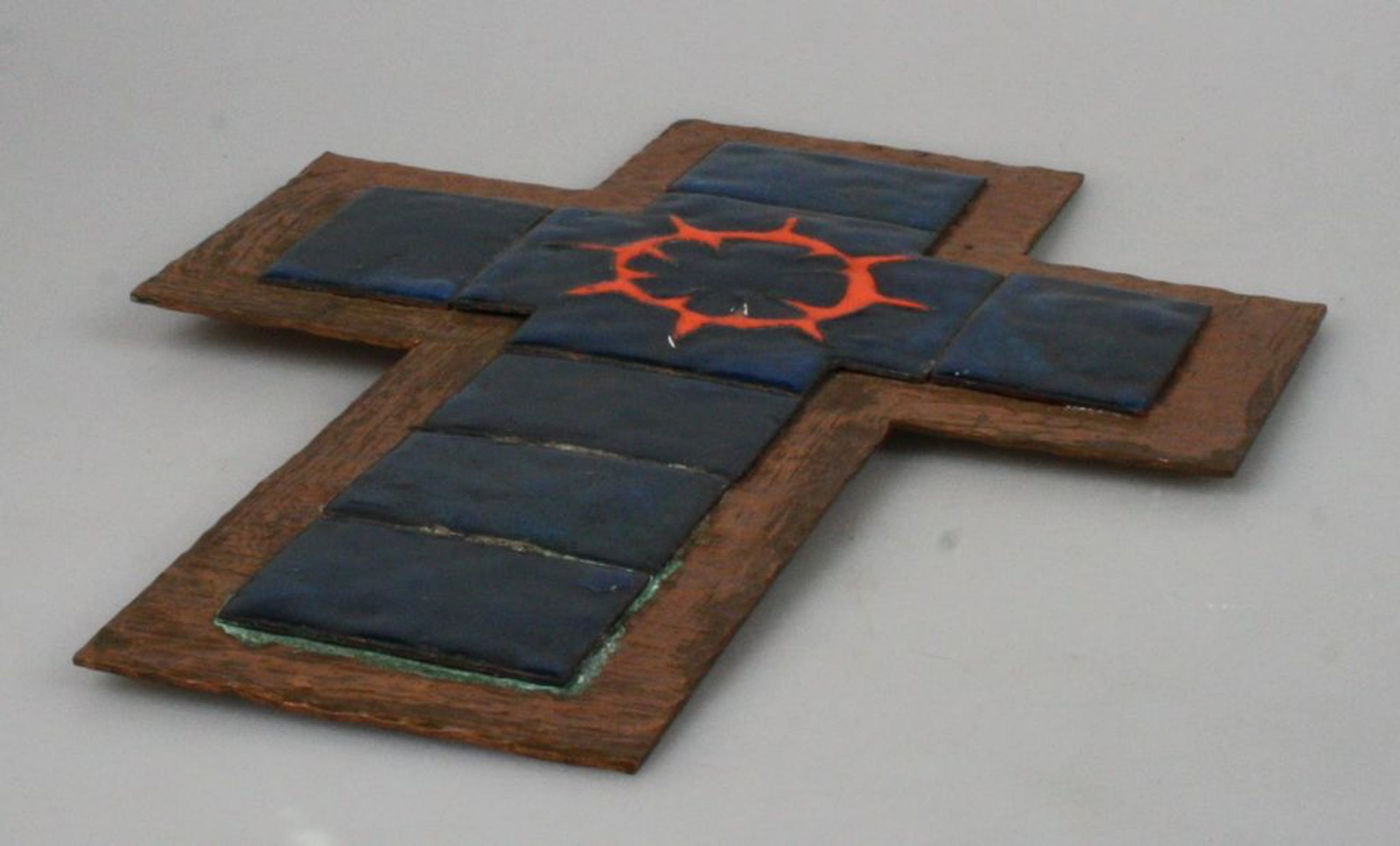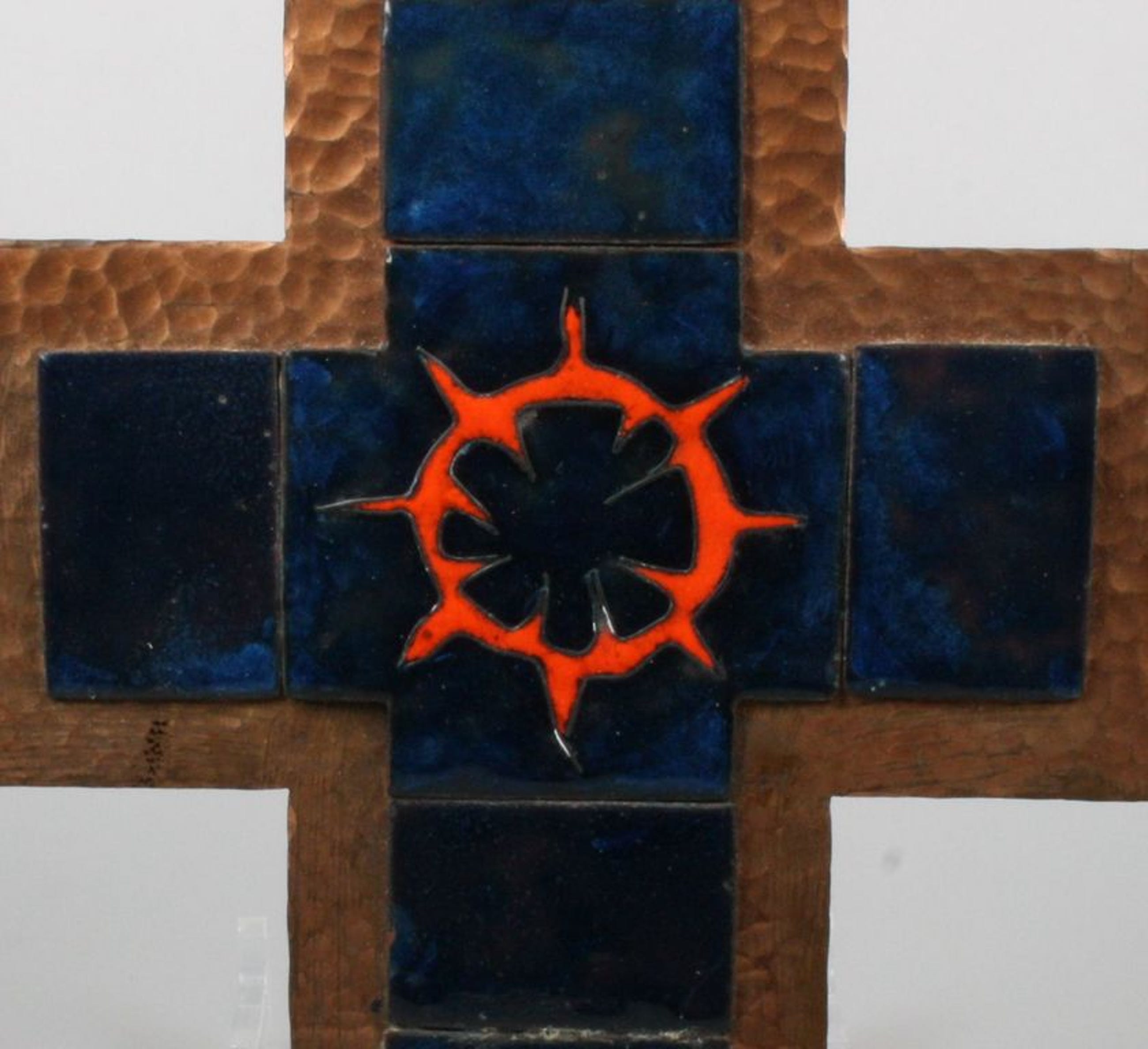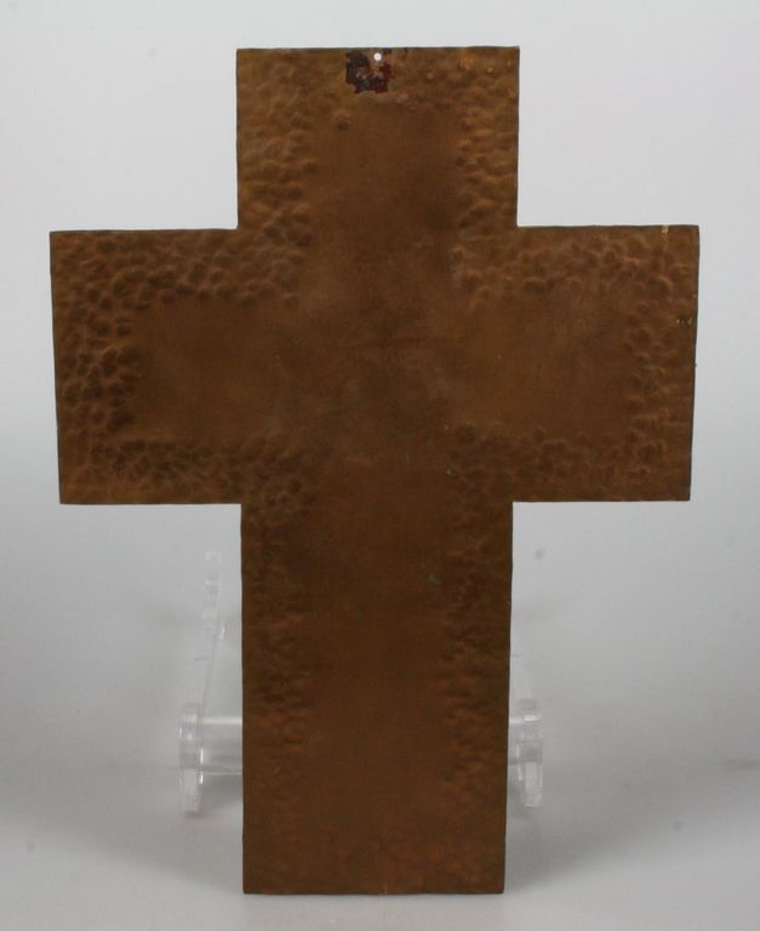 Koperemaillen modernistisch kruisbeeld 1960's. In prima staat, hoogte ca. 22 cm.