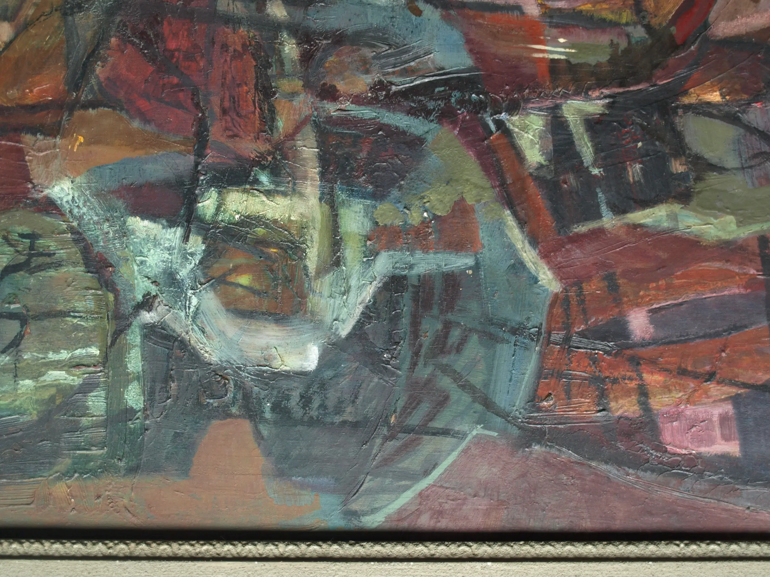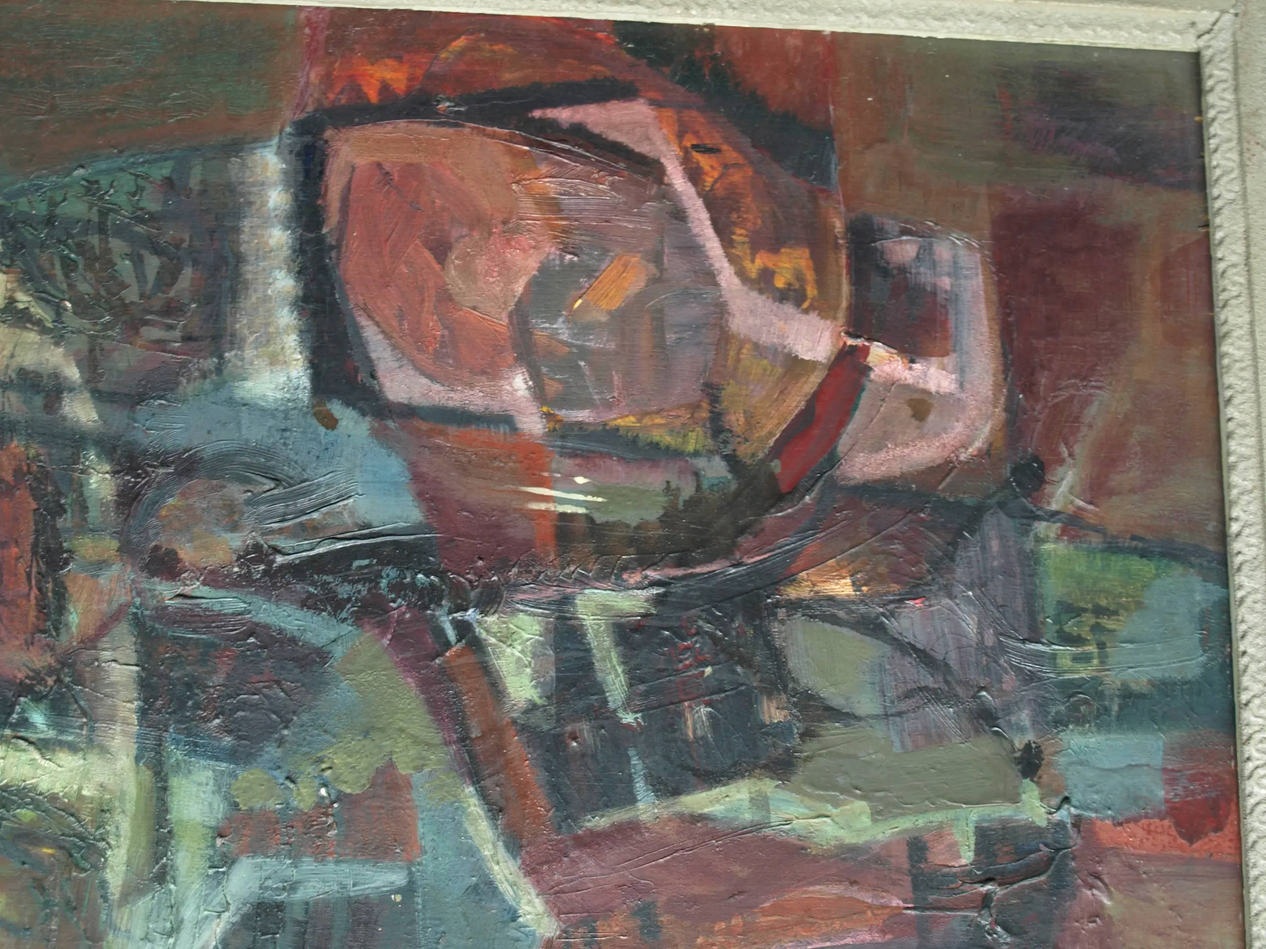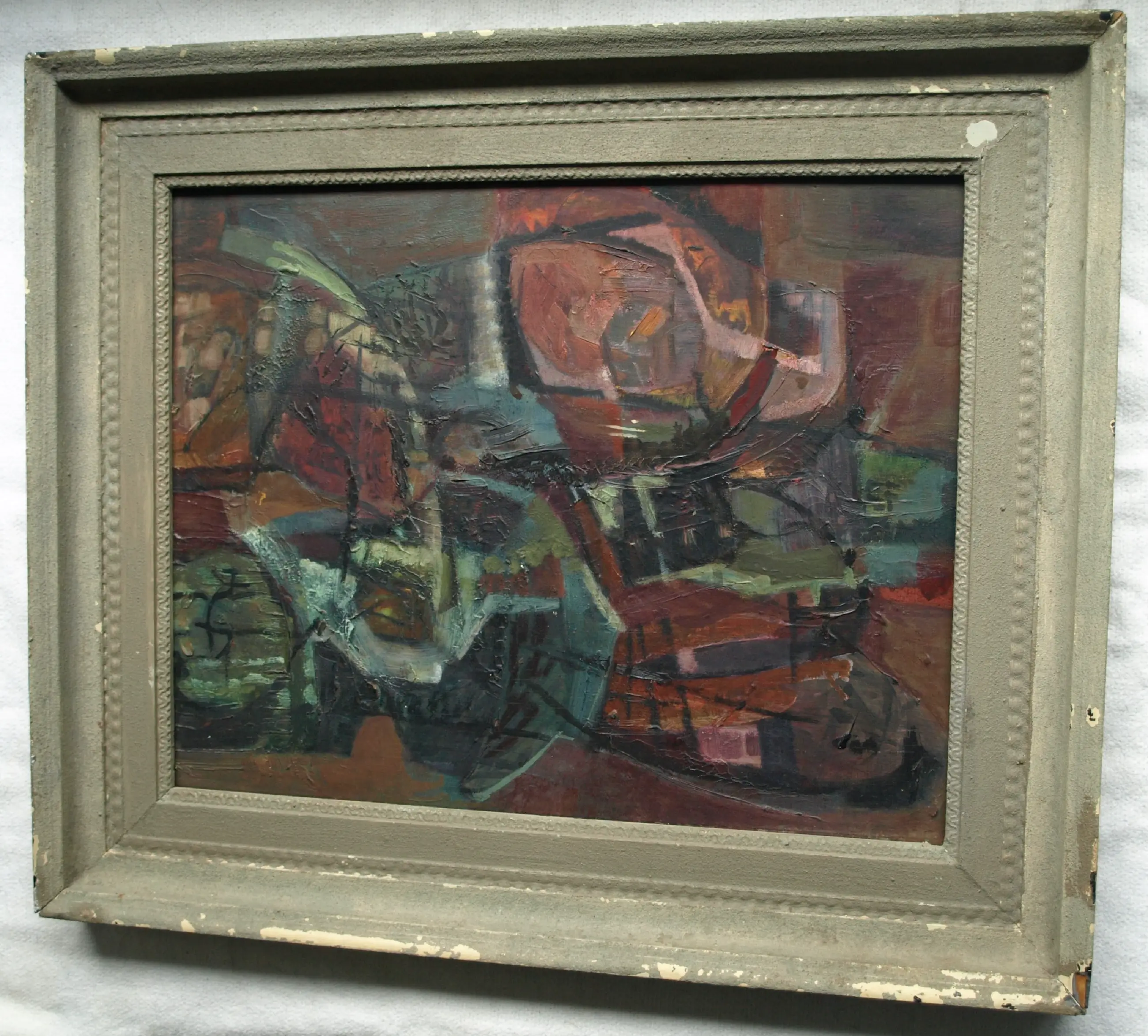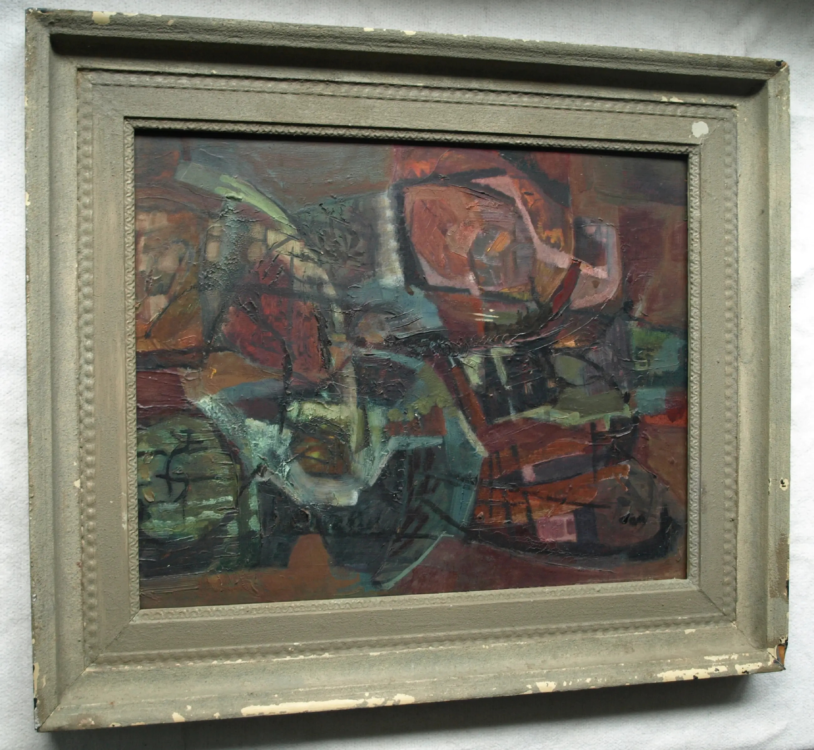 In goede staat met ouderdomssporen (slijtplekjes en oppervlaktevuil). De lijst heeft slijtplekken en beschadigingen. Zie ook de foto’s voor een eigen indruk.