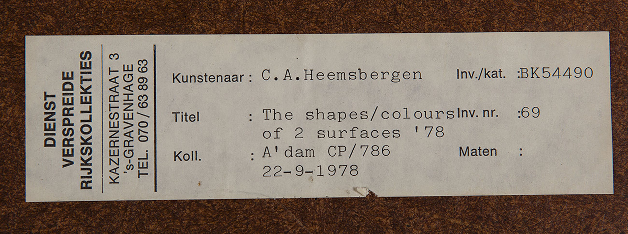 Herkomst: BKR Amsterdam (Het kunstwerk is afgevoerd uit de