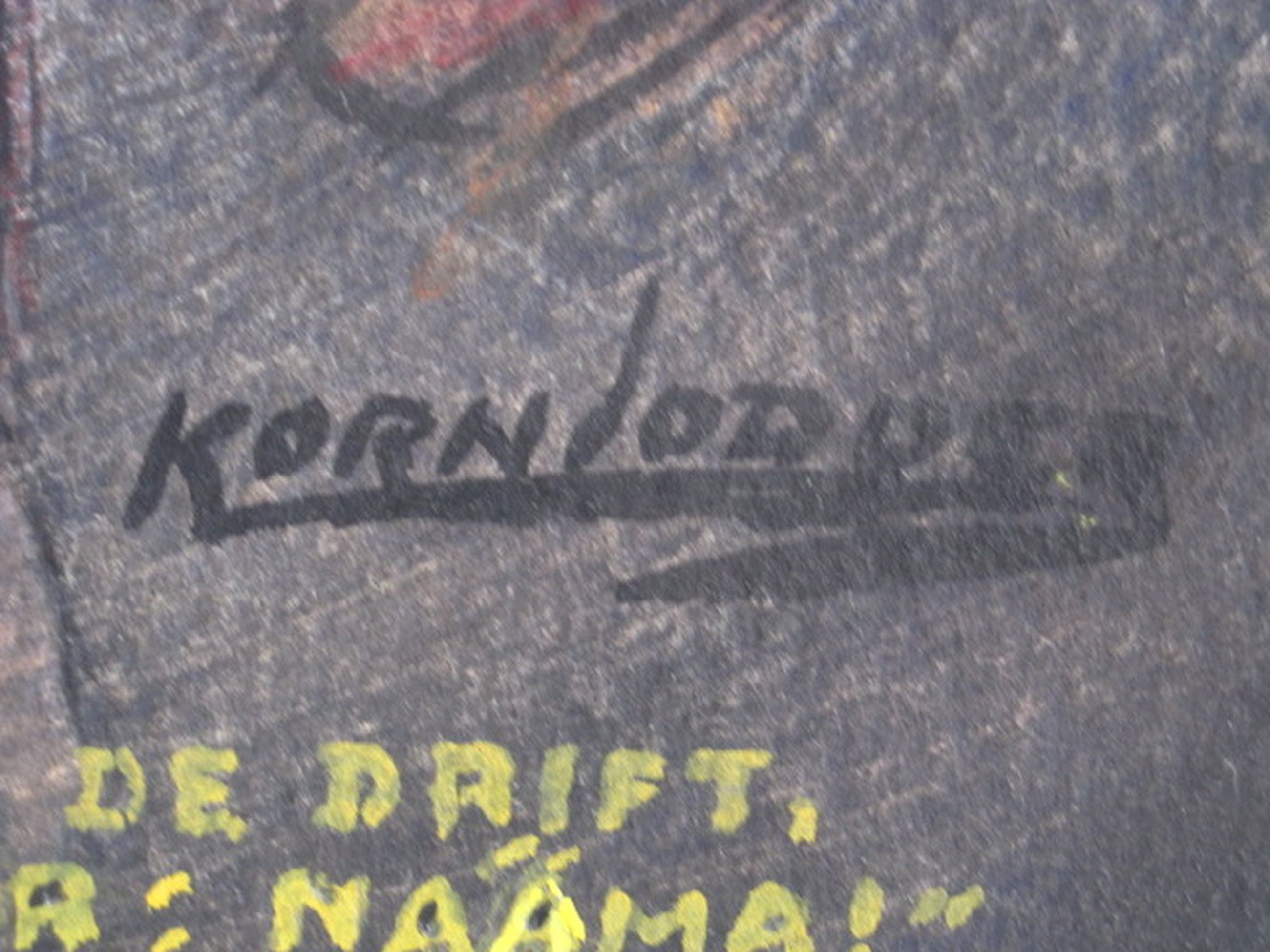 Kornelis Lodder is een geboren Vlaardinger die 4 maart 1892 het levenslicht zag. Hij was leerling aan de Academie voor Beeldende Kunsten in Rotterdam waar hij o.m. les kreeg van Huib Luns. Daarna volgde hij nog de Haagse kunstacademie (leraar: Frans Helfferich). Om in zijn levensonderhoud te voorzien was hij tot zijn pensionering in 1957 werkzaam in een tapijtfabriek. Daarna kon hij zich volledig wijden aan de schilderkunst. Hij schilderde, aquarelleerde, tekende (ook pen) en maakte gouaches in zowel impressionistische als expressionistische trant landschappen, figuren, dieren, portretten en figuurvoorstellingen, vaak met een vertellende functie. Hij schroomde niet deze figuurvoorstellingen een boodschap mee te geven, vaak voorzien van een tekst (zie laatste detailafbeelding met gouaches, bron: invaluable.com). Hij signeerde zijn werk met KornLodder. Kornelis Lodder overleed 12 januari 1987 in Vlaardingen.