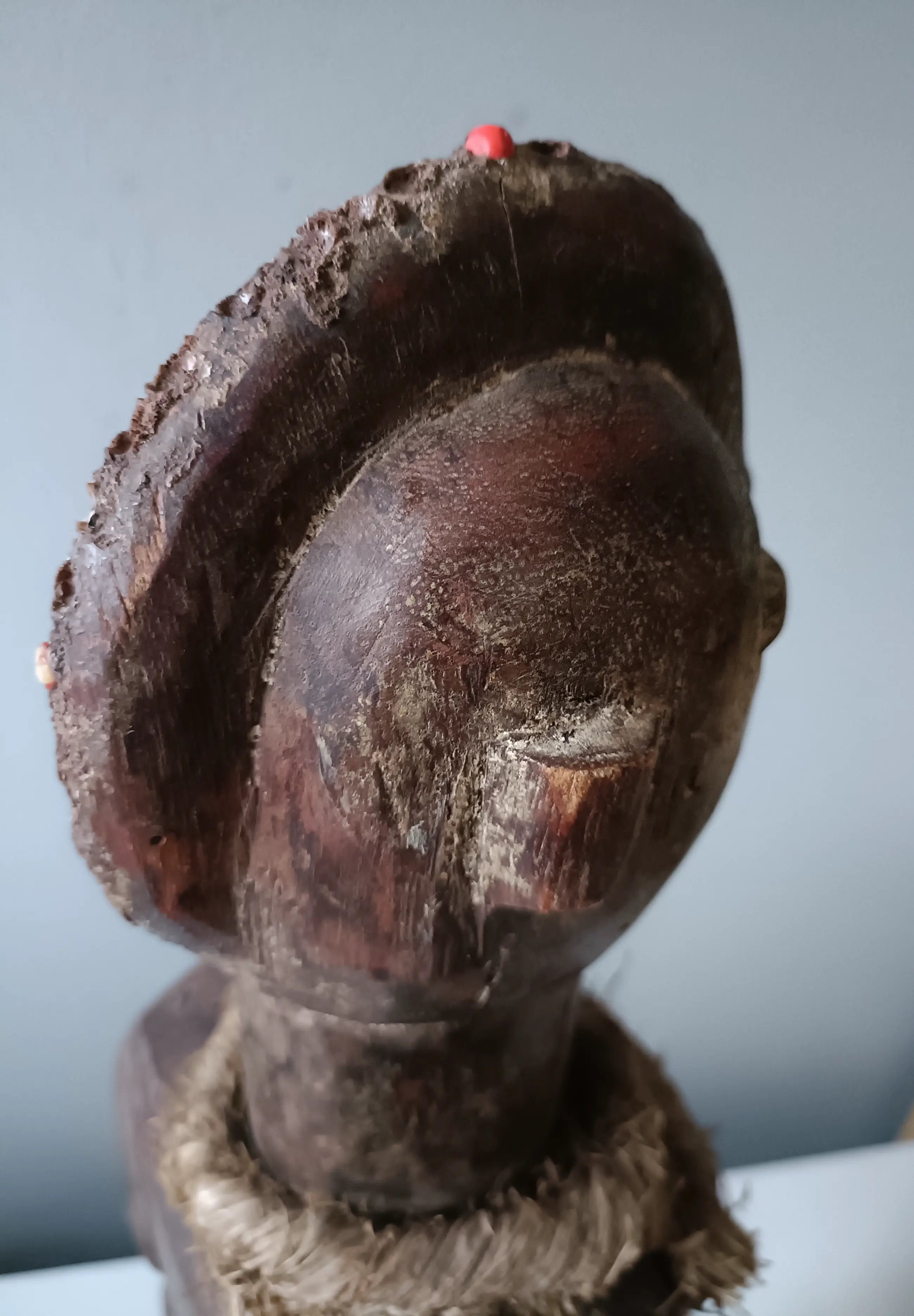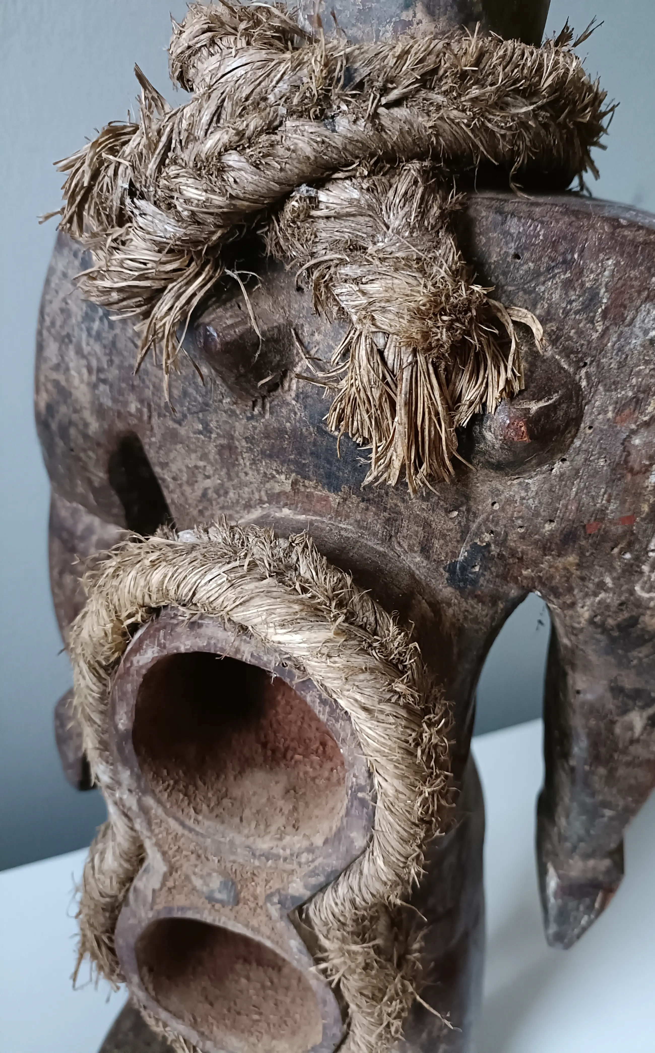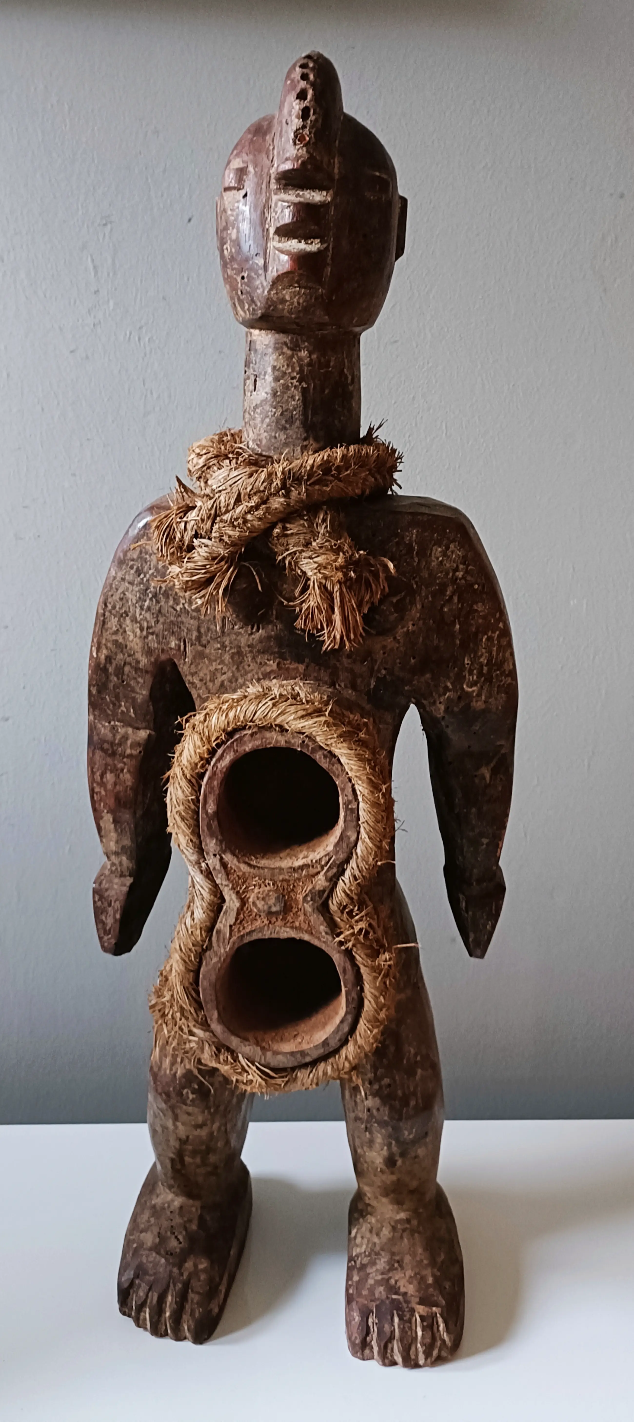 Origineel antropomorf beeld van de Koro uit Nigeria. Hieruit werd bier of palmwijn gedronken tijdens rituele ceremonies. Op het hoofd een kam met daarop