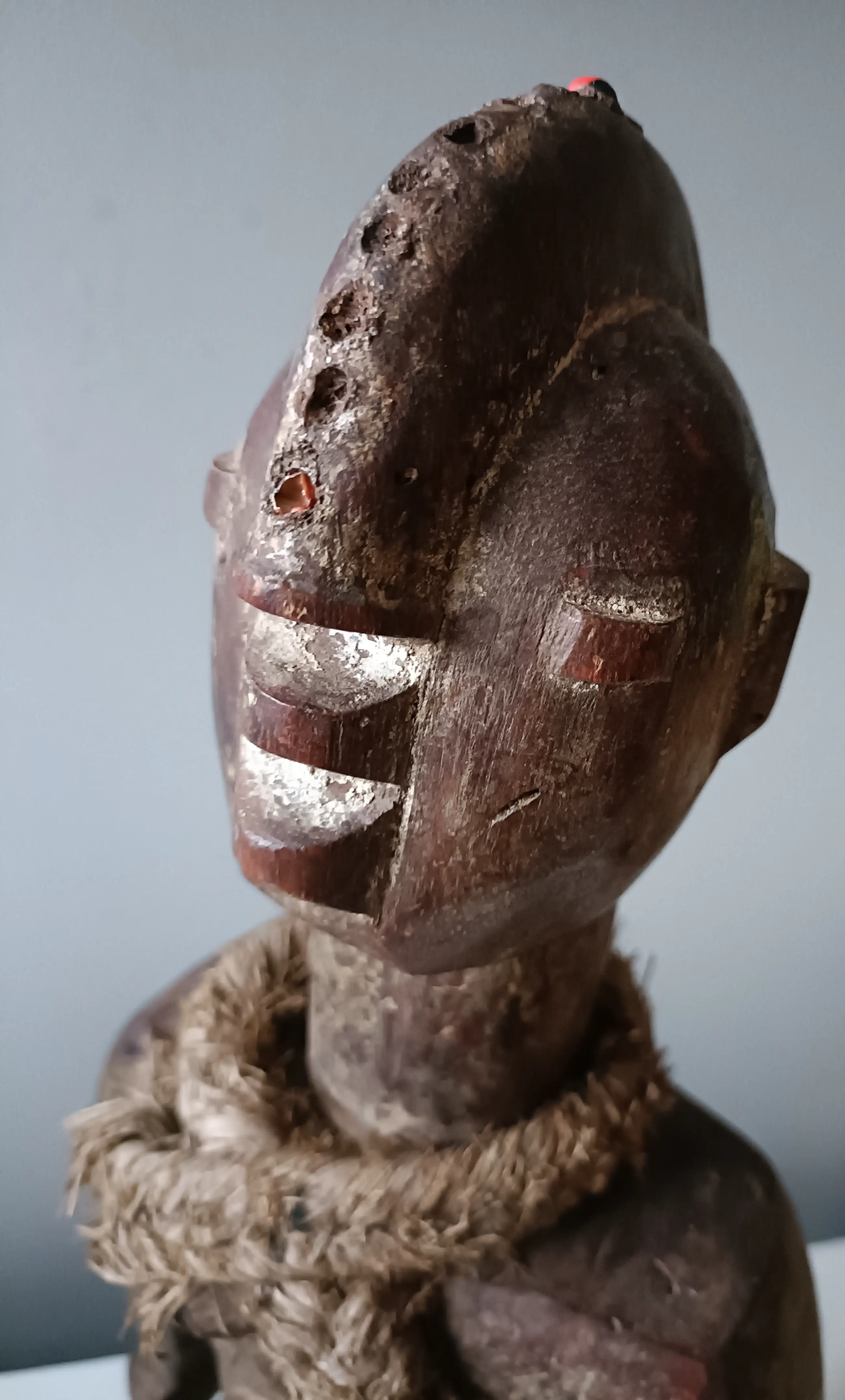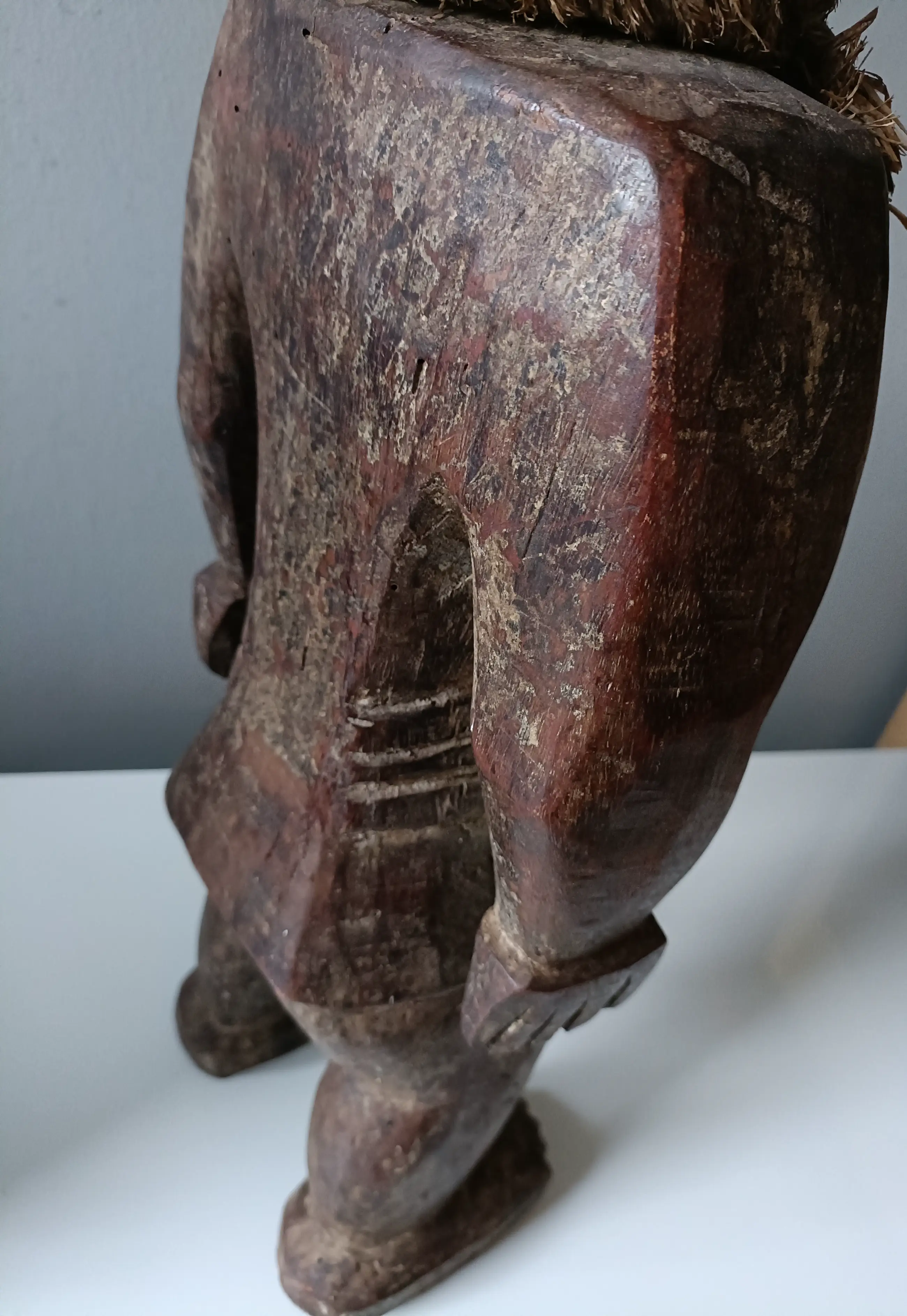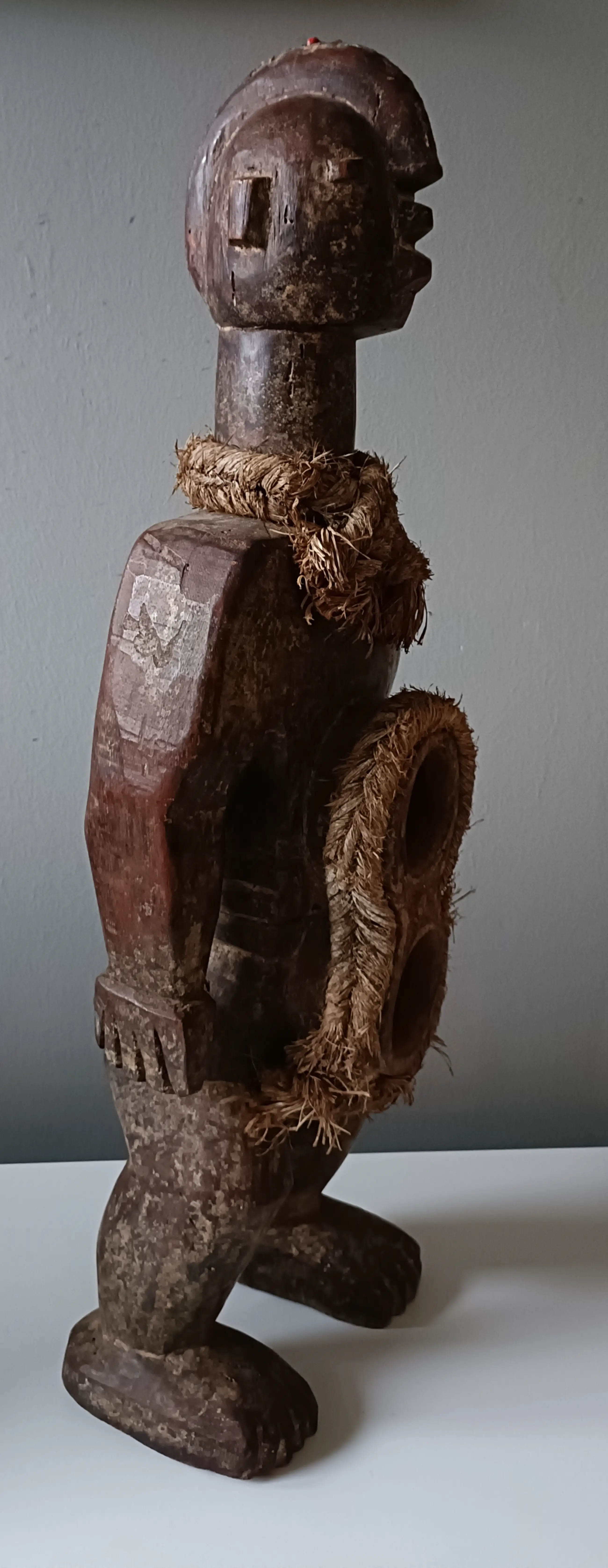 Origineel antropomorf beeld van de Koro uit Nigeria. Hieruit werd bier of palmwijn gedronken tijdens rituele ceremonies. Op het hoofd een kam met daarop