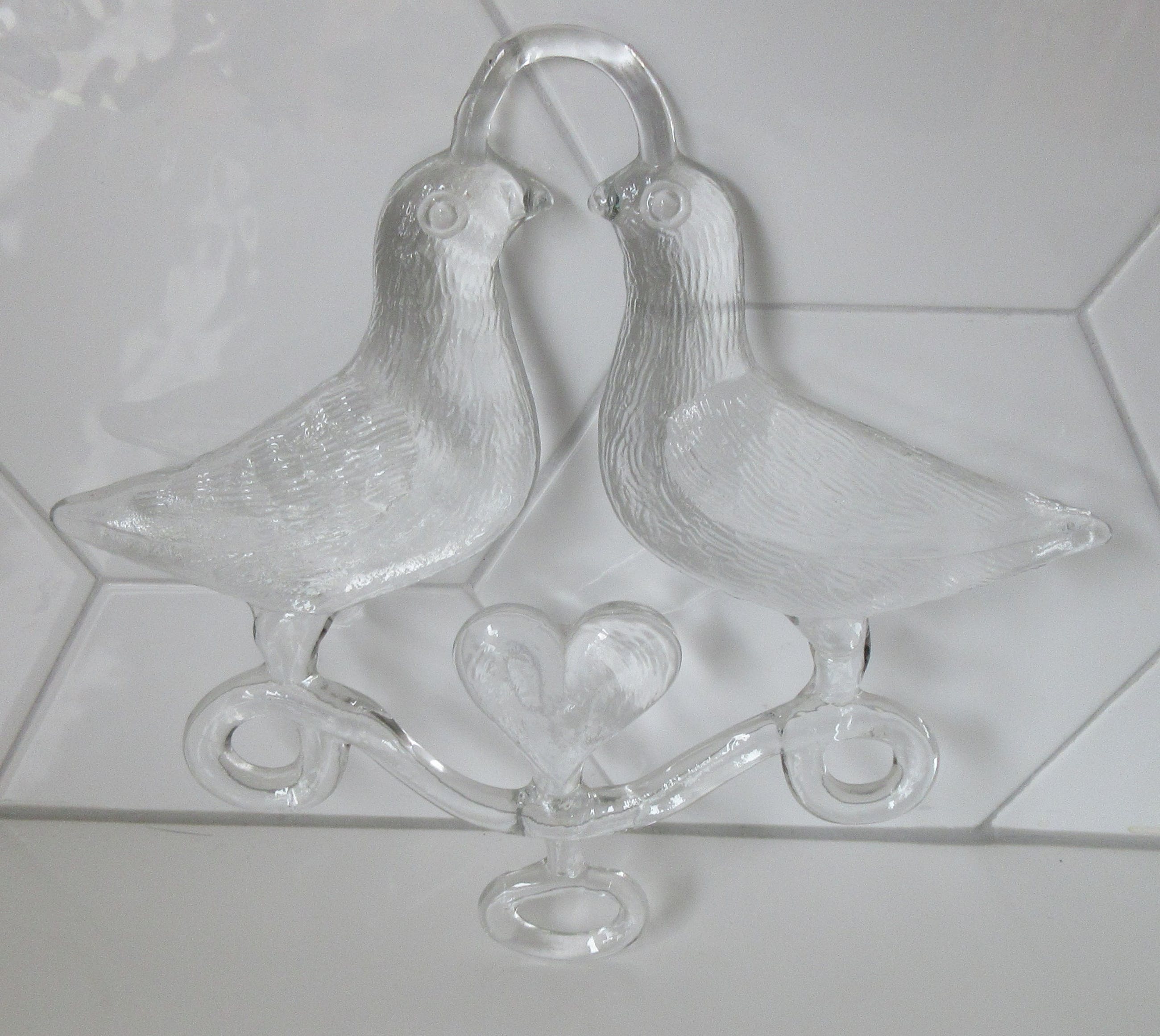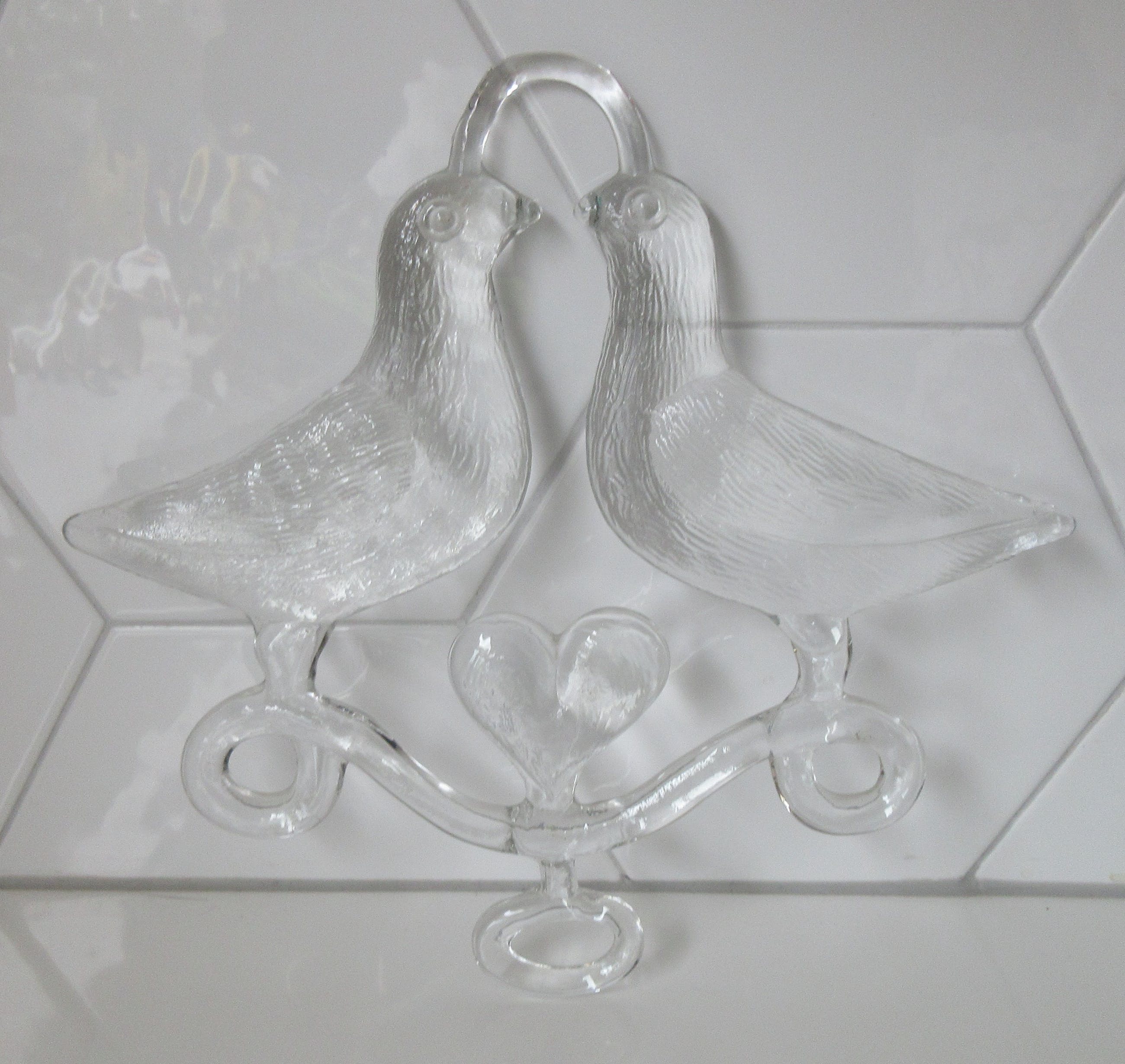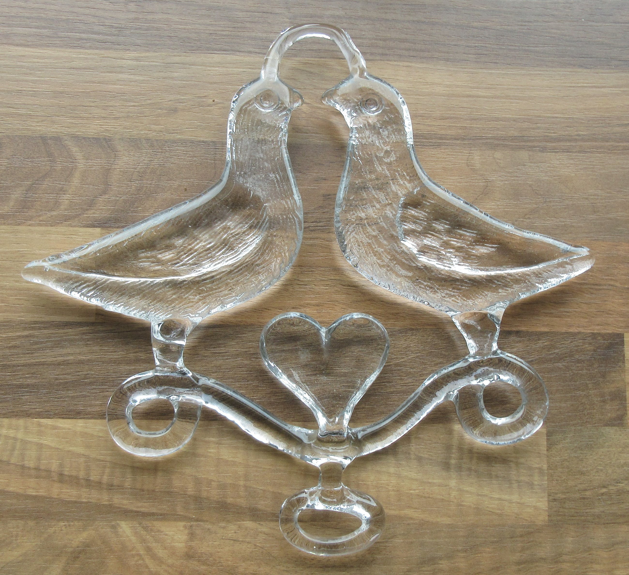 Blank glazen Raamhanger "Two birds in love" ontwerp Bertil Vallien. In prima conditie, bovenaan twee oneffenheden welke afkomstig zijn uit de glasmal. Niet gemerkt, but signed all over.