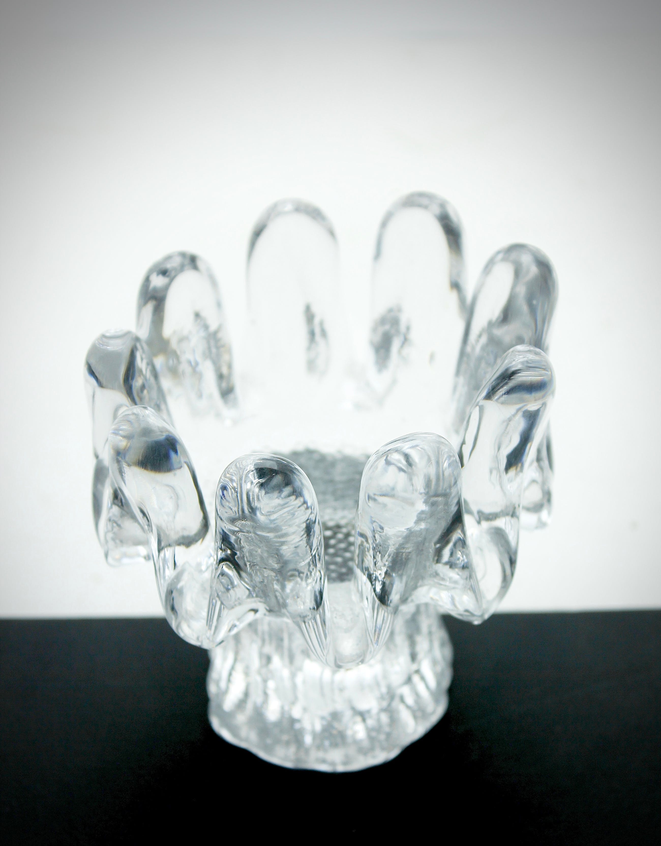 Prachtig organisch ontworpen kandelaar door Goran Warff voor Kosta Boda Zweden in de typische Scandinavische stijl. Geschikt voor een groot theelicht of grote kaars. Staat zeer decoratief.