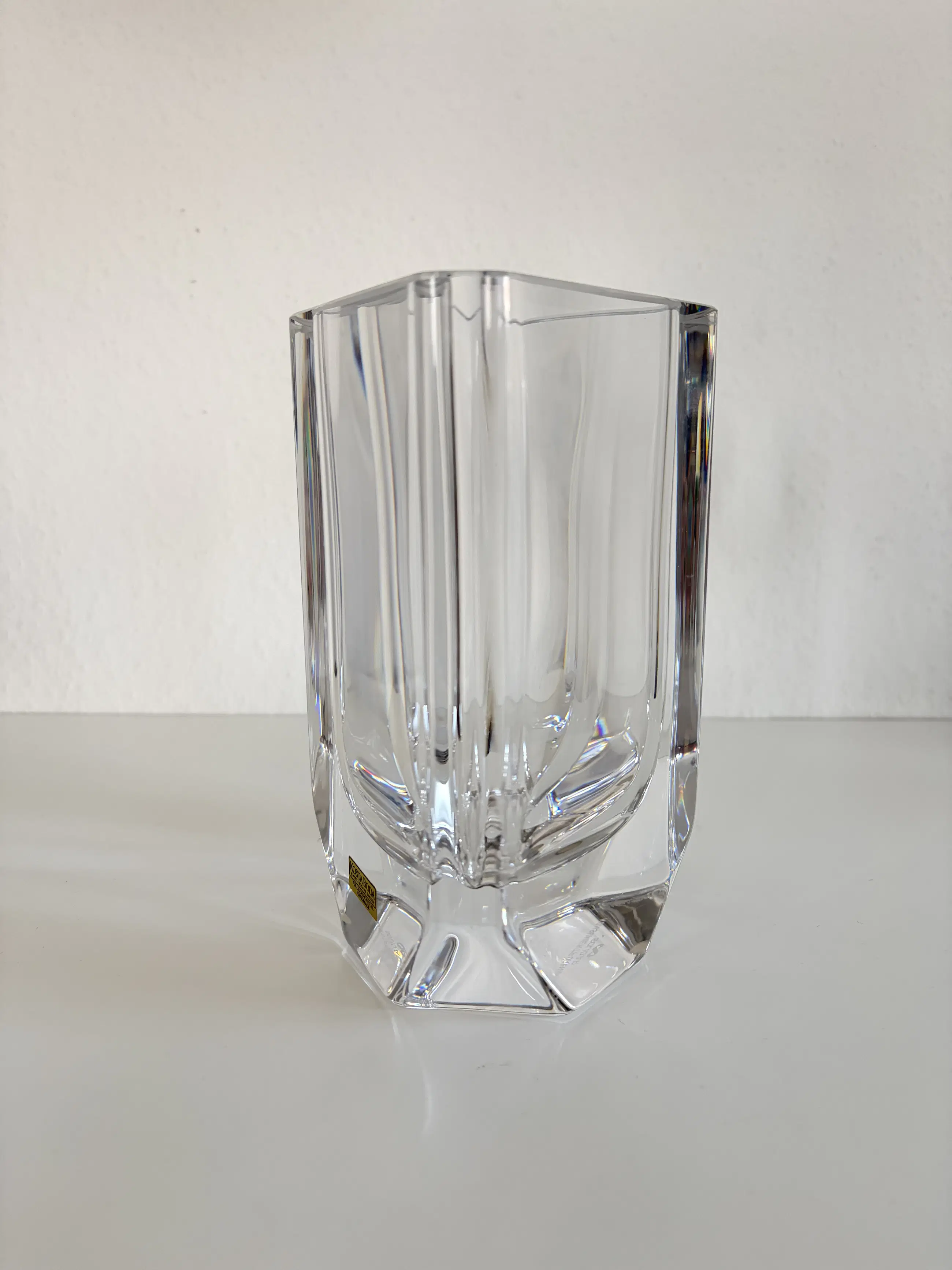 De zuiverheid van het kristal benadrukt een spel van reflecties en diepte, kenmerkend voor Scandinavisch design uit de jaren 60 en 70.