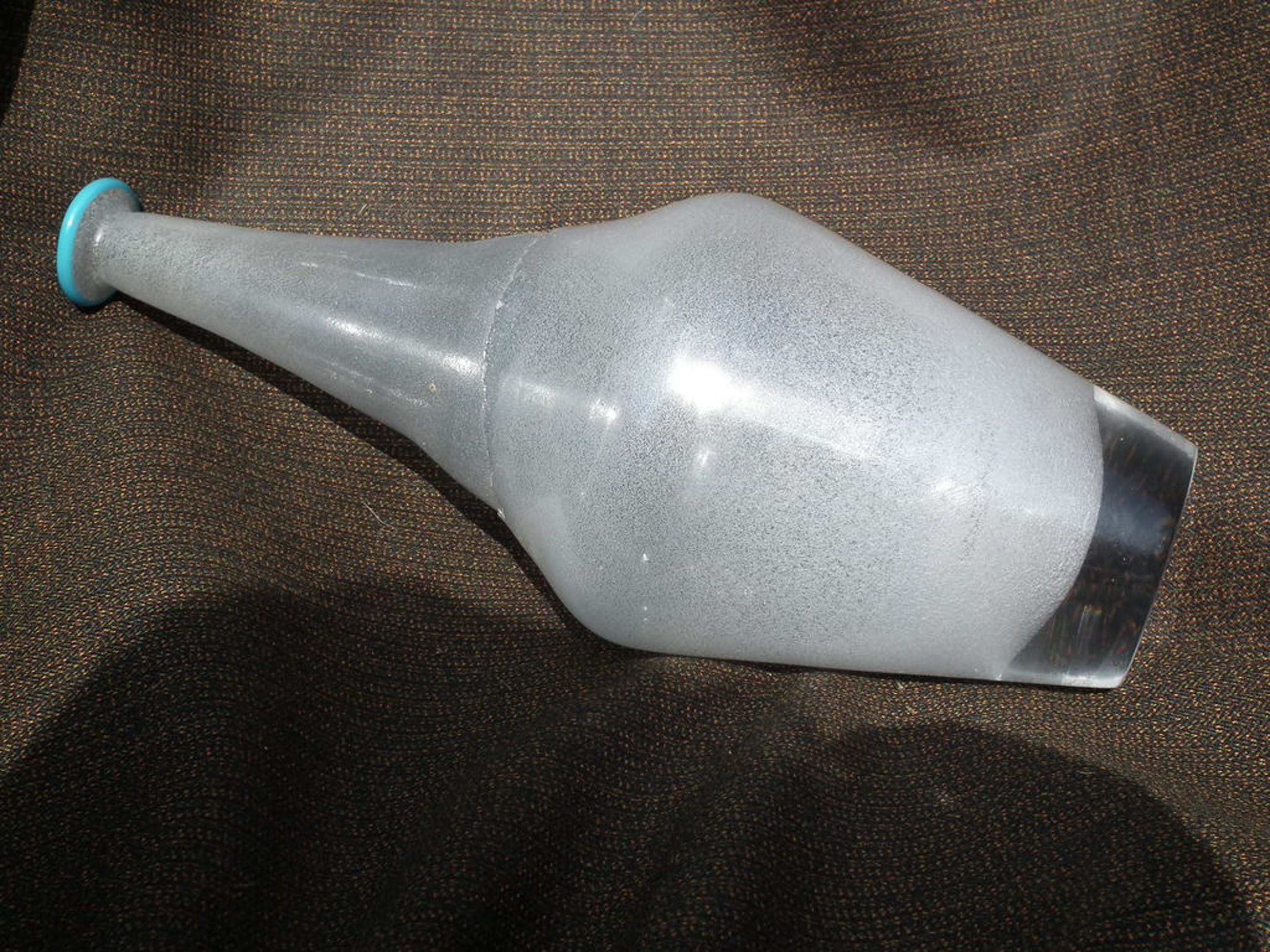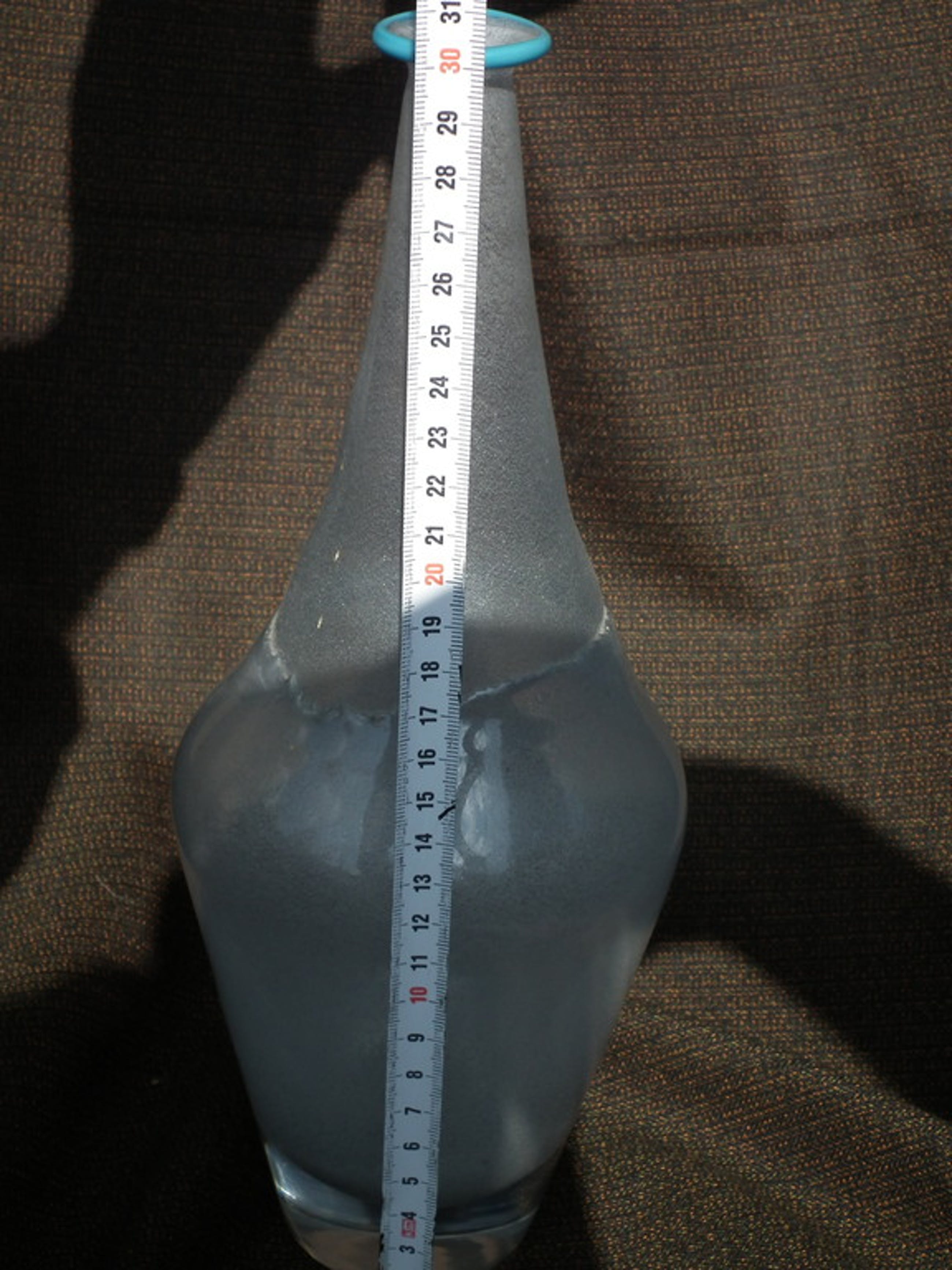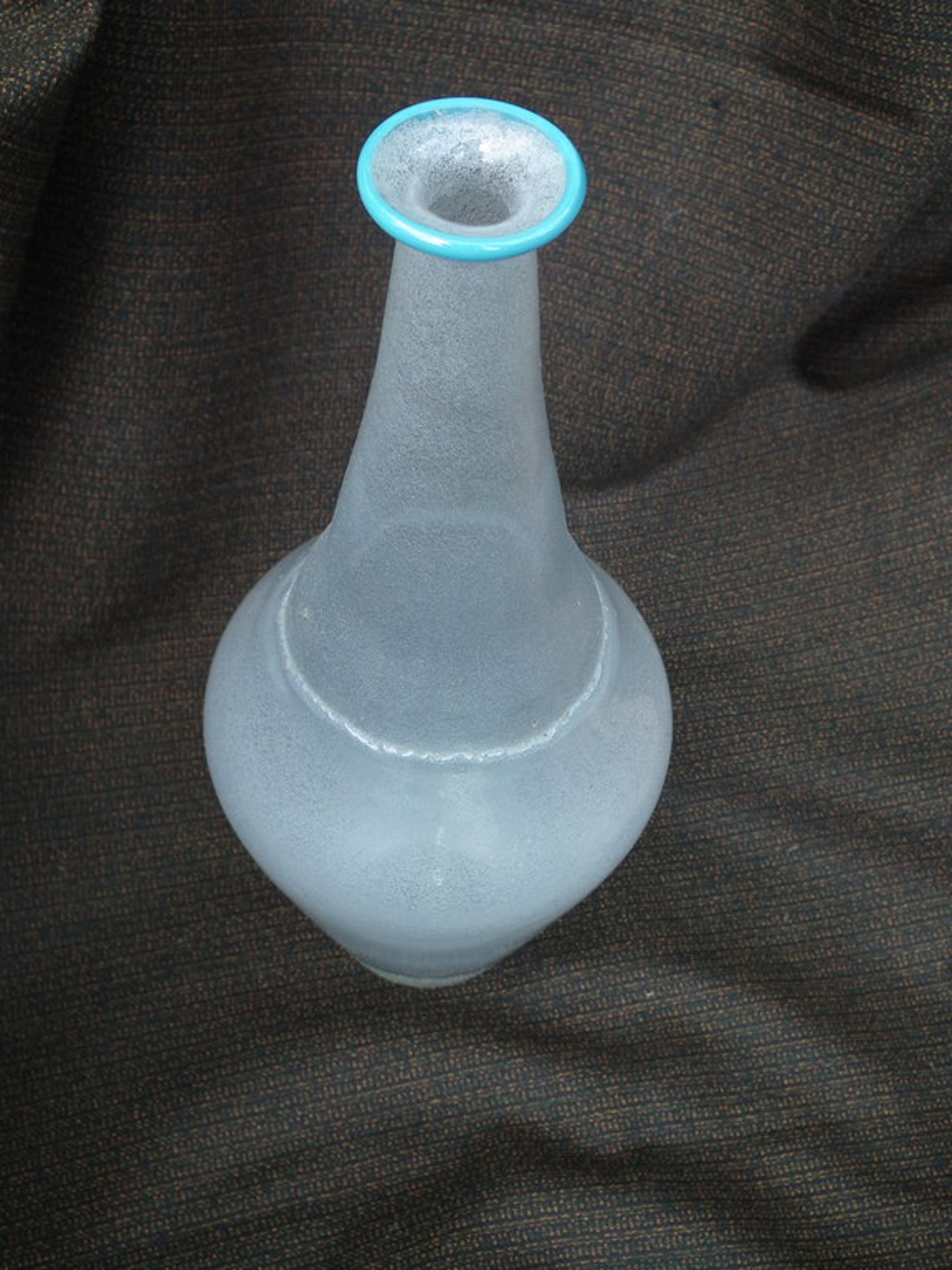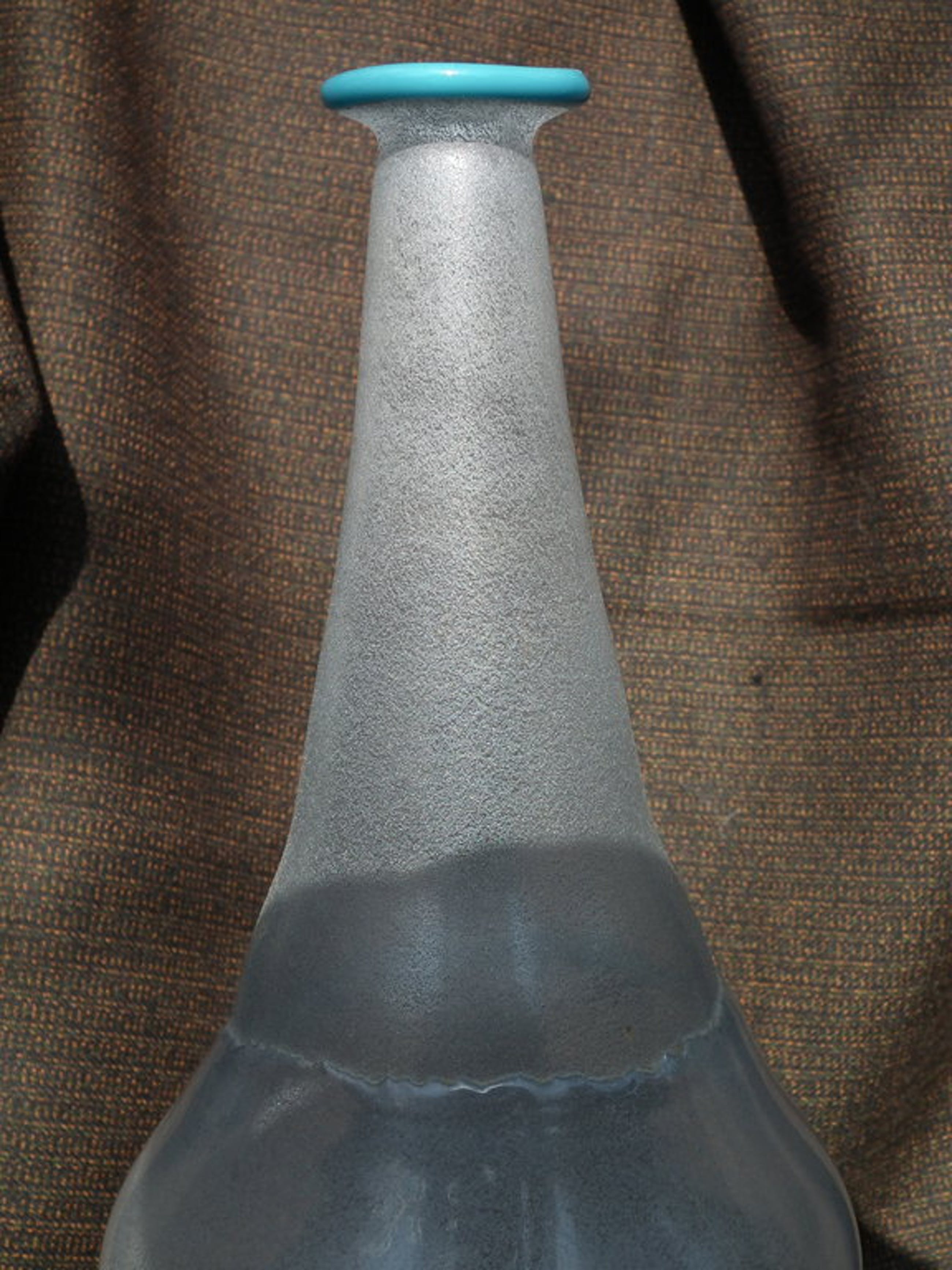 De vaas is 29 Cm hoog en loopt smaller af naar de bovenzijde. Op ongeveer 2/3e van de vaas gaat het gladde deel over in een ruw aanvoelend geheel, de bovenzijde van de vaas is voorzien van een licht blauw randje.