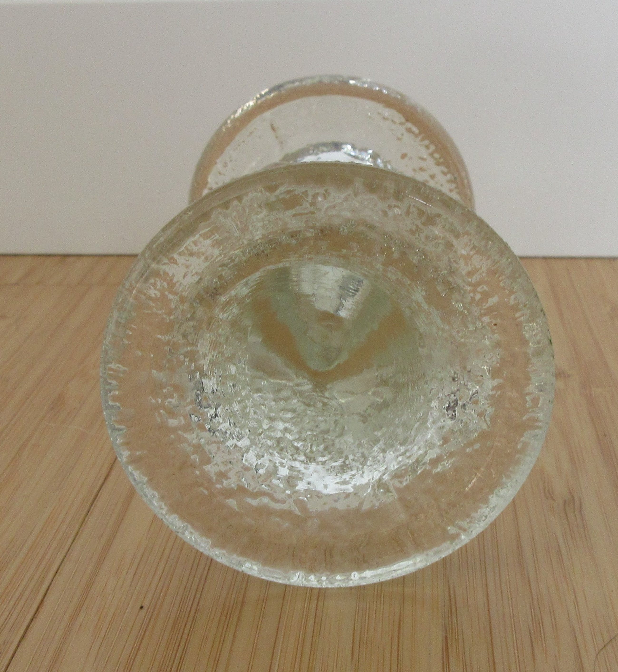 Blank glazen gedeeld holle votive met ingesloten bubbels. In prima onbeschadigde conditie. Afmetingen; 8,5 cm hoog en 8,5 cm in diameter. Gewicht; ca. 600 gram.