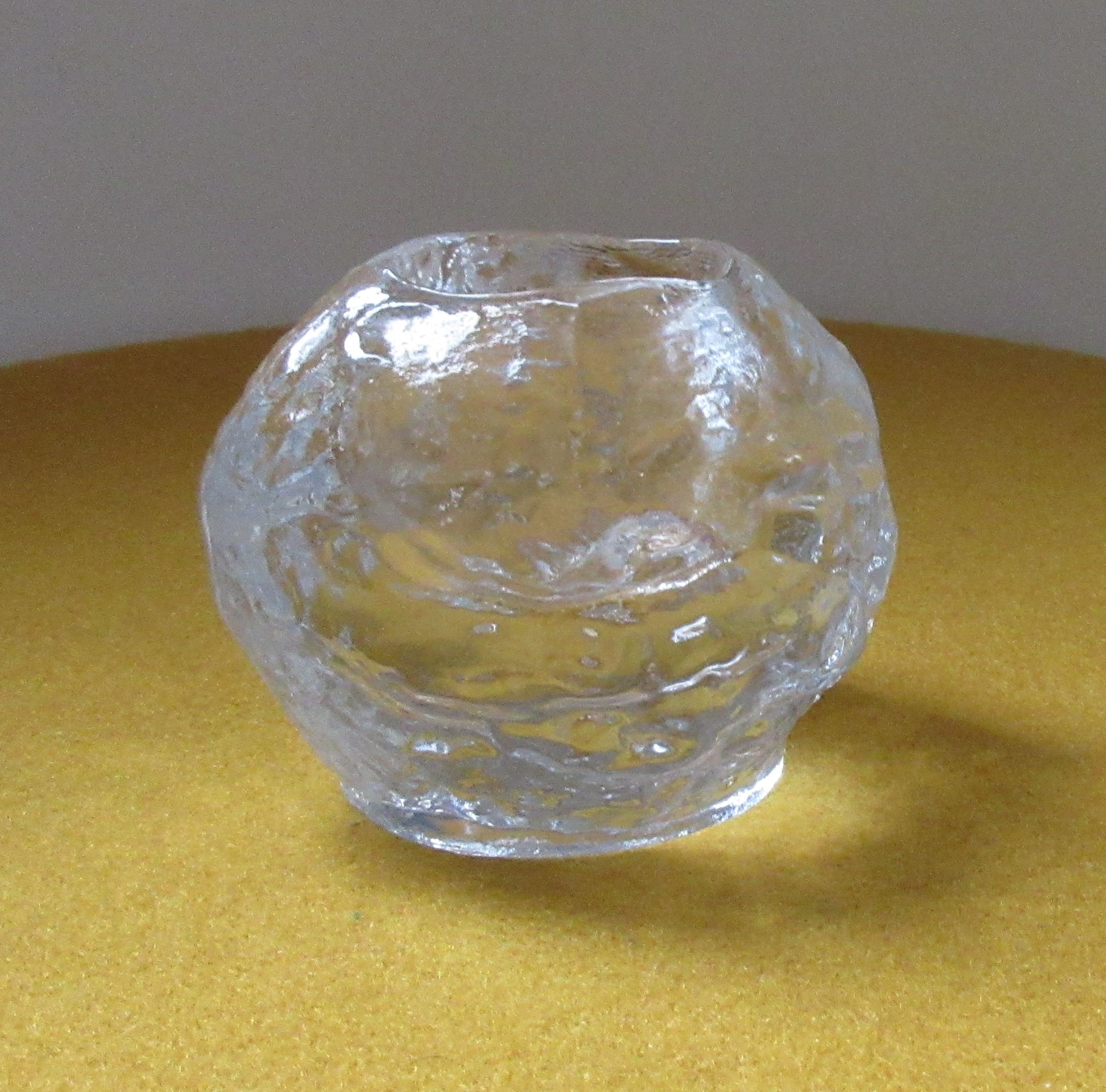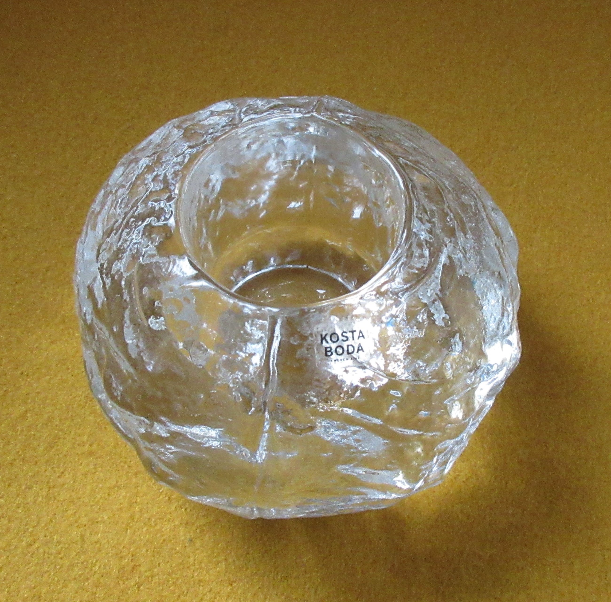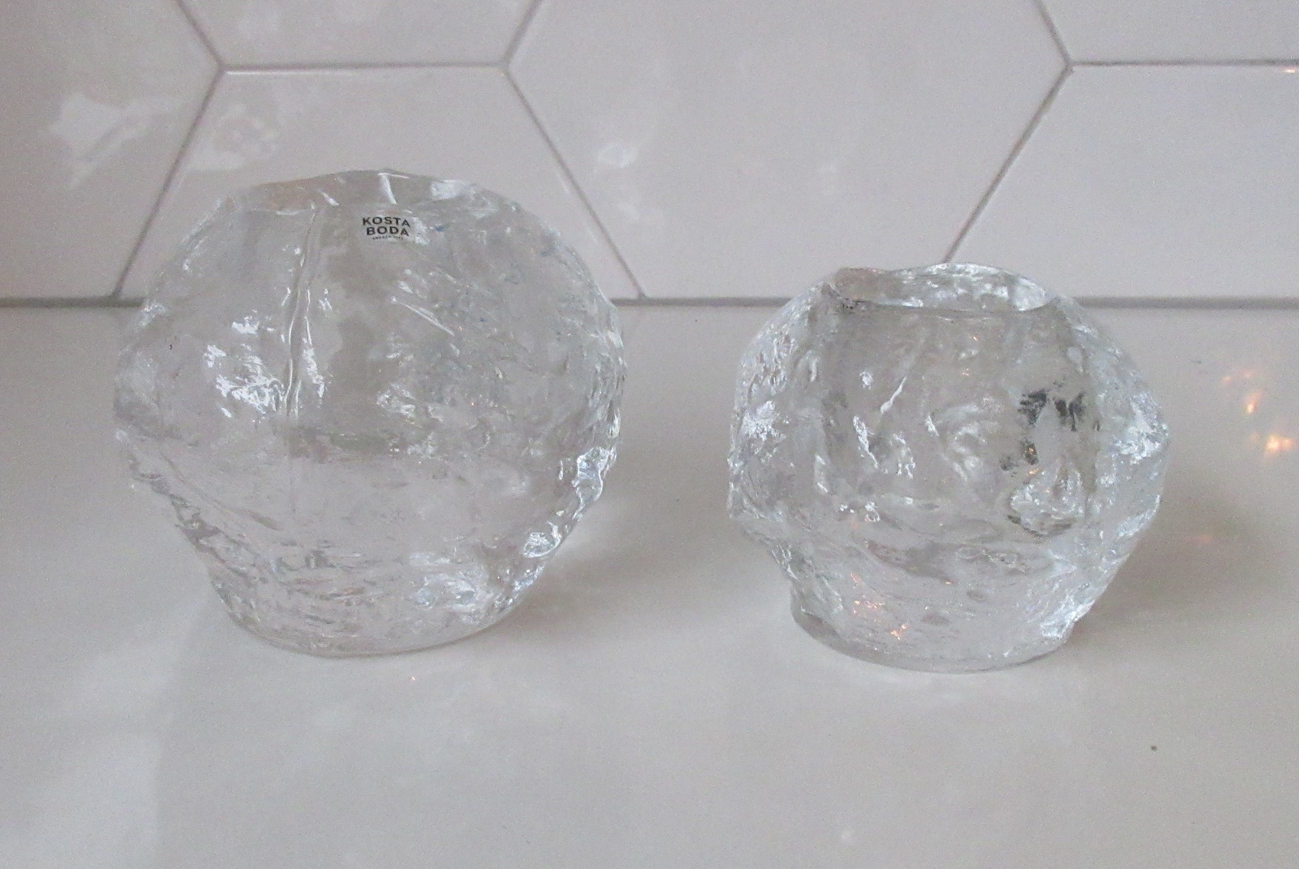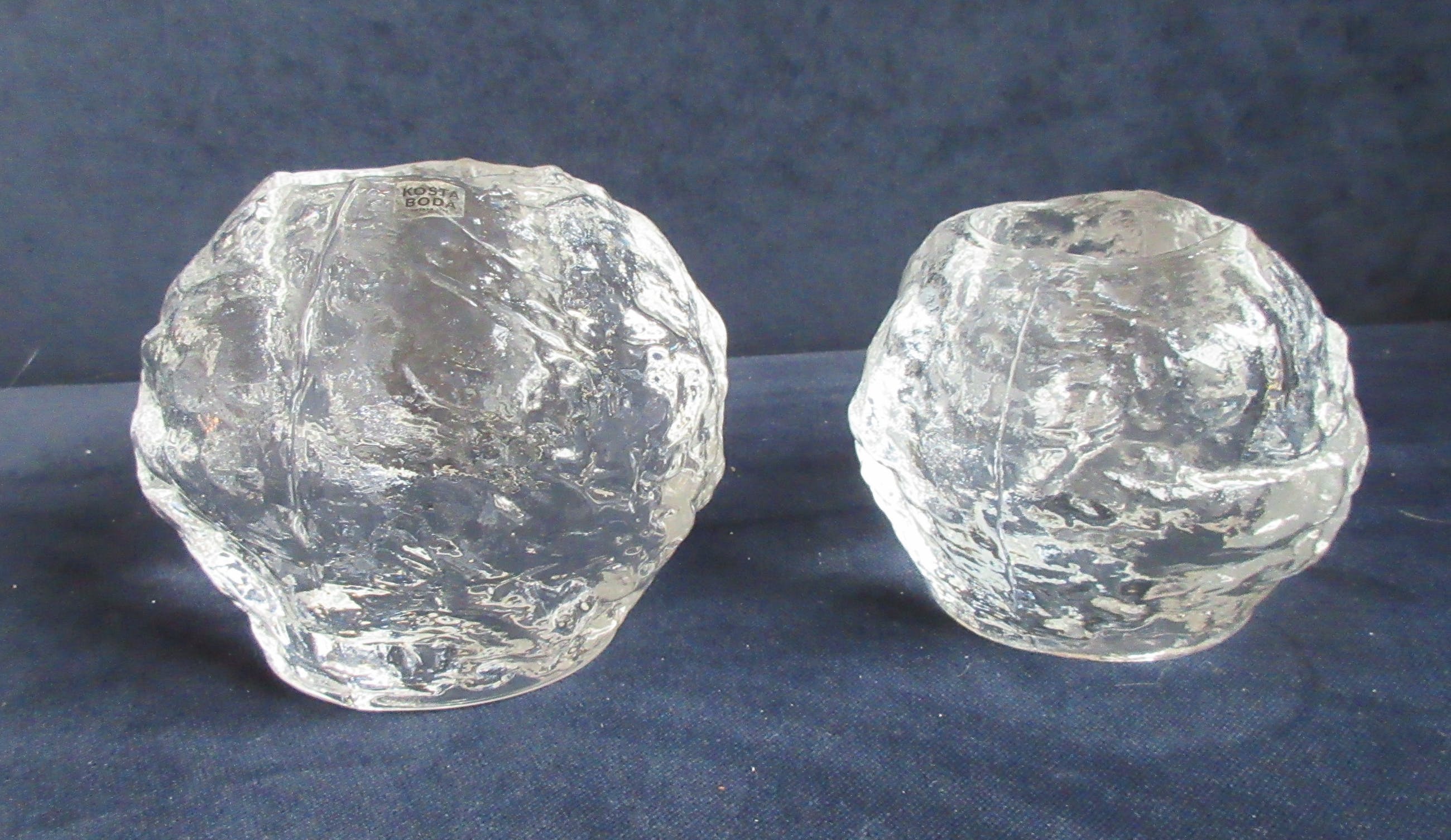 Twee Snowball kandelaren waarvan een XL model - ontwerp Ann Warff voor Kosta Boda. Beide in zeer goede gebruikte conditie. Alleen XL exemplaar is gemerkt met een sticker aan de voorzijde en etsmerk aan de onderzijde.