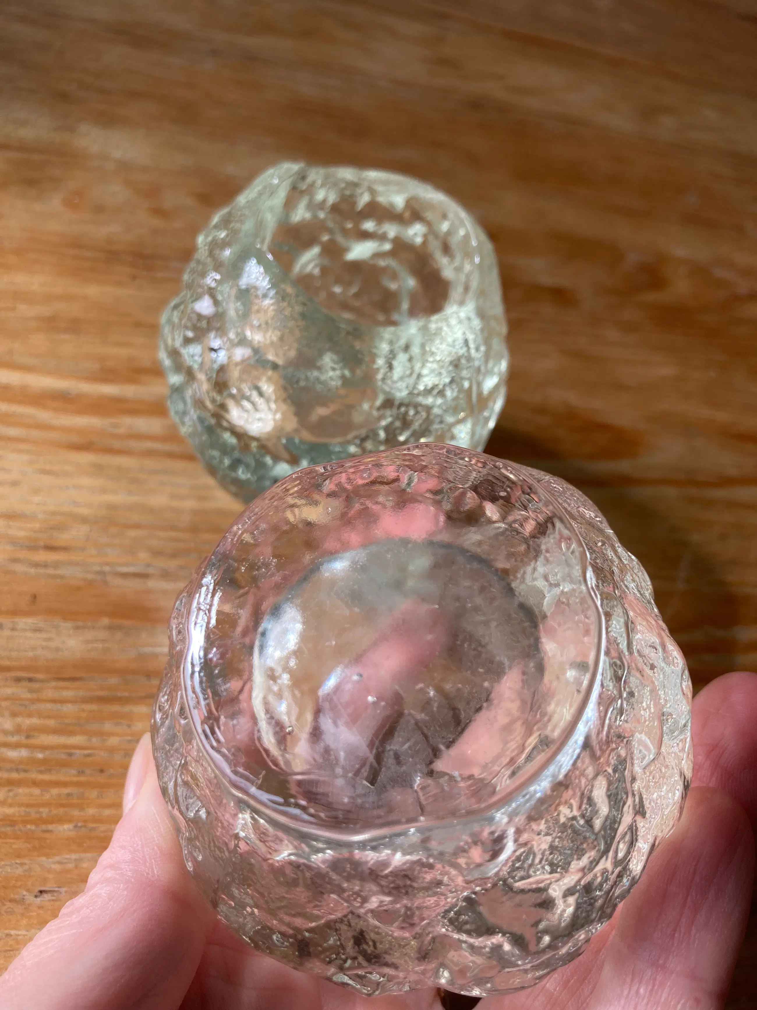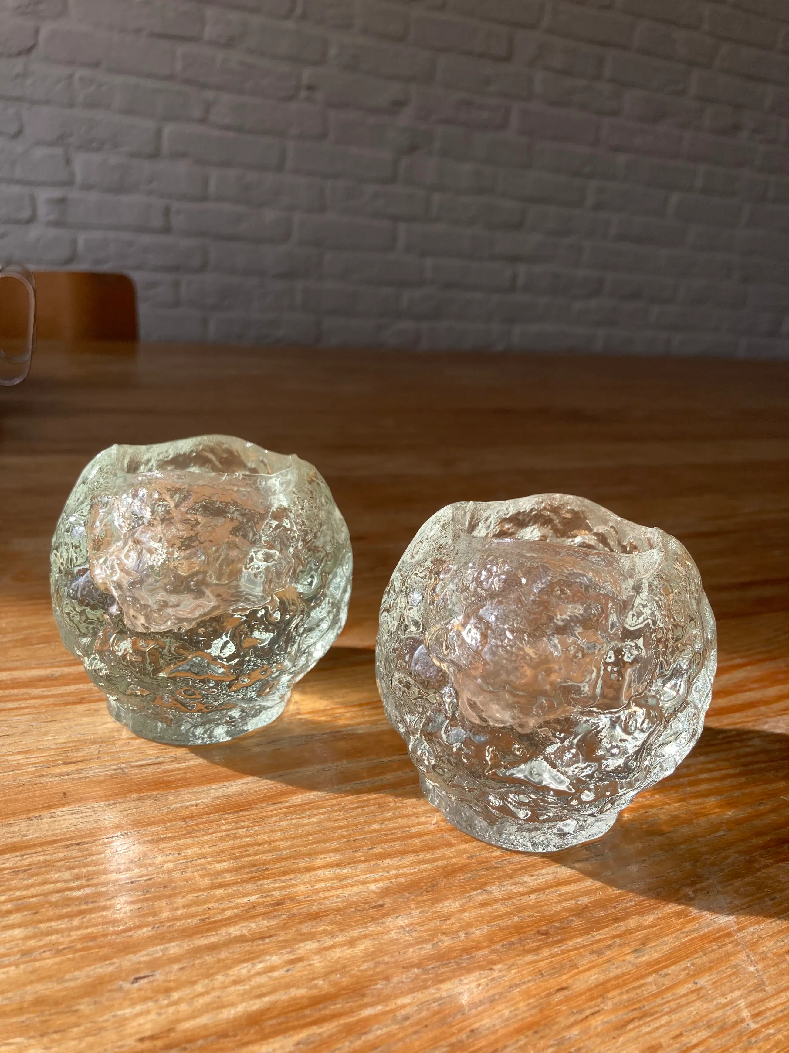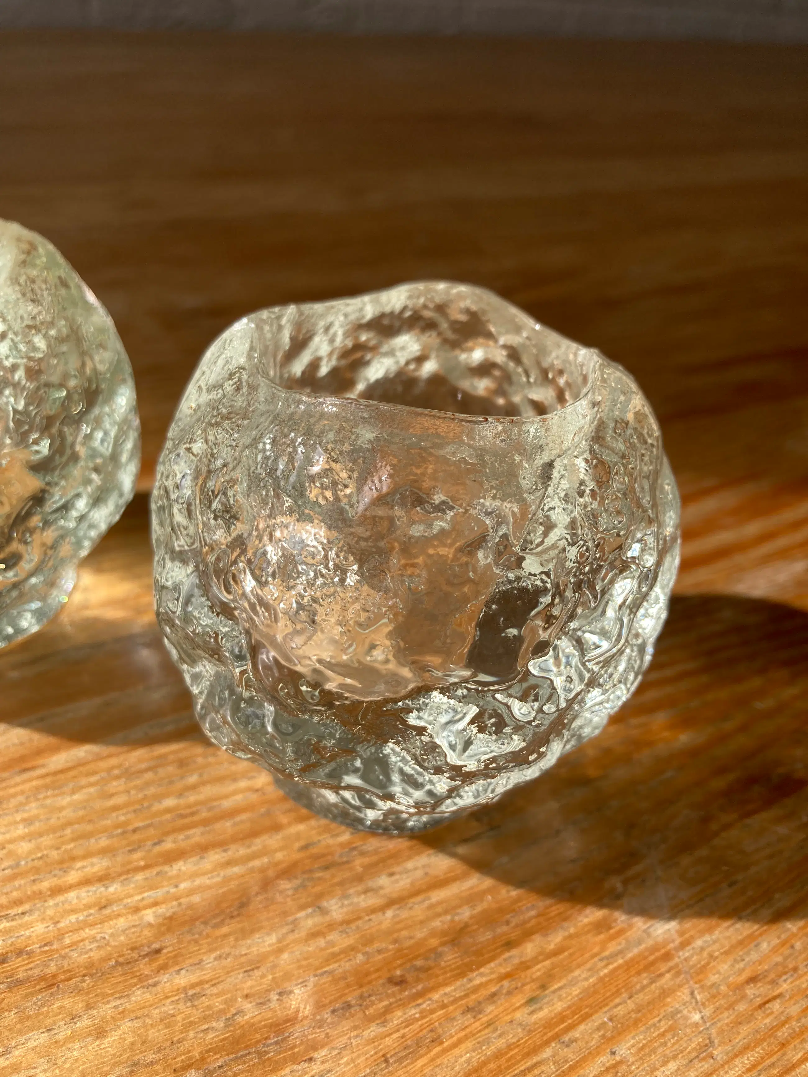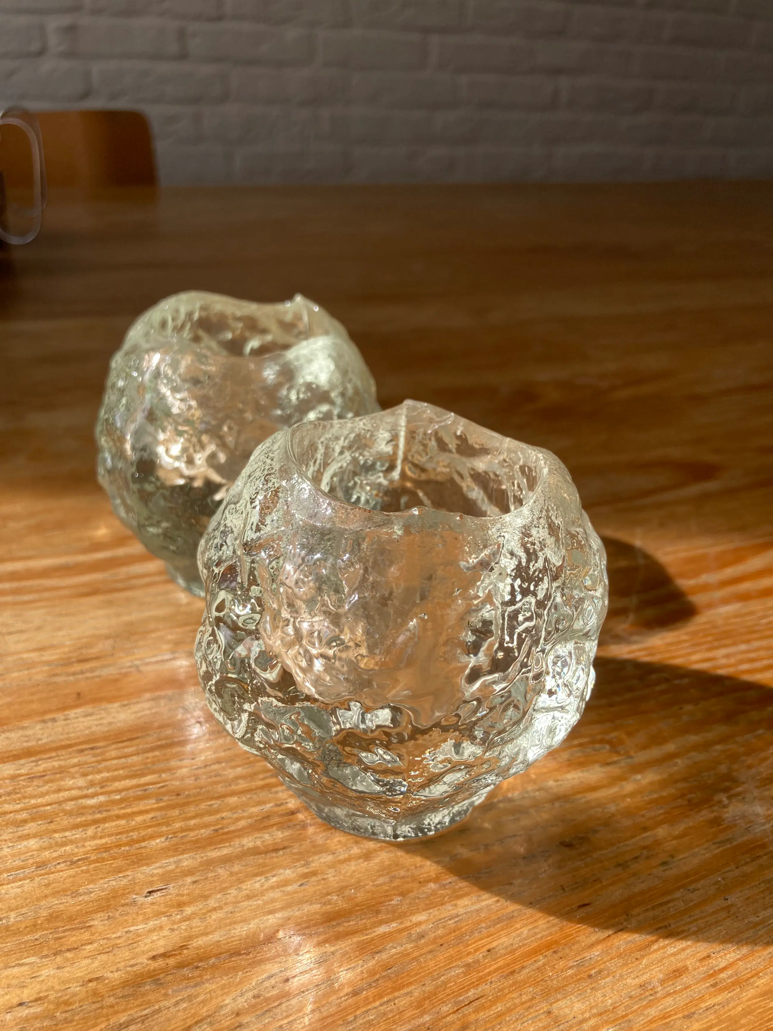 Twee vintage zweedse waxinelichthouders in de vorm van een snowball. De “Snowball” is ontworpen door Ann Wärff in 1973 voor Kosta Boda en gemaak van kristalglas met een ijsglas structuur. De ijs structuur van de snowball waxinelichthouder zorgt voor een prachtig sfeerlicht. Een van de twee heeft een nauwelijks zichtbaar chipje aan de binnenkant rand. Zie laatste foto. Gewicht is van een van de Snowballs.