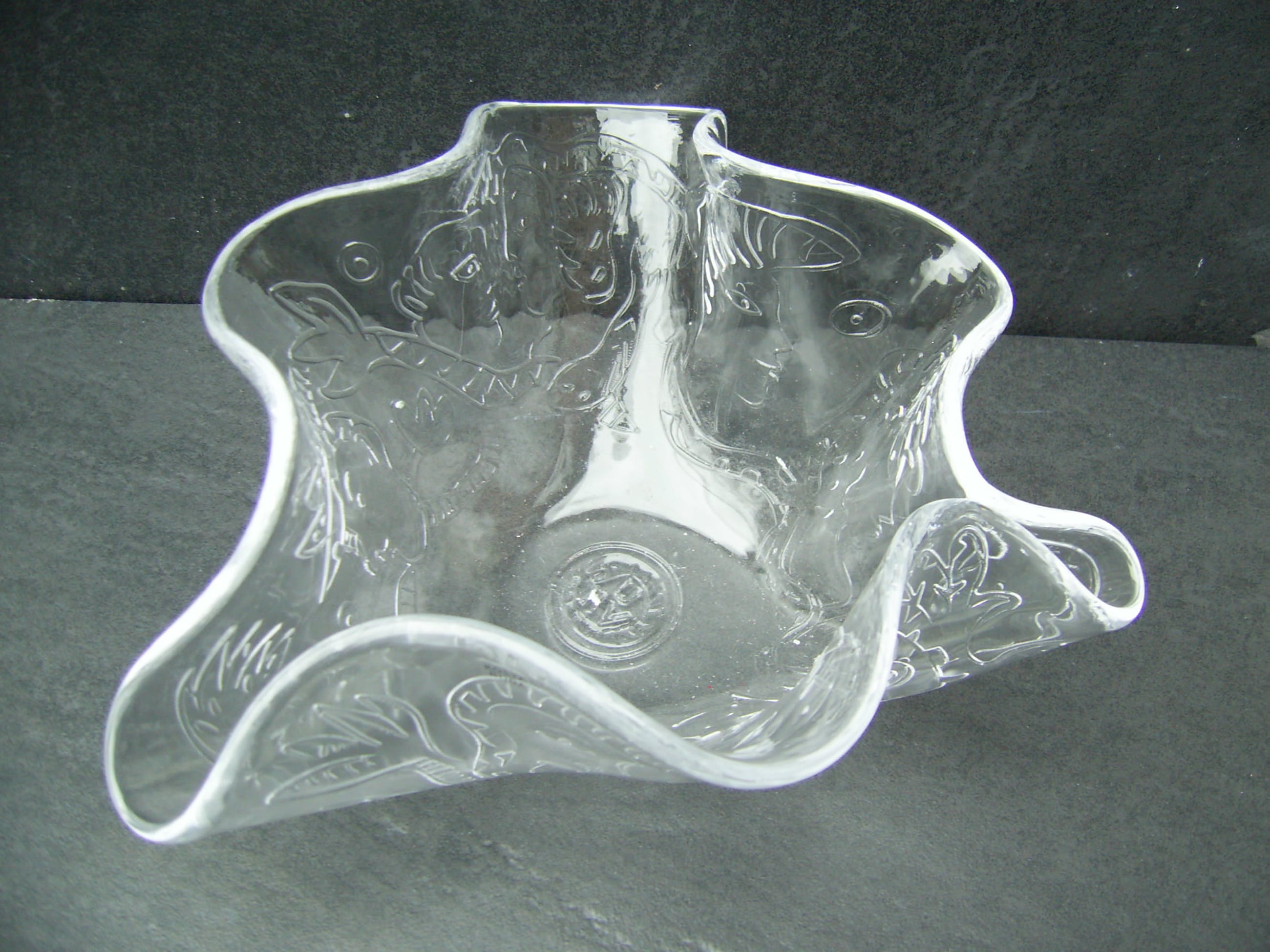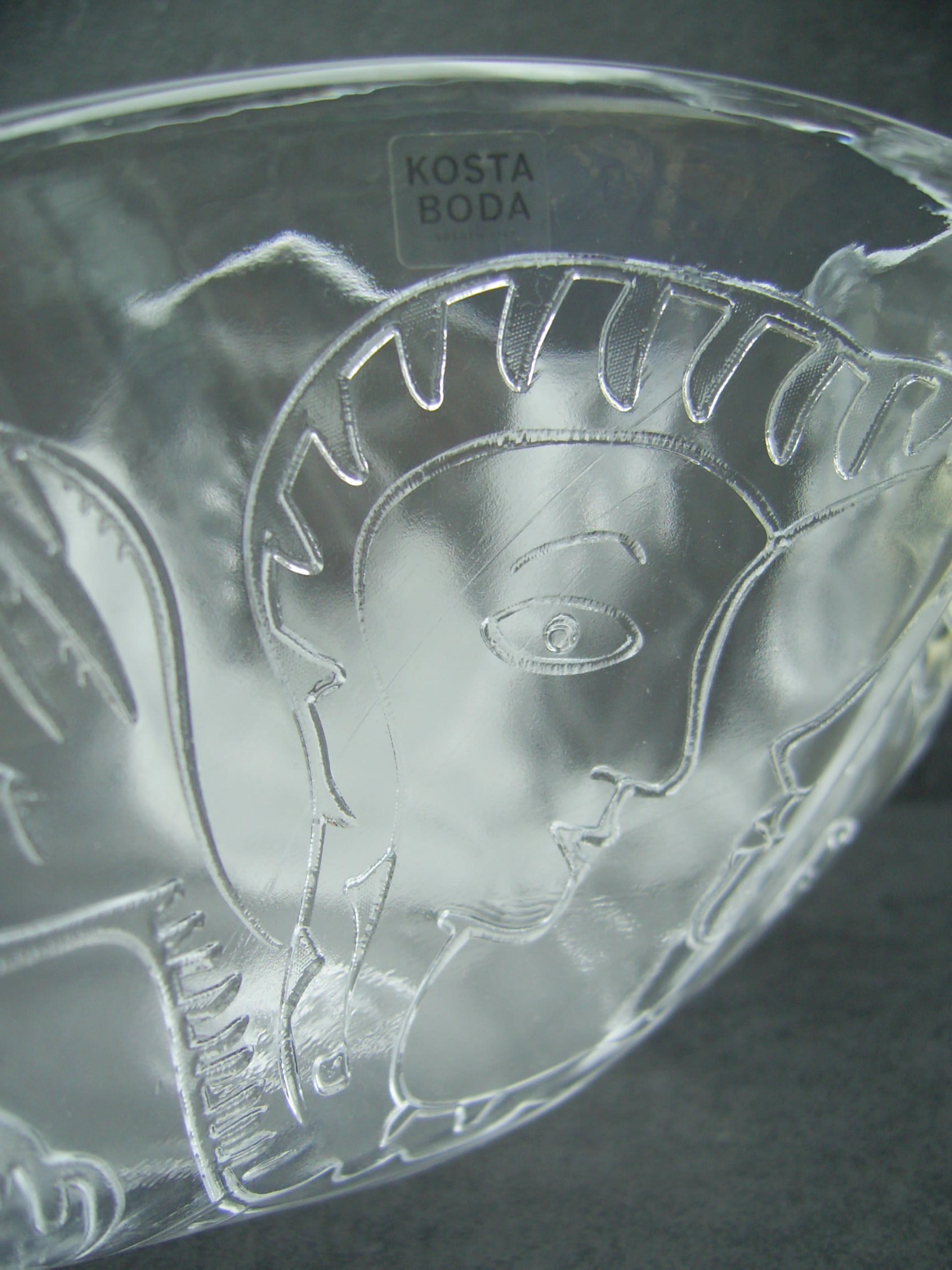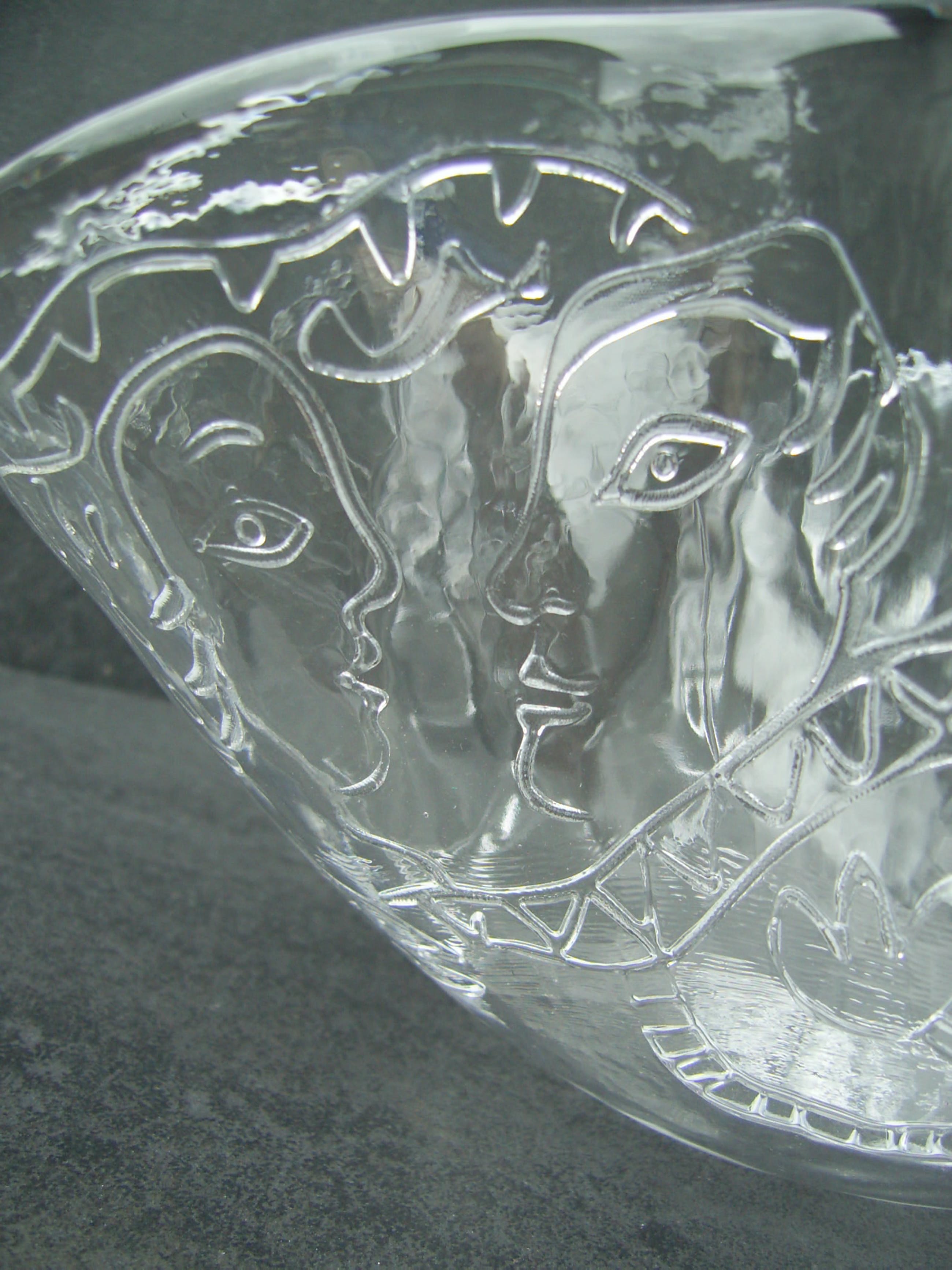 Kosta Boda Zweden - designschaal met figurale gezichten.