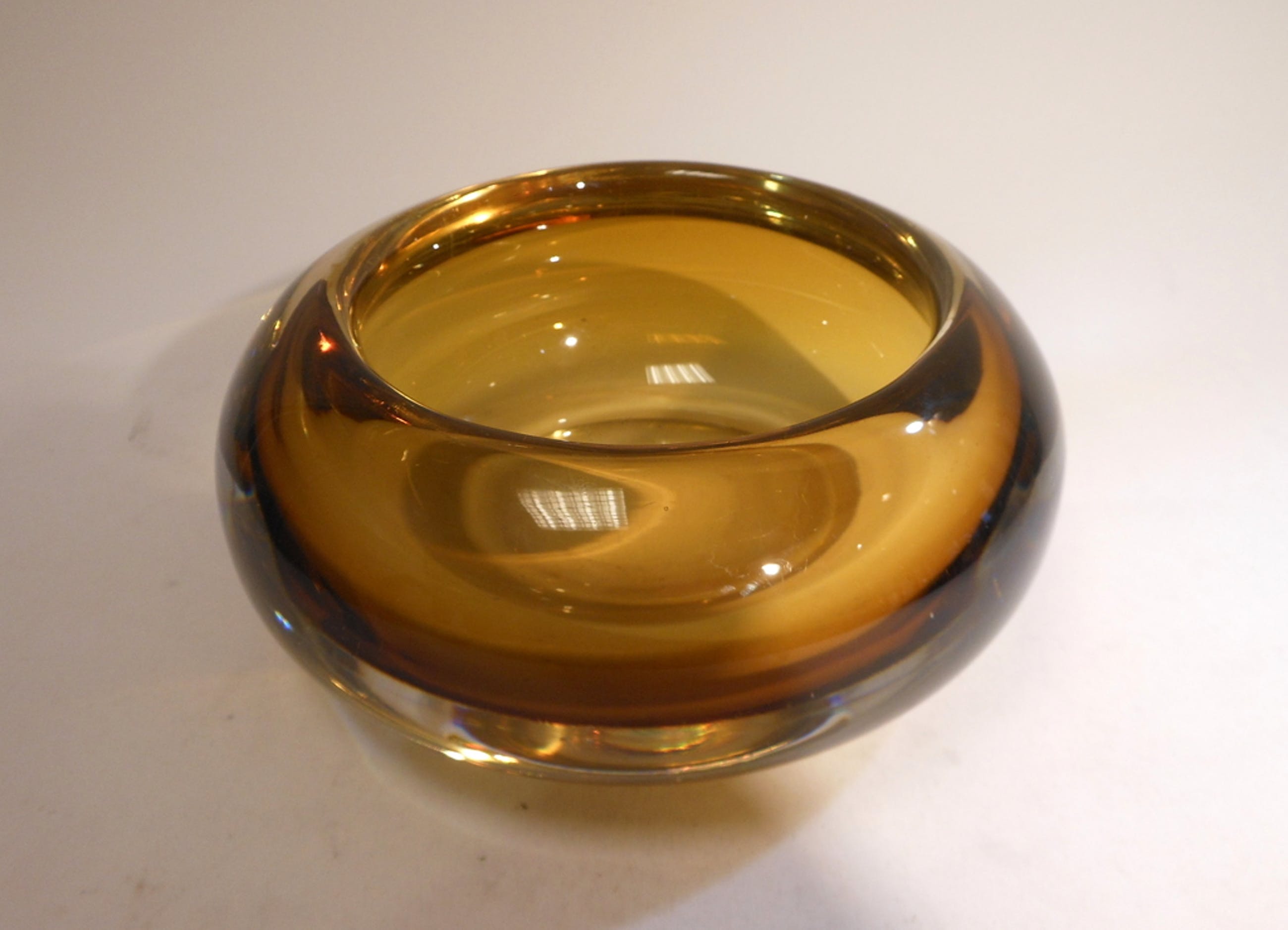 prachtig dikwandig schaaltje, Kosta Zweden, gesigneerd. Doorsnede 15,5 cm, gewicht 2 kilo. Conditie, gebruikssporen (schuiven) onderkant.