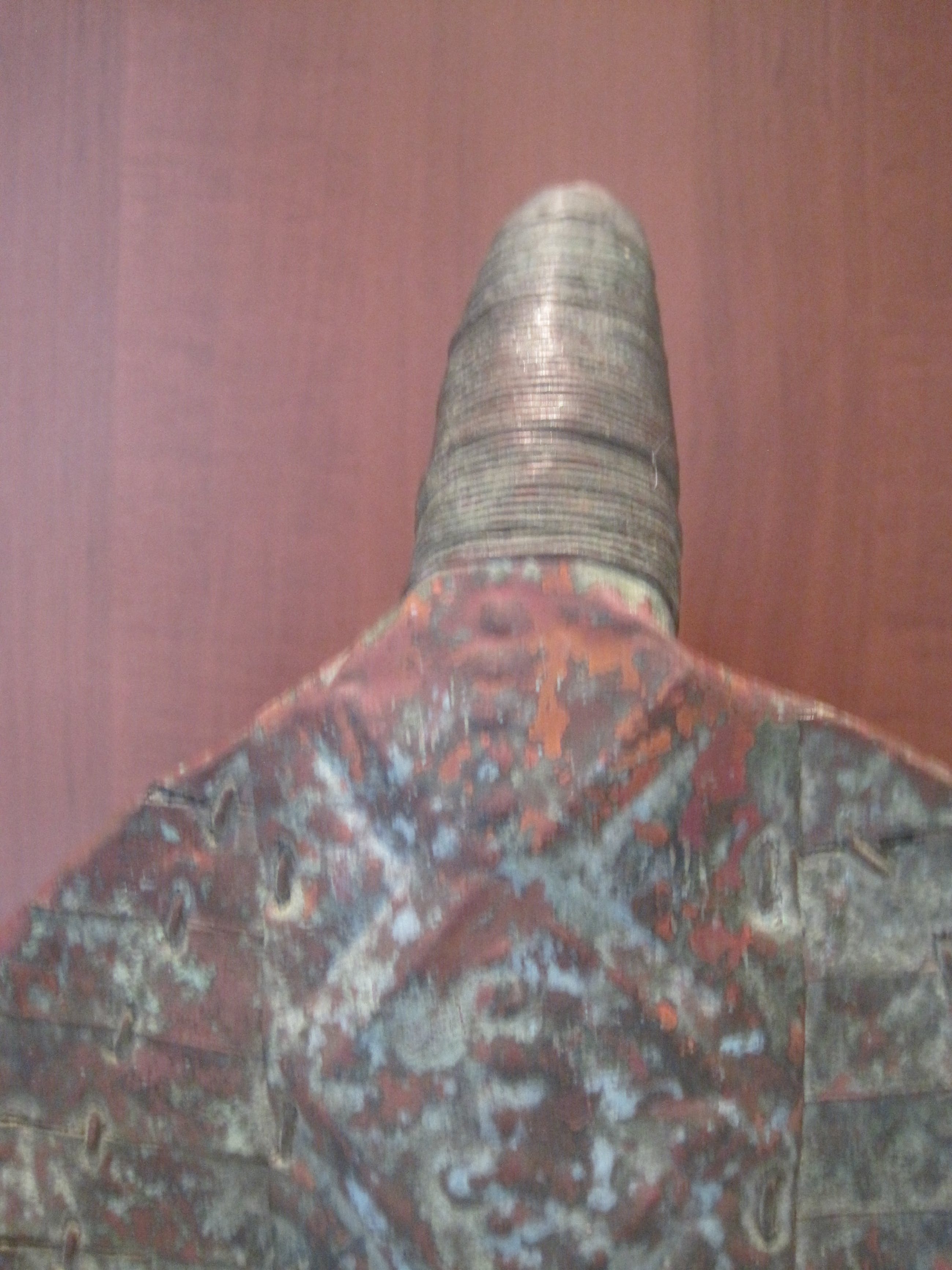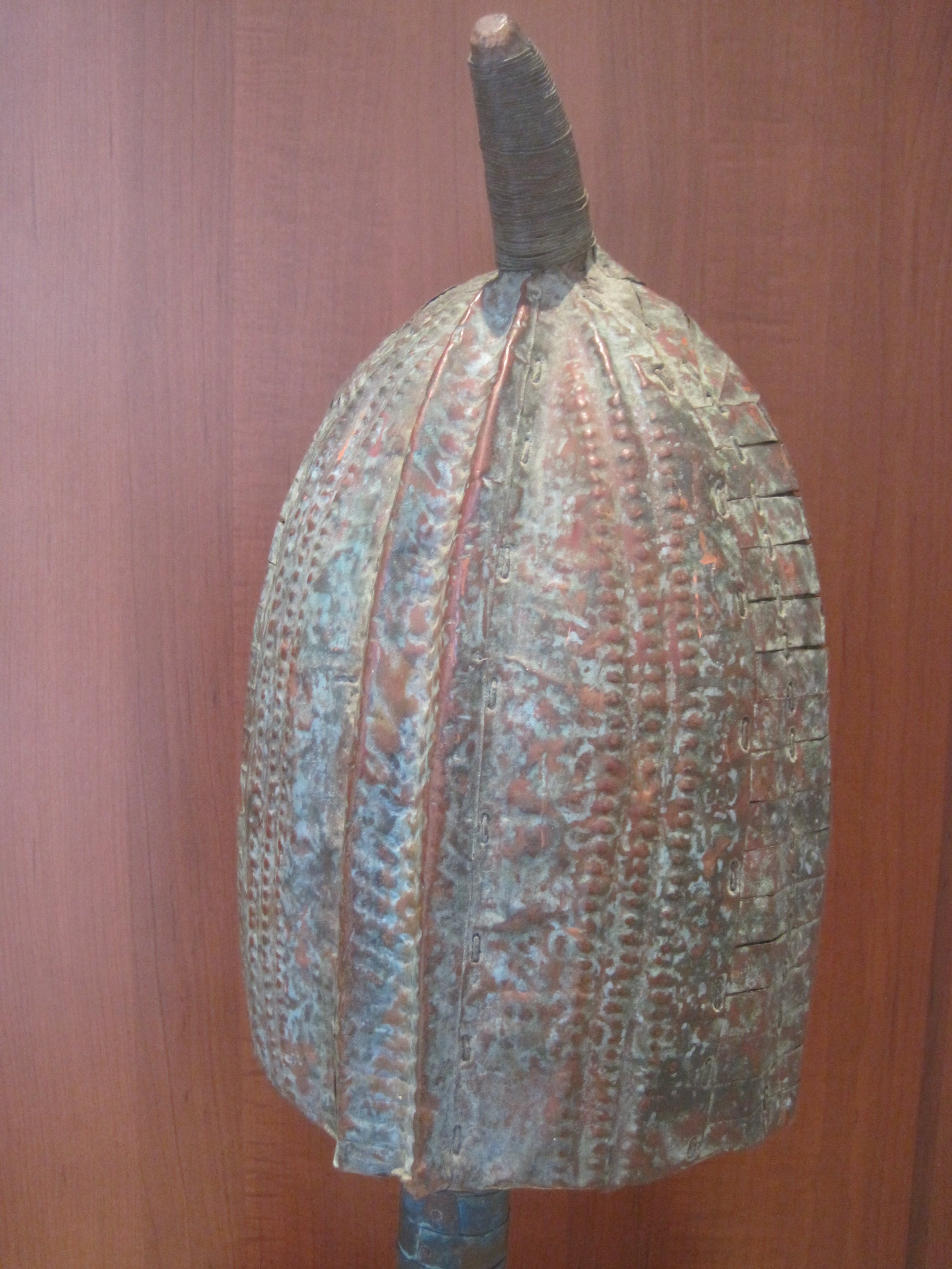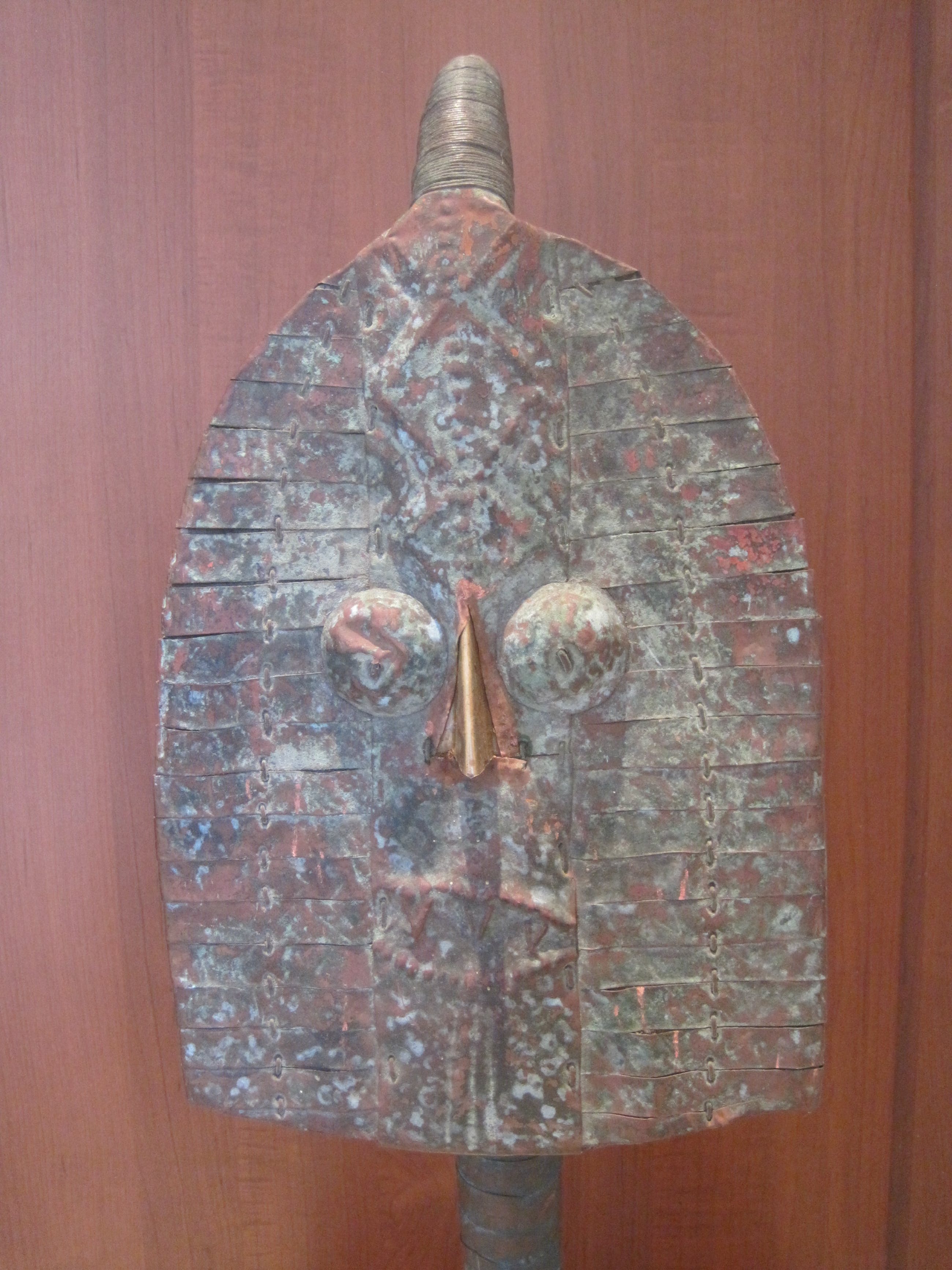 Dit beeld is gemaakt in Afrika, door het Kota/Bakota volk uit gabon. Dit soort beelden staat vaak in een pot of mand gevuld met de overblijfselen van voorouders en andere magische voorwerpen. Dit beeld is gemonteerd op een dikke aluminium plaat.
