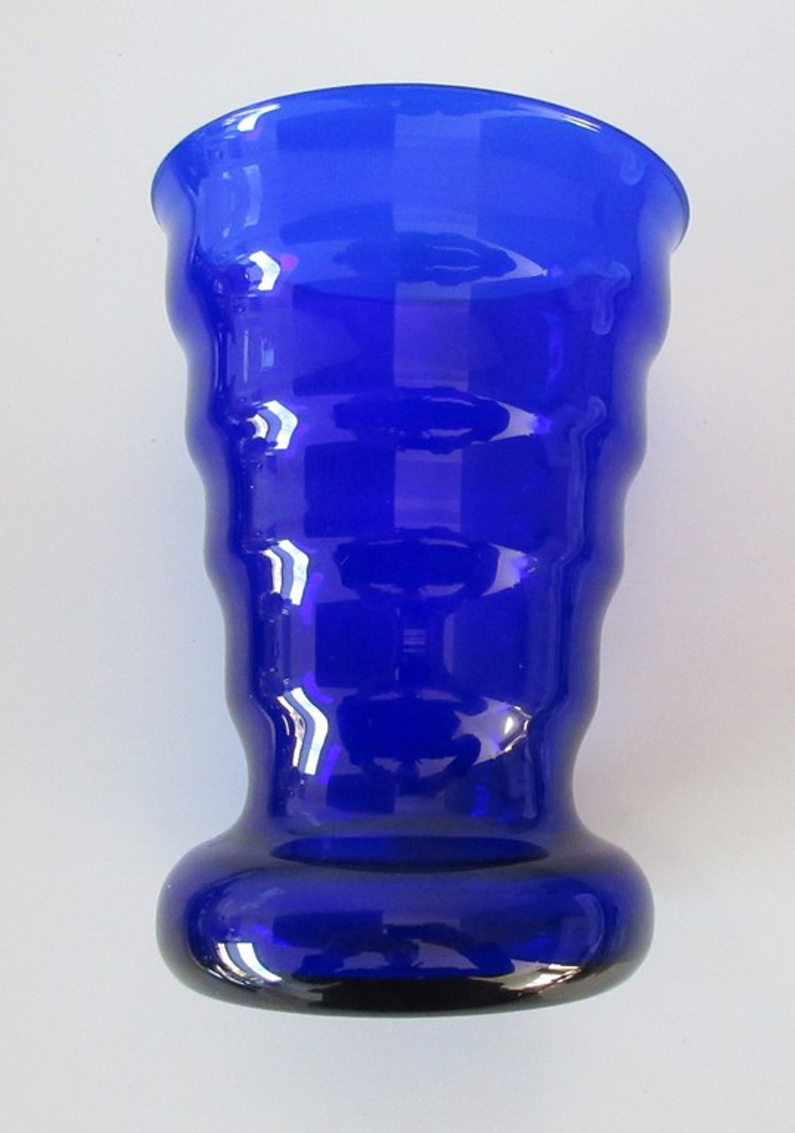 Geribde cobalt blauw glazen vaas, model "S", ontwerp uit 1917. Dit is een heruitgave welke gemaakt is in de jaren'90.