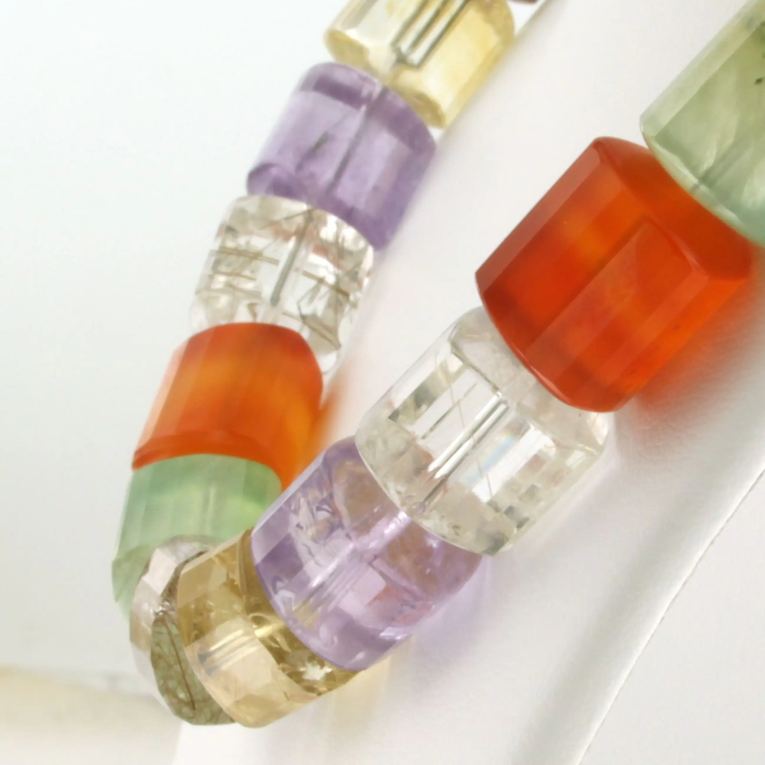 - 32 x 1.2 cm x 1.1 cm prisma vorm geslepen carneool, amethist, groene amethist, bergkristal, citrien en rutiel kwarts