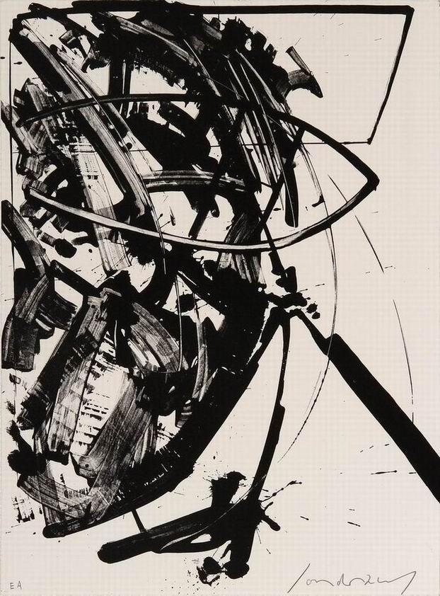 Ohne Titel, 1979, Original-Lithografie auf Papier, 1979. Größe 65,2 x 48,5 cm Darstellungsmaß gleich Blattmaß. Auflage 75. Exemplar: E. A.. Handsigniert. Lit. K. R. H. Sonderborg, Werkverzeichnis der Druckgrafik von Christian Rathke. WVZ-Nr. 90. Abbildung auf S. 65. Im Werkverzeichnis ist dieses Werk als Querformat abgebildet. Der Künstler hat häufiger Grafiken mal als Hoch- und mal als Querformat signiert um verschiedene Wirkungen zu erzielen. Sehr guter Erhaltungszustand. Das angebotene Kunstwerk ist auf Originalität, Echtheit, Authentizität und Erhaltungszustand sorgfältig geprüft worden. Besichtigung und Abholung vor Ort jederzeit möglich. Versand des Bildes erfolgt nach Zahlungseingang. Versandkosten im Inland EURO 12,--. Ein 14-tägiges Rückgaberecht wird gewährt. Bei Nichtgefallen wird der Kaufpreis erstattet. Die Kosten für den Rücktransport trägt der Käufer.