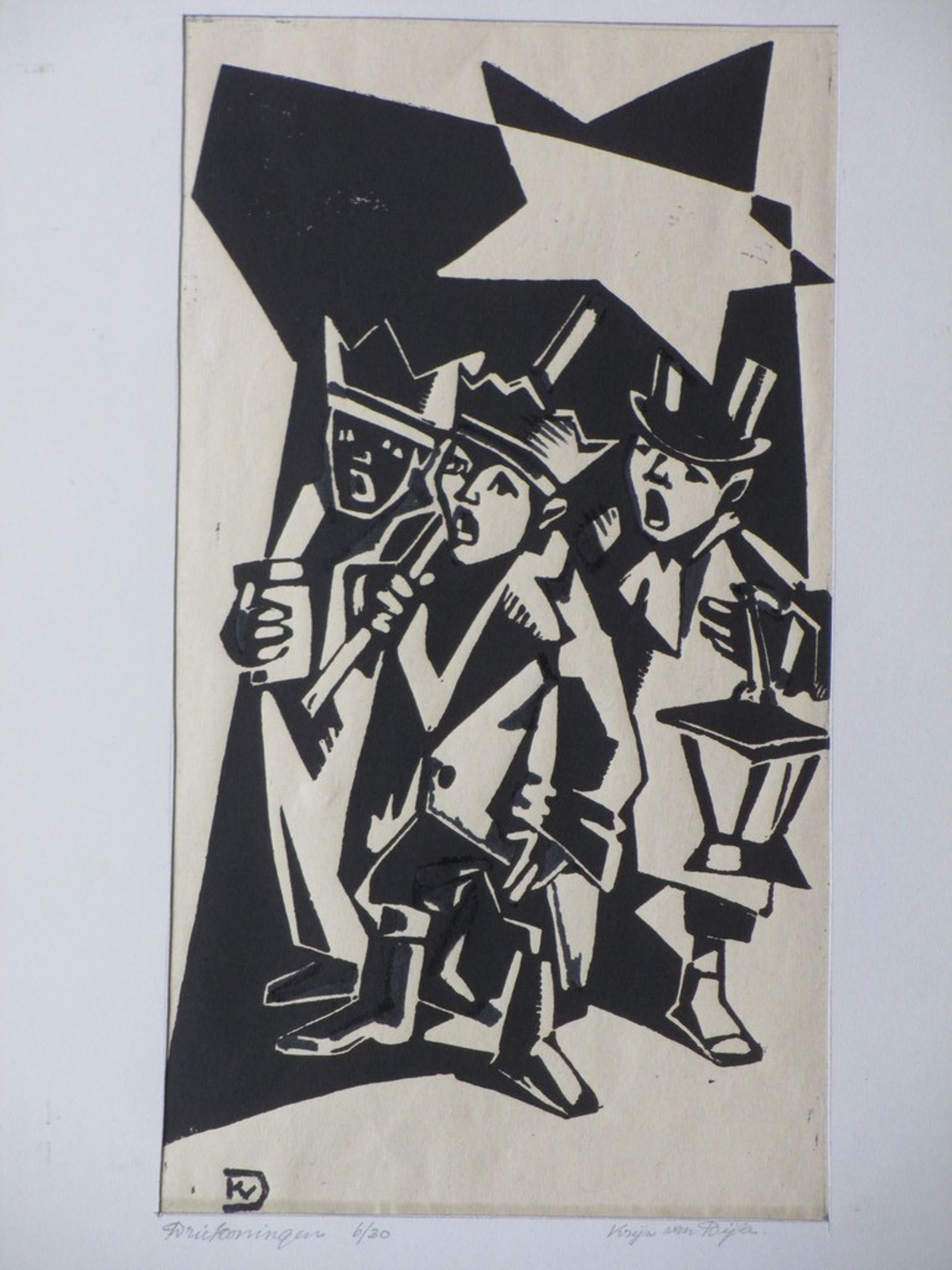 Gesigneerd r.o. op passepartout 'Krijn van Dijke' en getiteld l.o. 'Driekoningen'