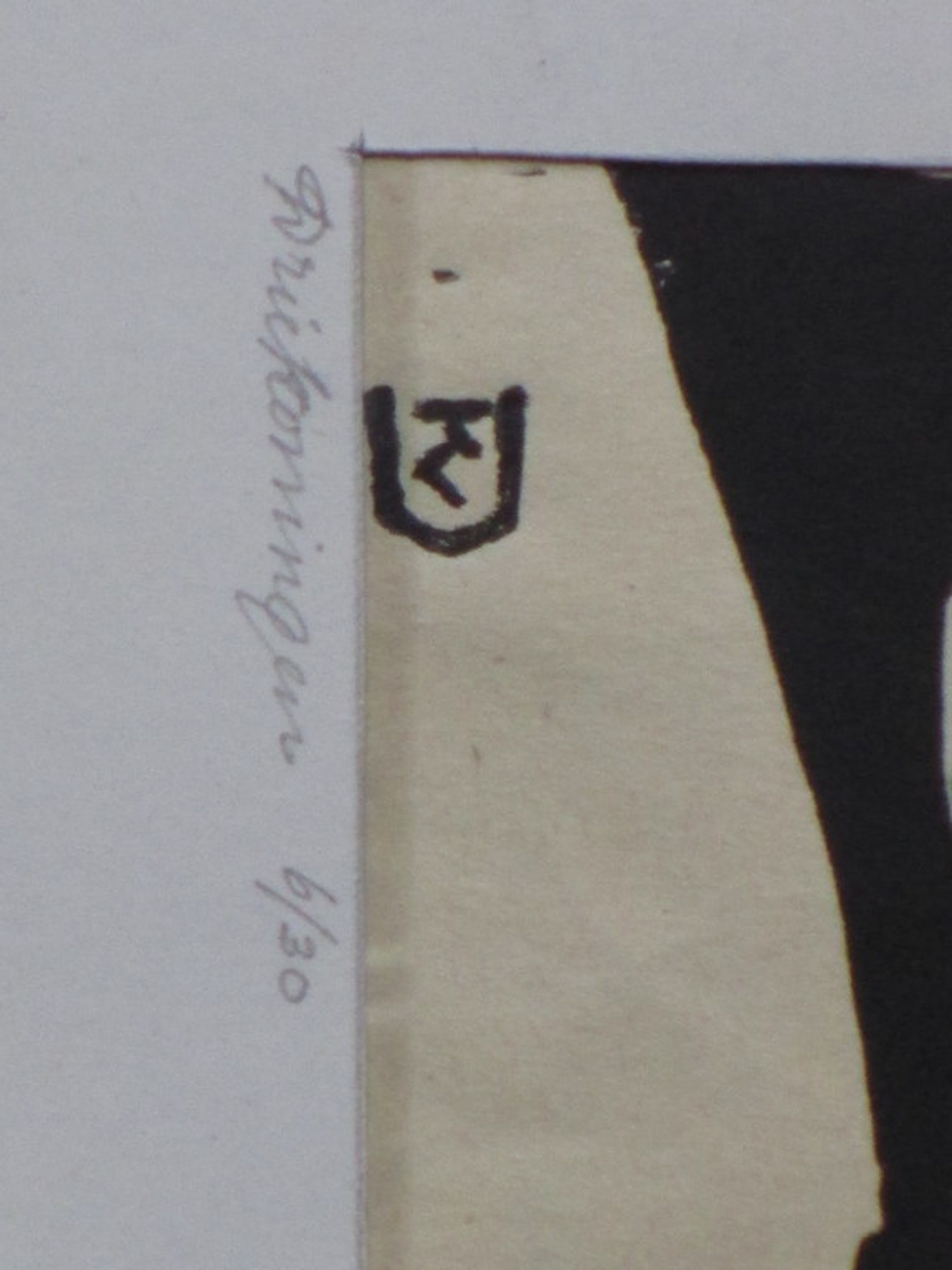 Genummerd l.o. op passepartout '6/30' en gemonogrammeerd l.o. in de druk 'KvD'