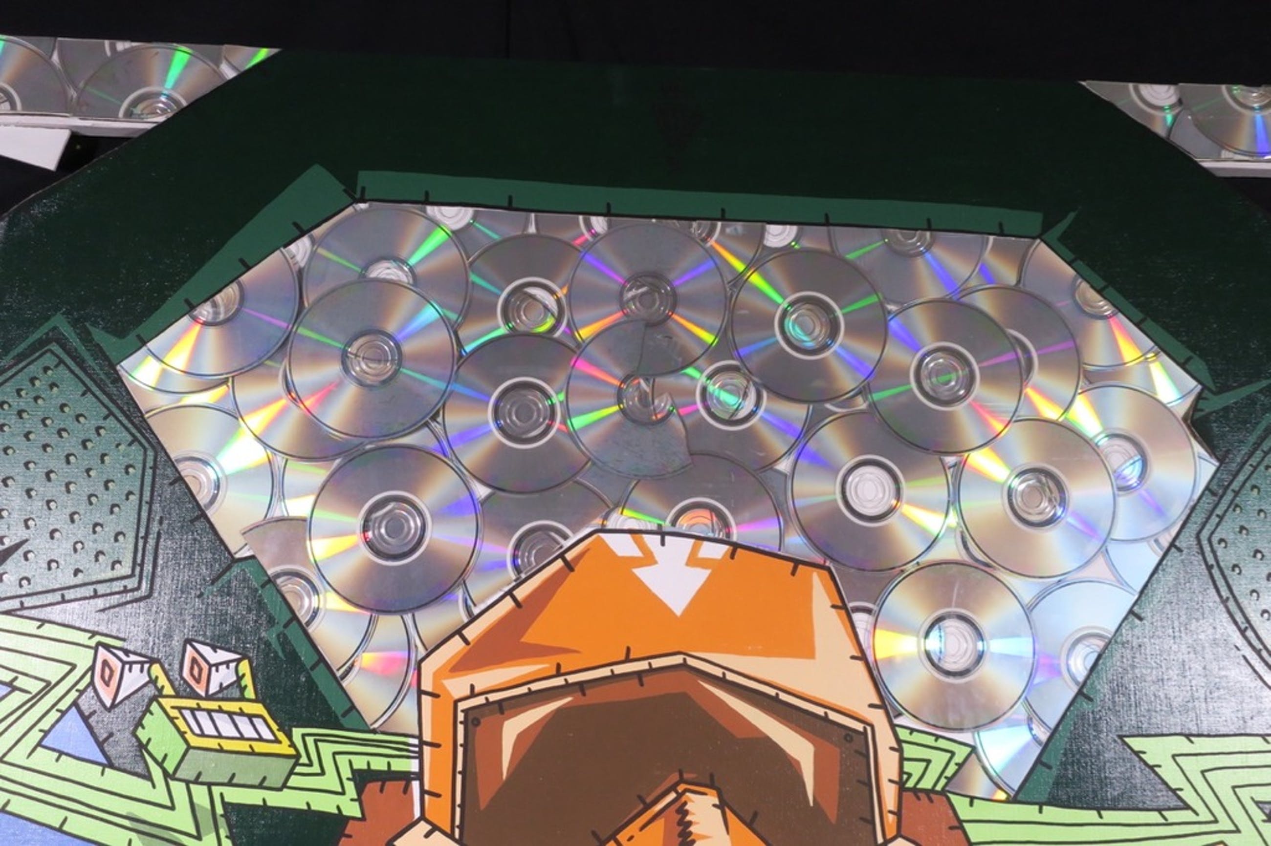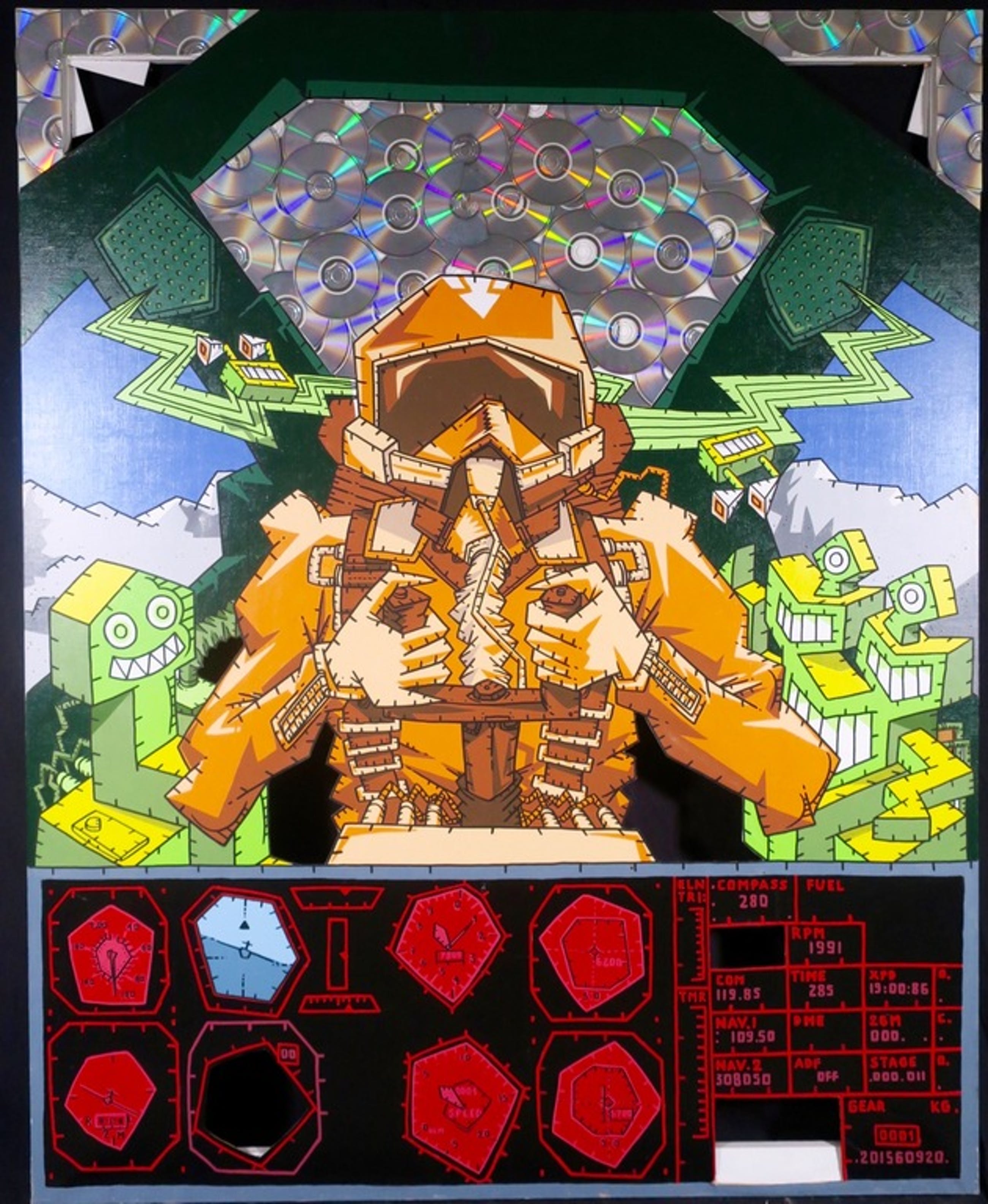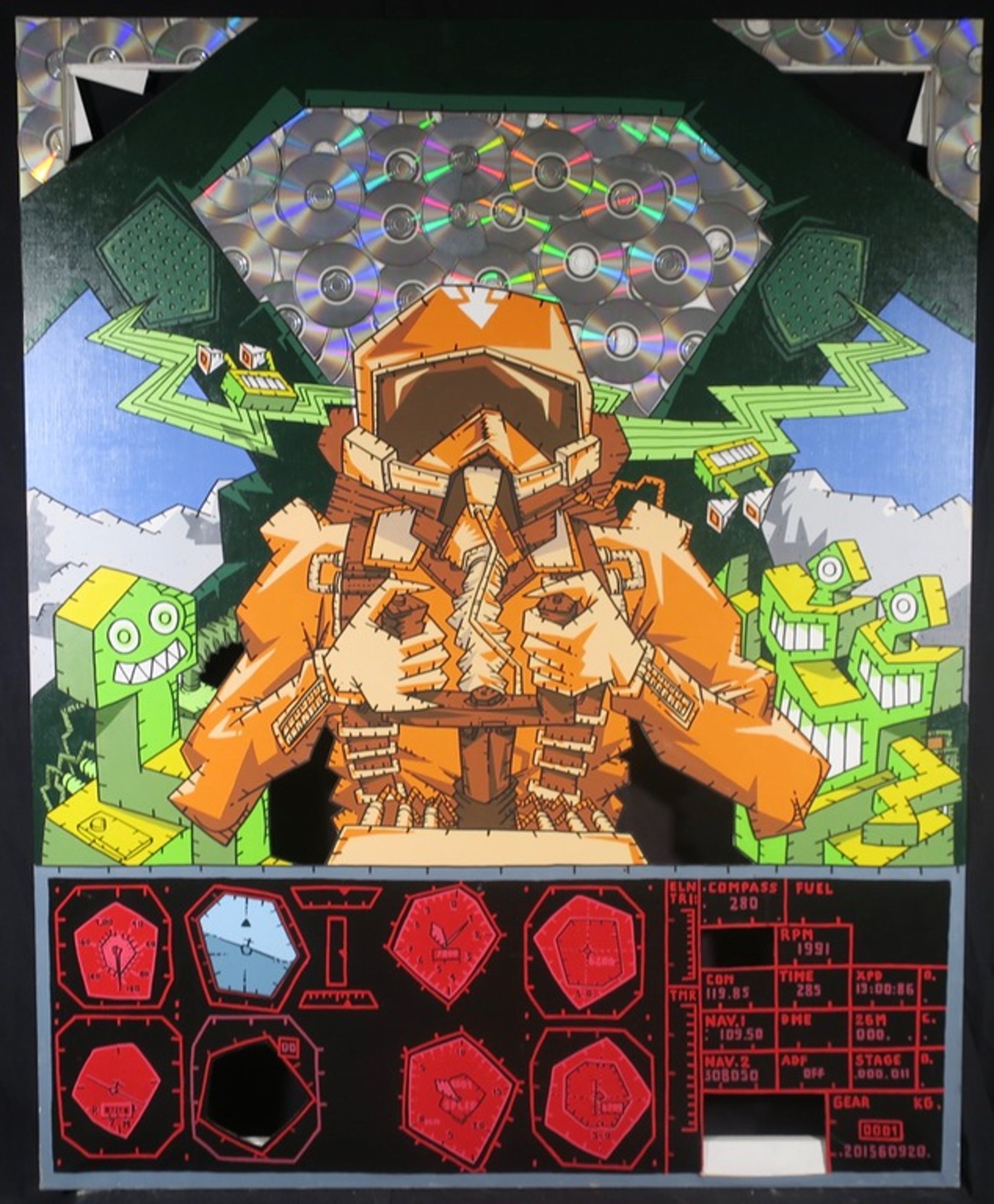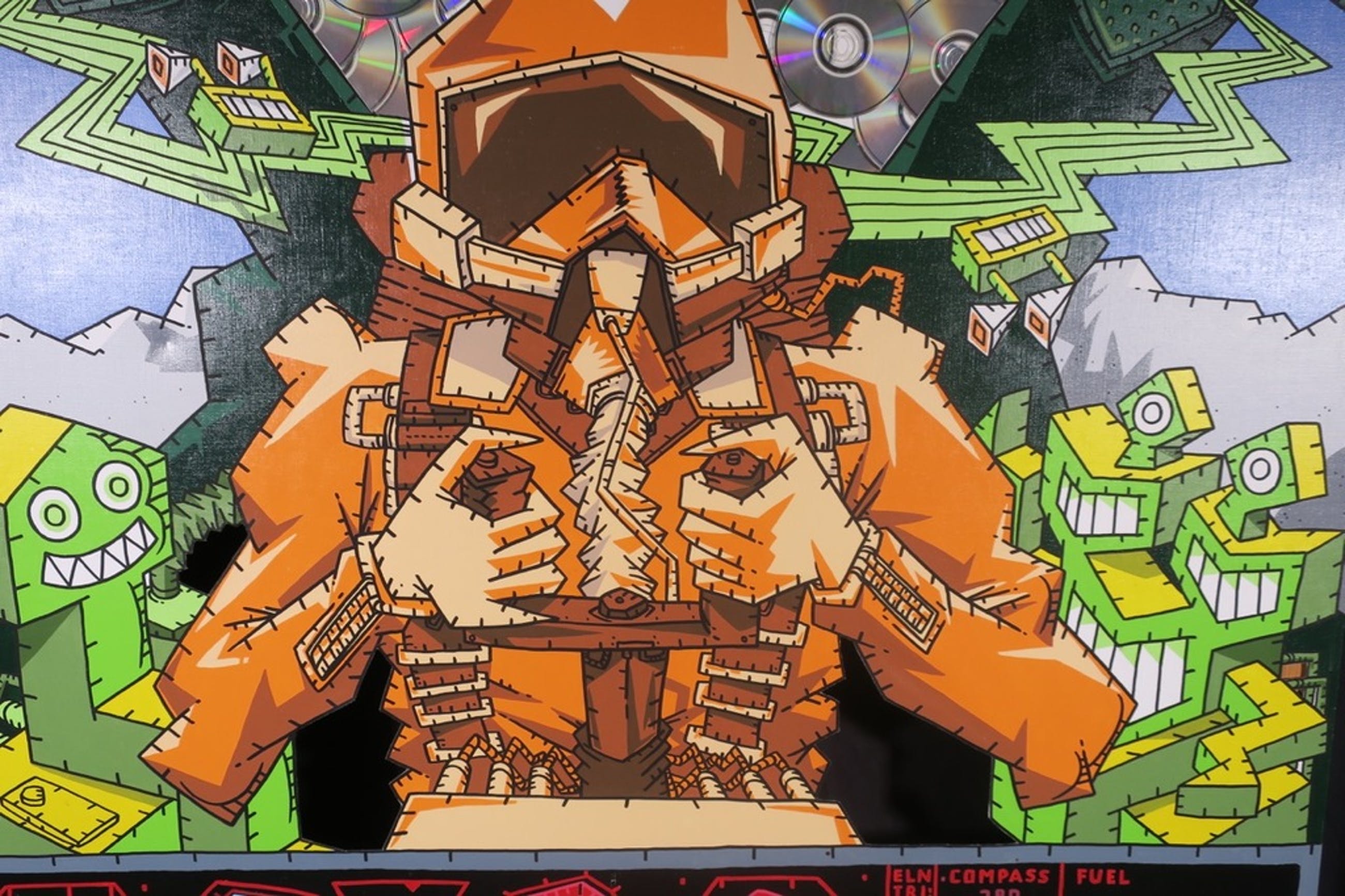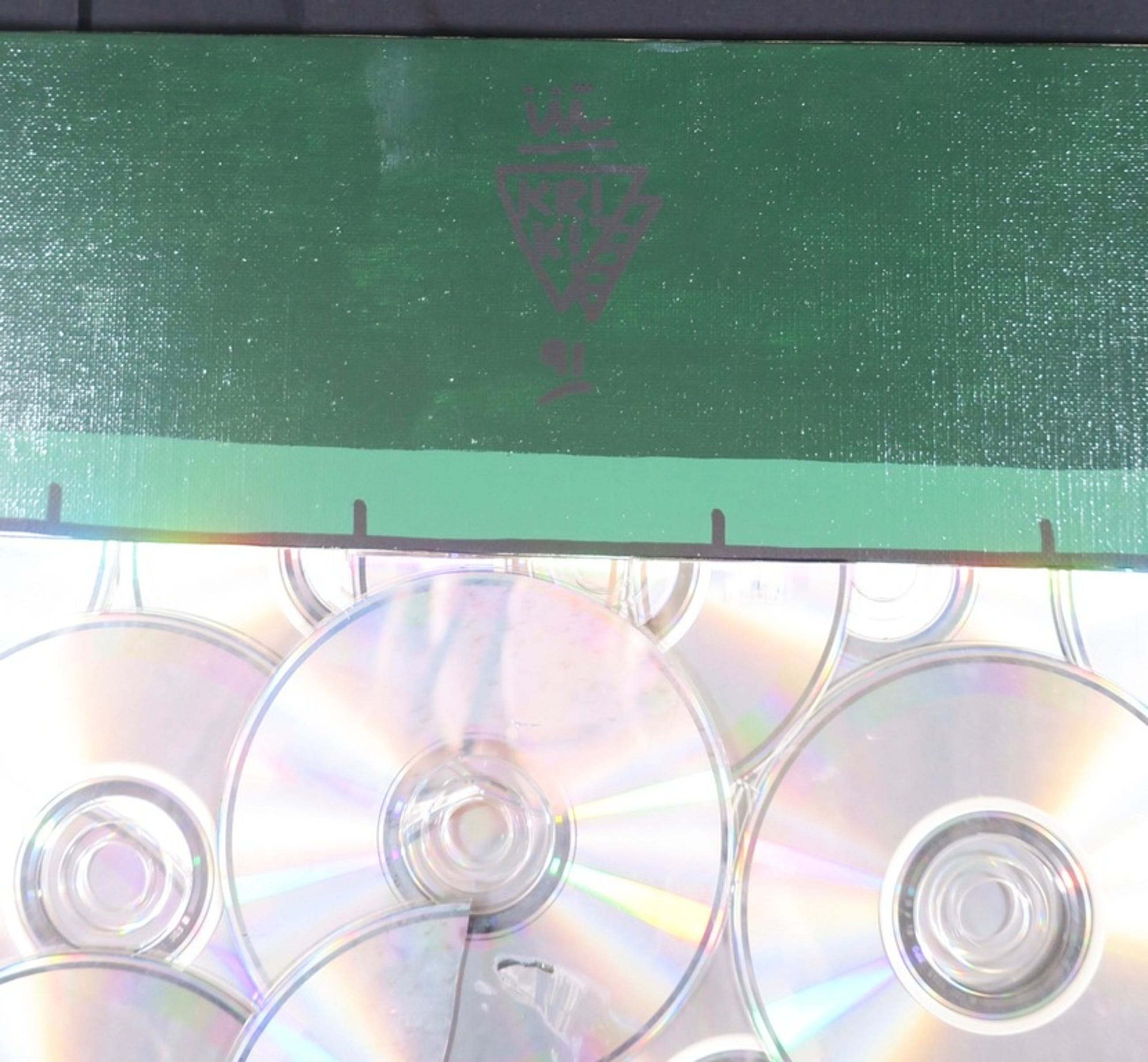 Conditie kunstwerk: In goede staat, maar met een krasje in het groen links midden/boven en er is een cd half afgebroken midden-boven (gemakkelijk te restaureren)