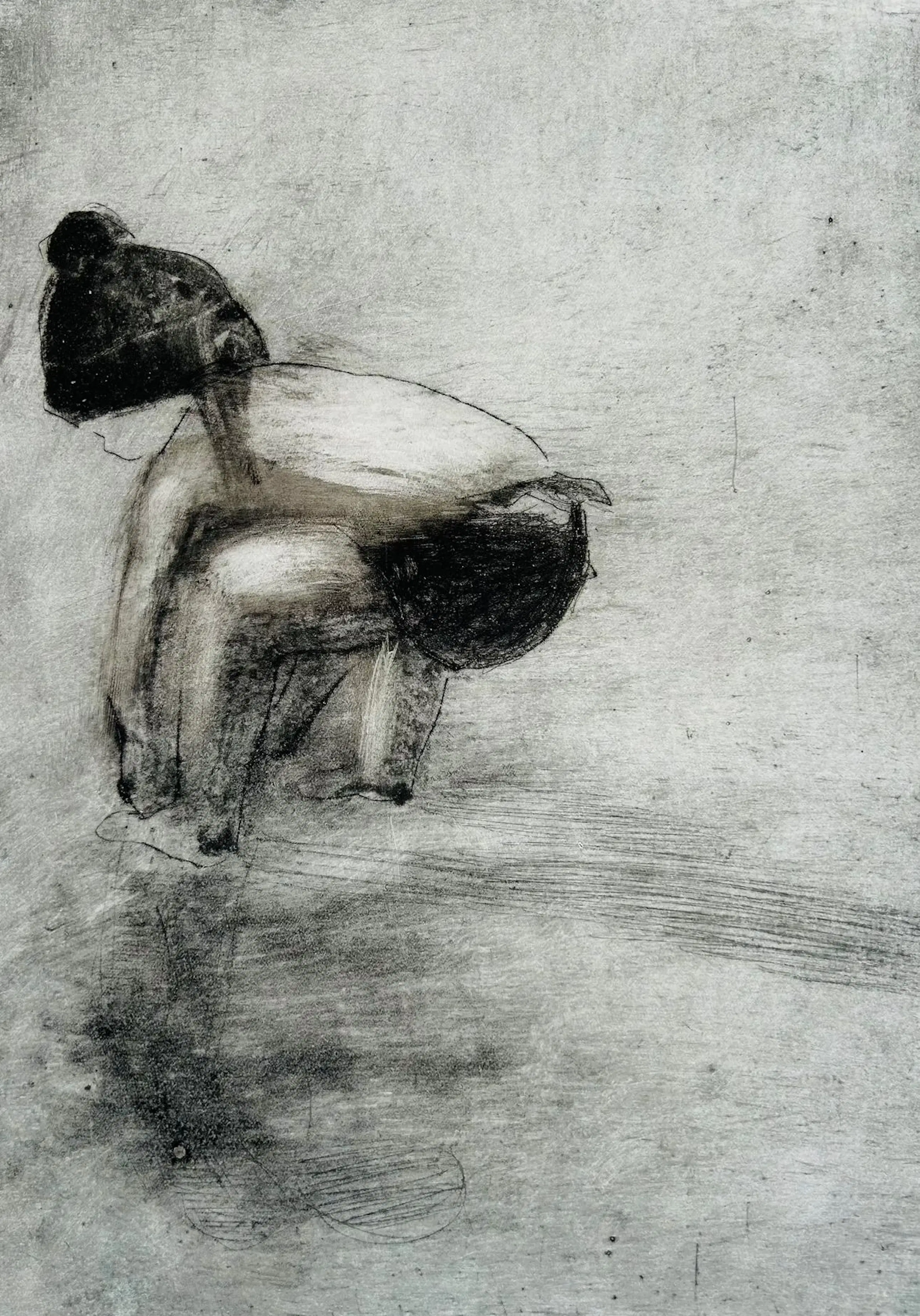 Het liefst maakt Krin Rinsema (Meppel, 1947) etsen. Zij gebruikt daar aluminium offsetplaten voor die zij krijgt van de plaatselijke drukker. Na zes of zeven drukken is de plaat versleten. De drukken hebben daardoor al iets unieks en meestal werkt ze daarna door op het werk. Soms door de plaat anders in te inkten en soms door er met bijvoorbeeld houtskool op het papier verder te werken.
