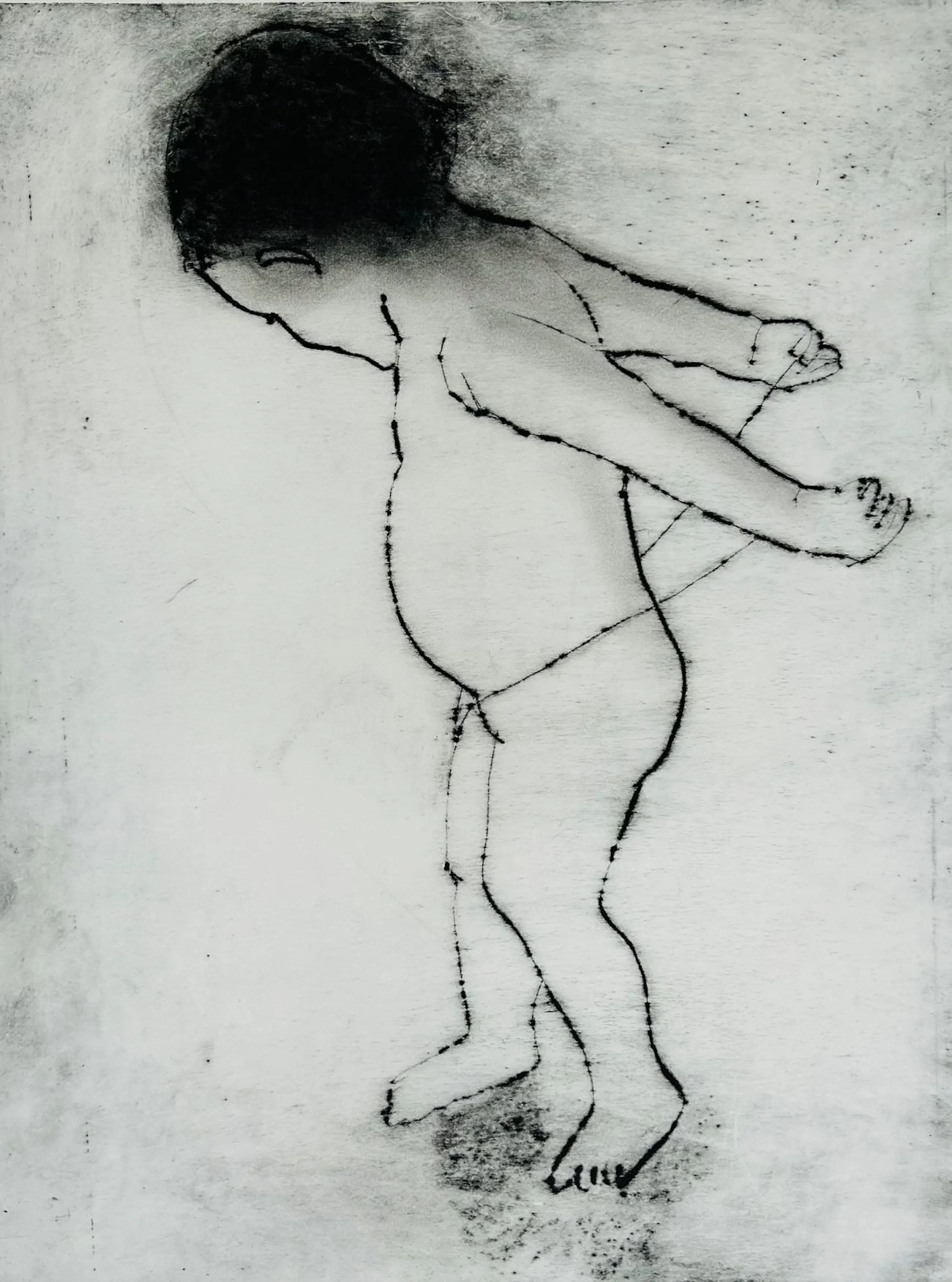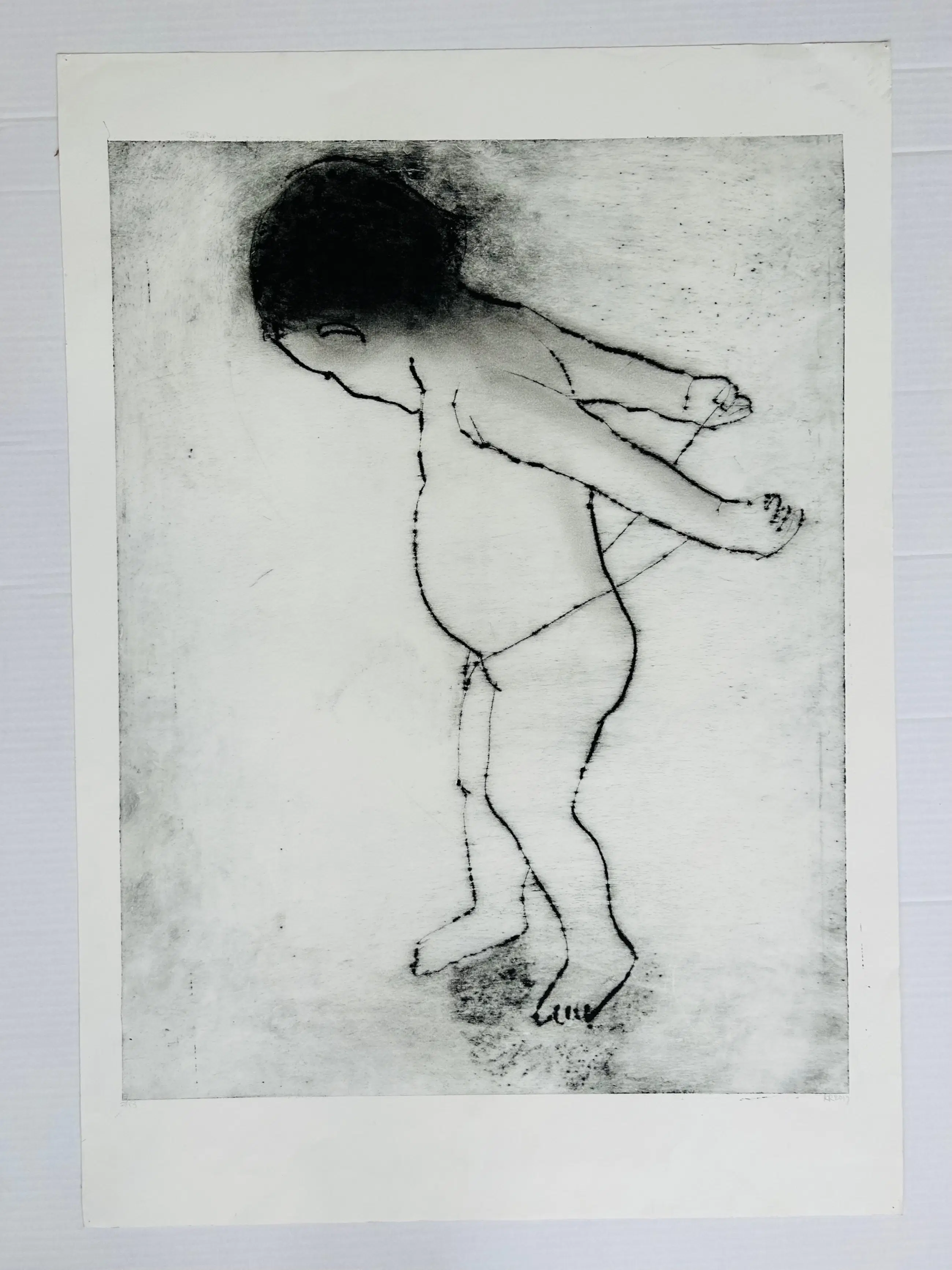 Uit een grote collectie konden wij werk verwerven  van de Nederlandse kunstenaar Krin Rinsema. Poëtisch en zeer fraai gemaakt werk om te verstillen of bij weg te dromen. Het werk verkeert in perfecte conditie. De vlekjes en zwarte vegen in de witrand rondom het kunstwerk zijn gemaakt door de kunstenaar in het proces en kunnen worden afgedekt met een passe partout maar onderdeel van het maak en bewerkproces van de kunstenaar. De indruk van de ets is kleiner dan de papiermaat.