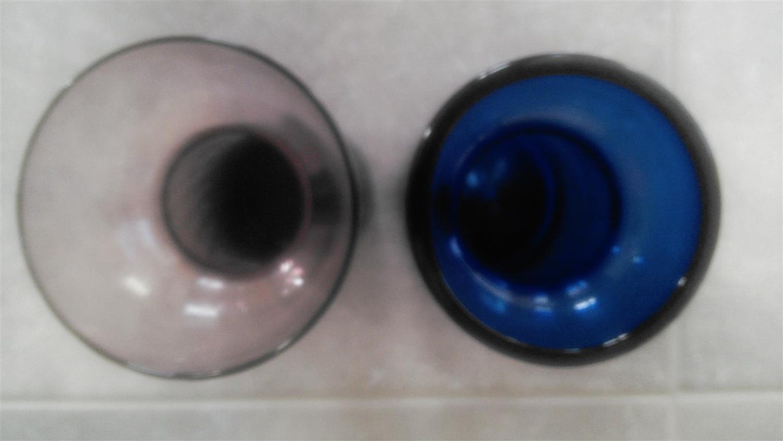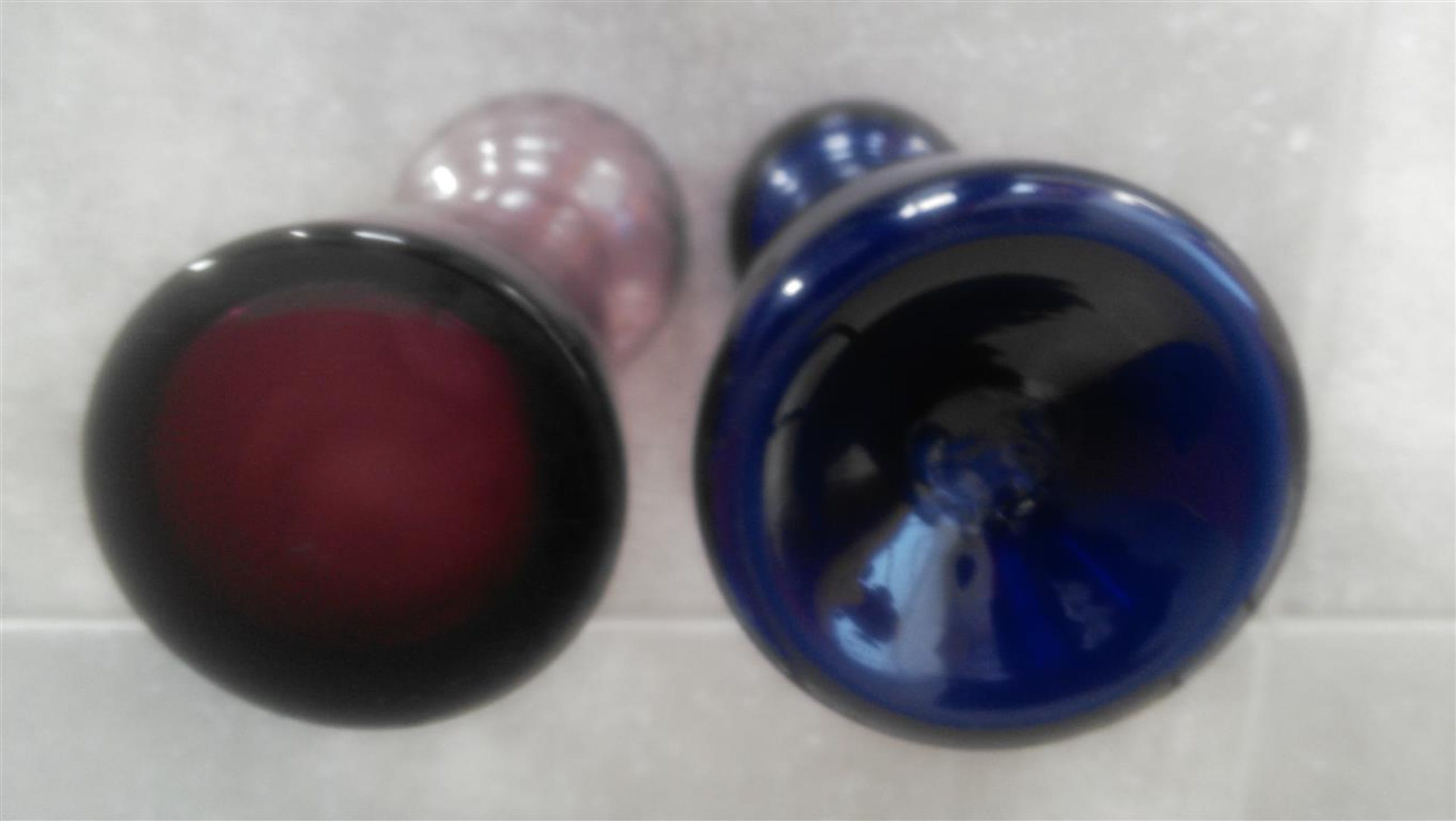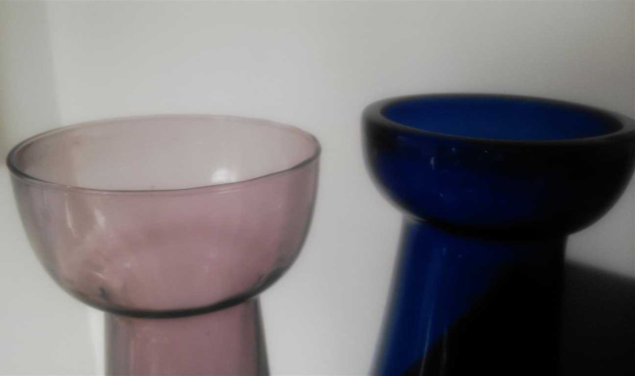 De effen blauwe met geest en pontilmerk De paarse met lijnenpatroon