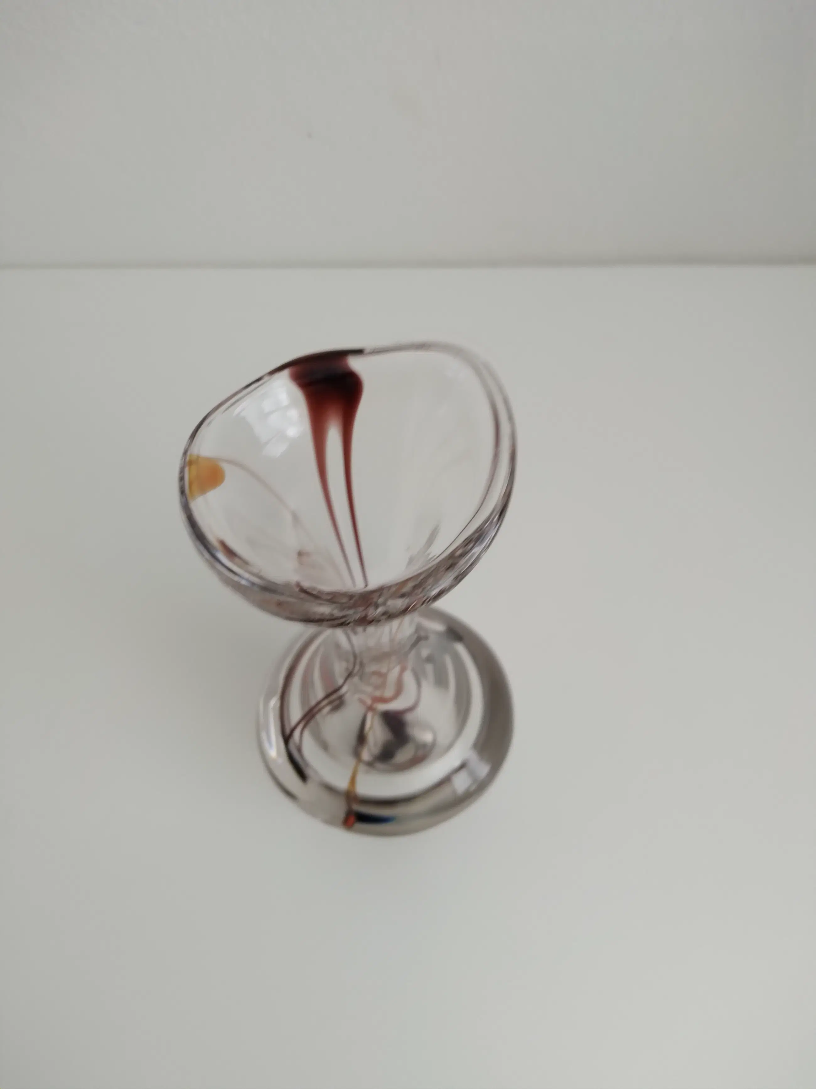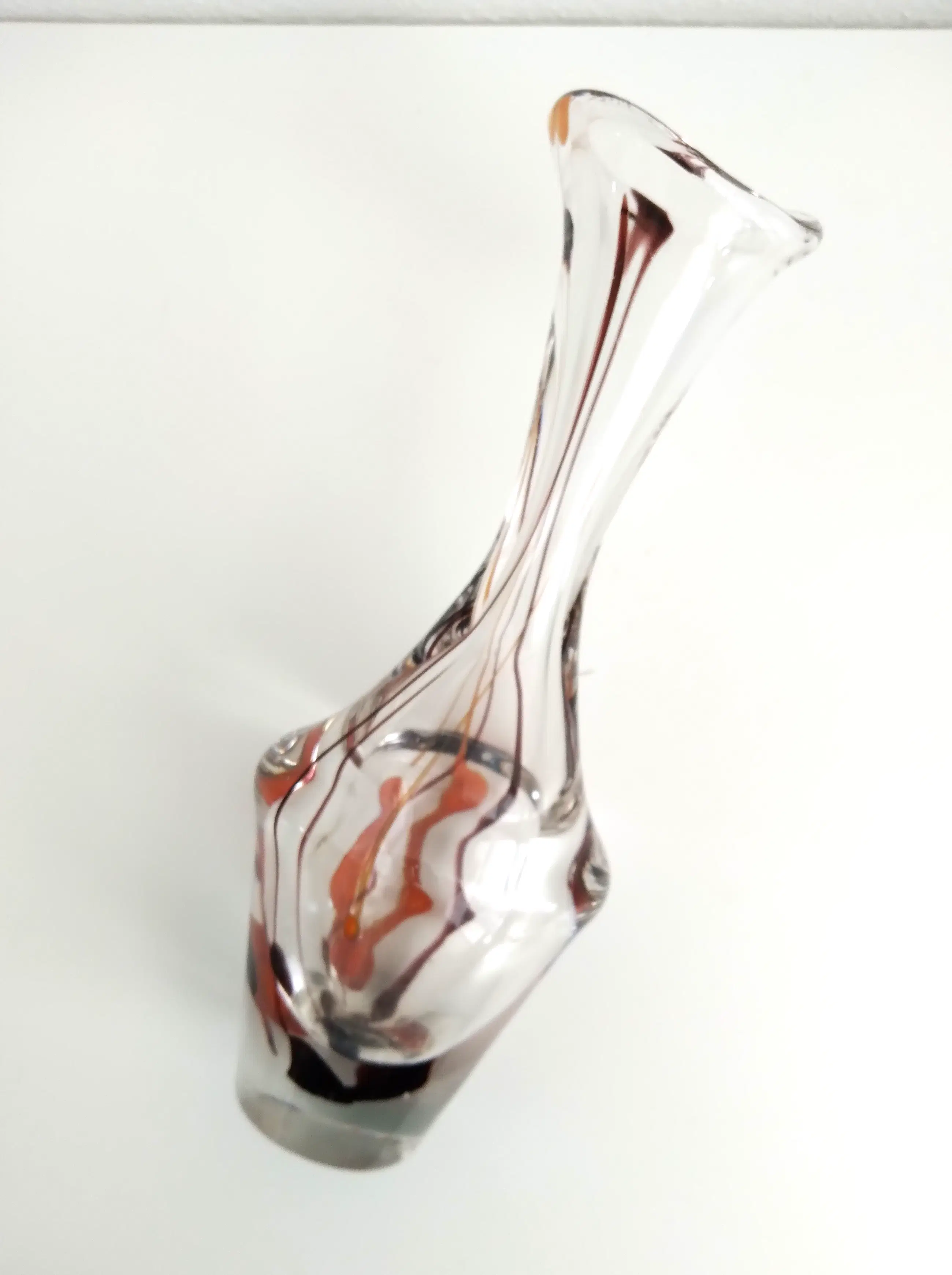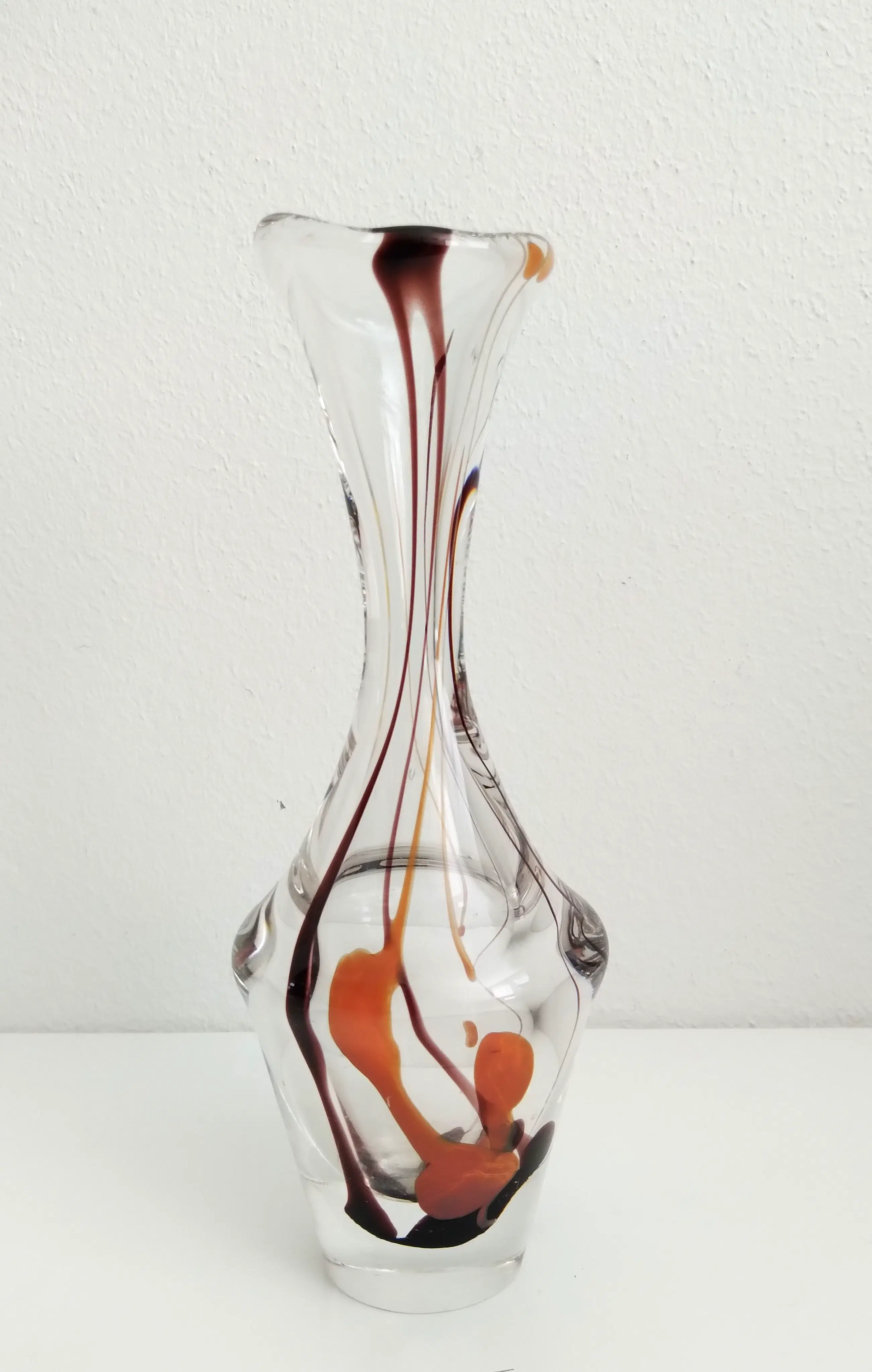 Sierlijke dikwandige vaas met ingesloten zacht oranje en bruinkleurige linten.