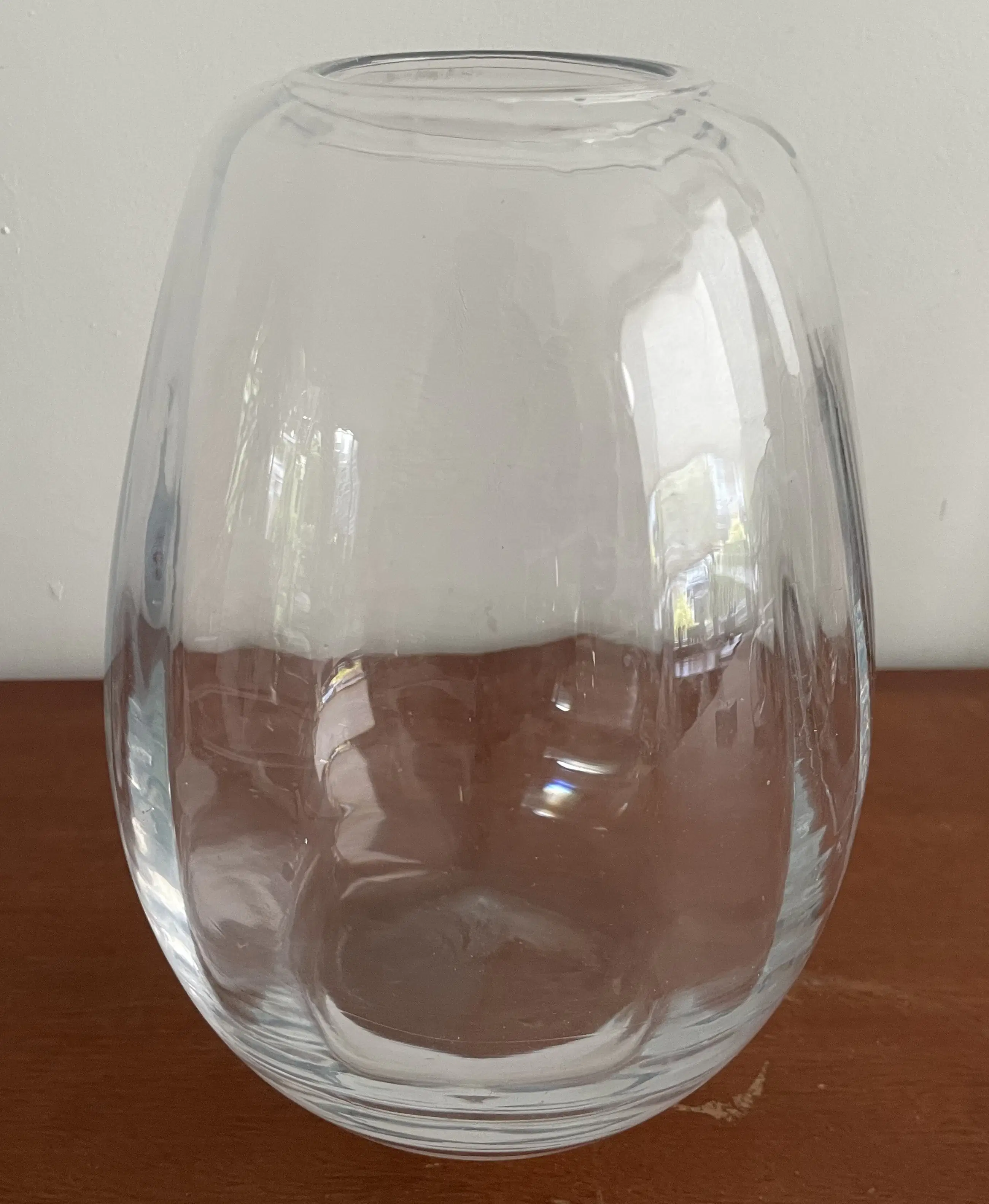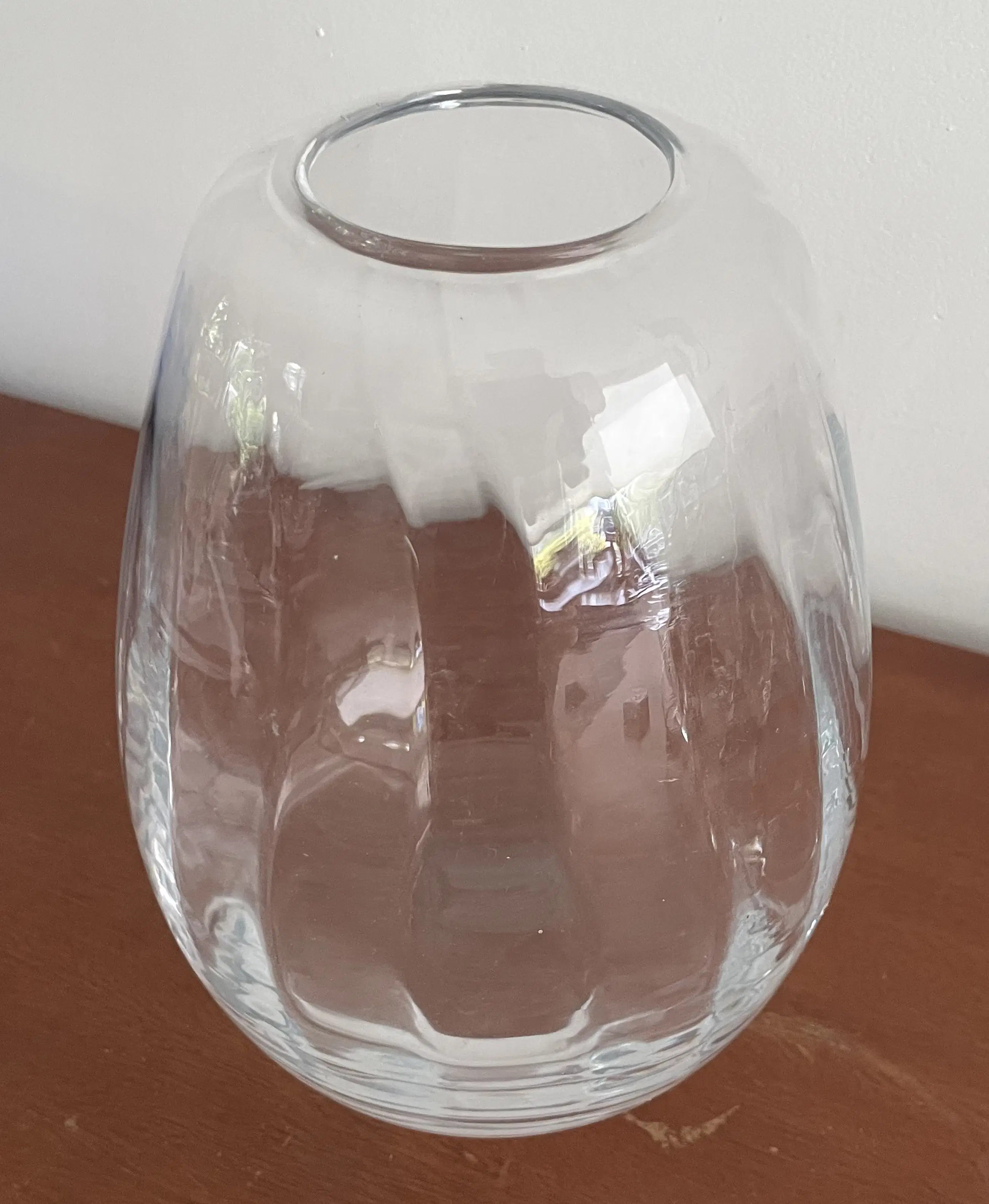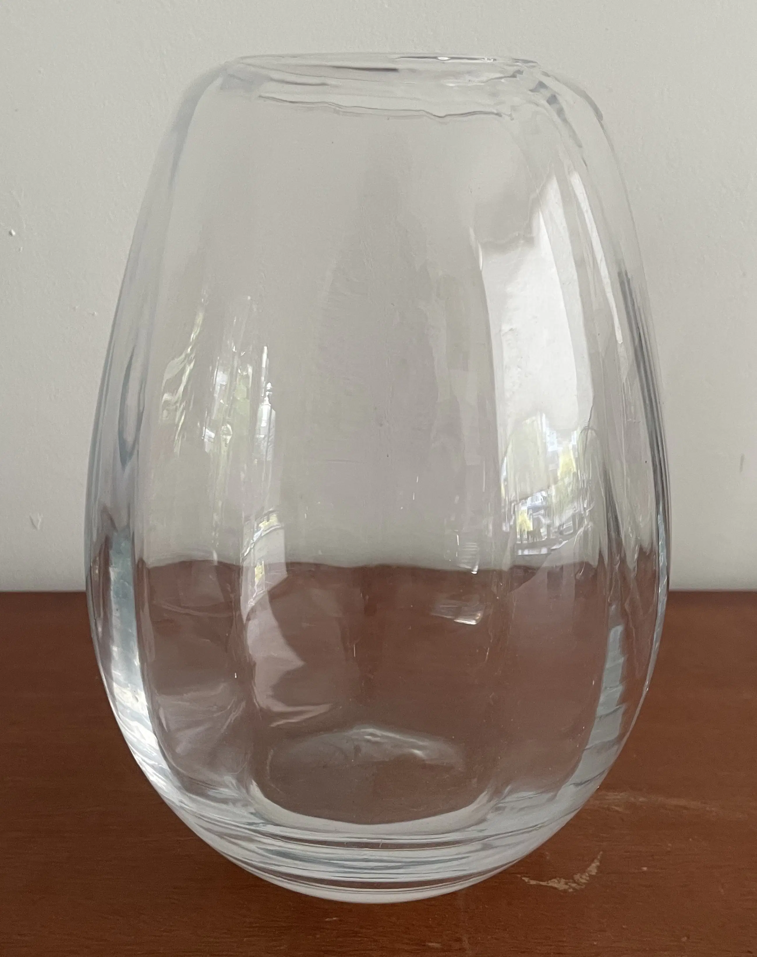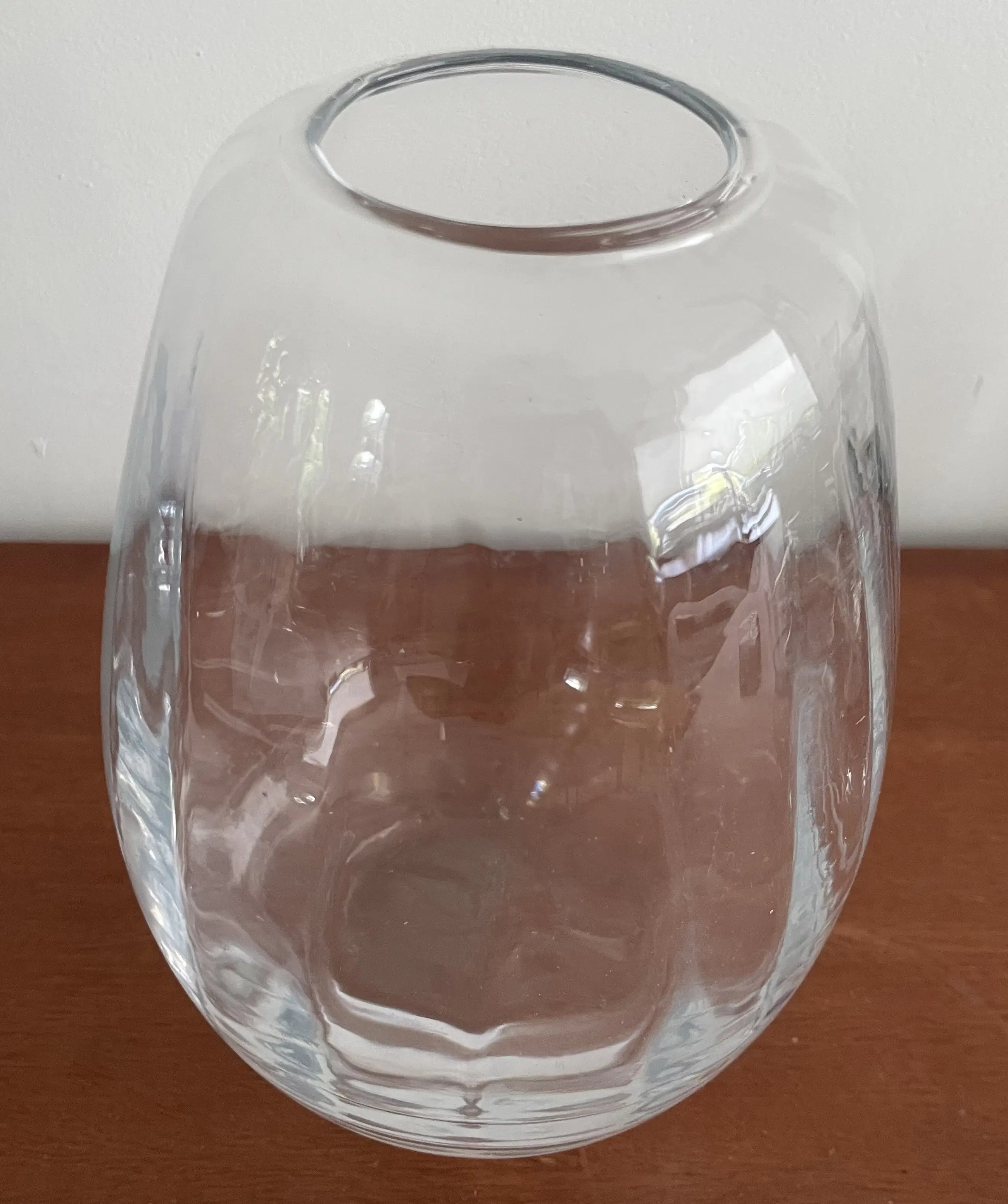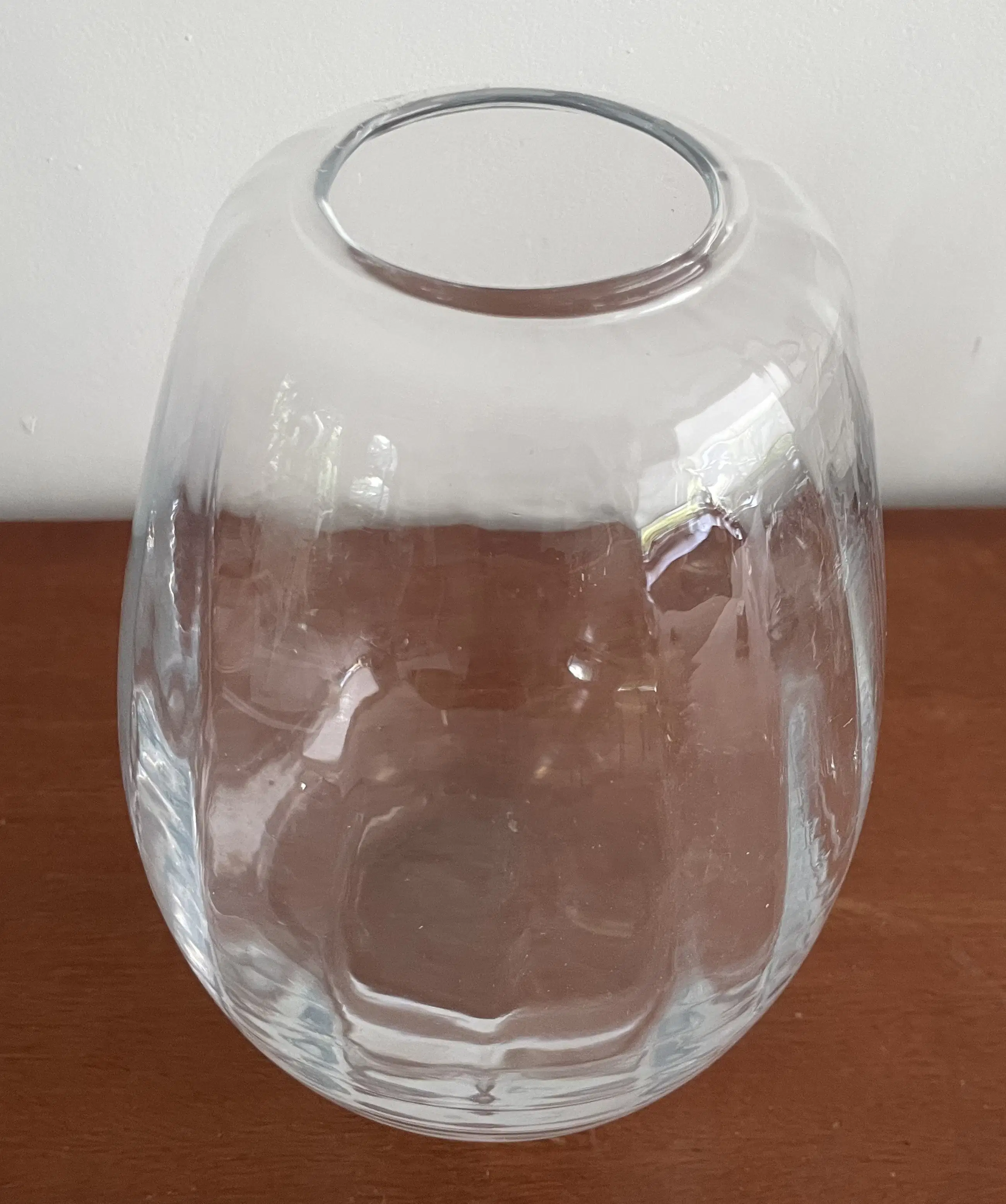 Blank glazen vaas met verticale optiek. Niet gemerkt. In zeer goede conditie.