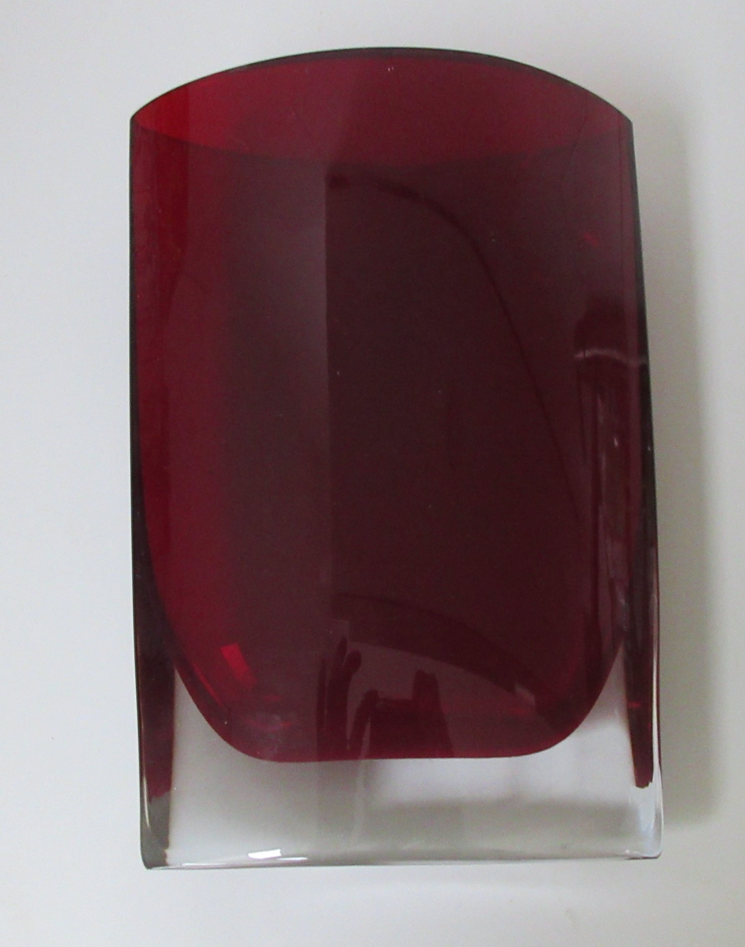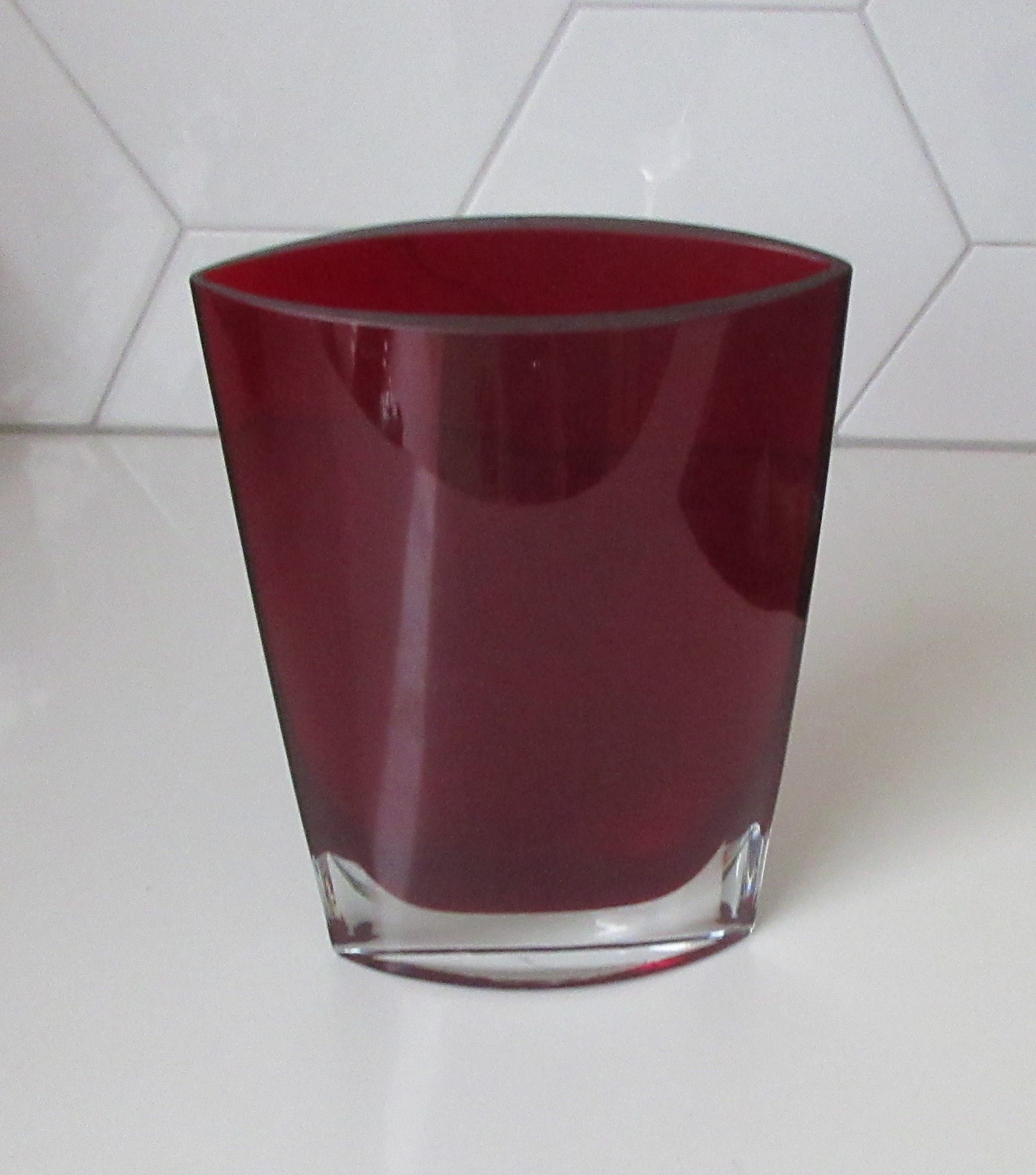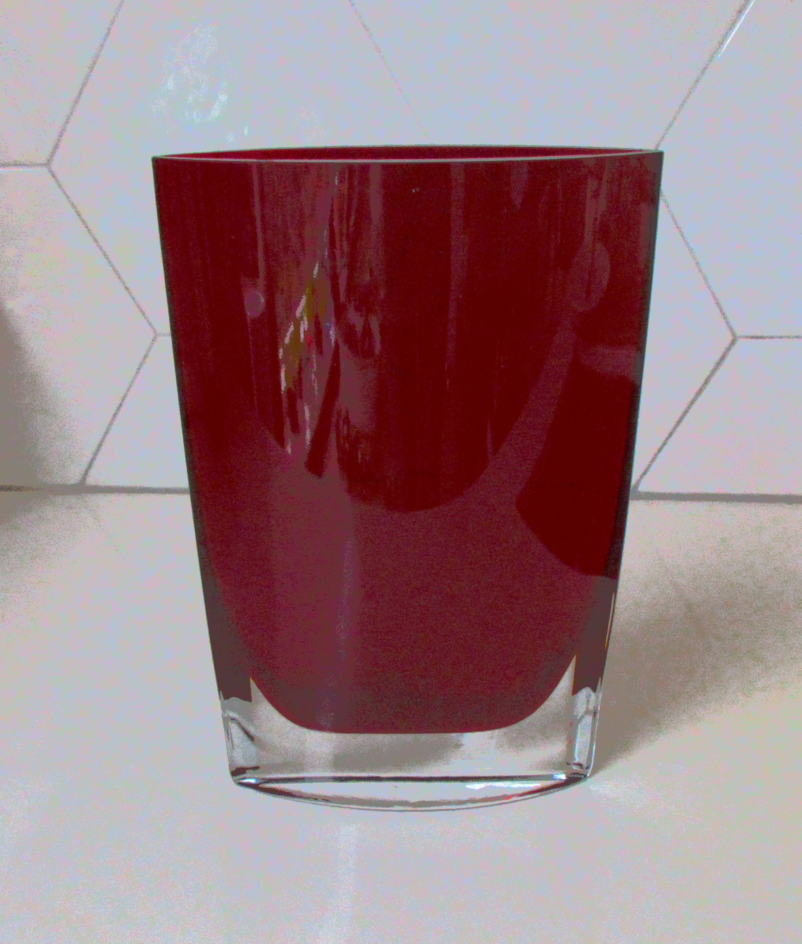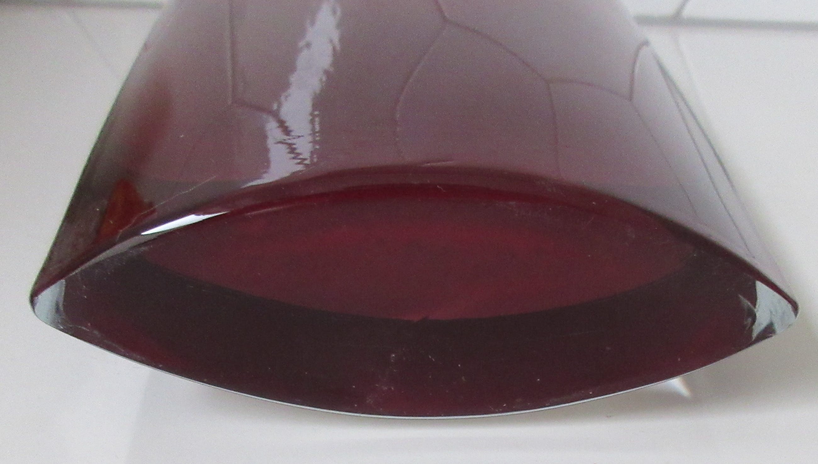 Dieprode ovale kristallen vaas van Krosno uit Polen. In prima conditie. Niet gemerkt wel voorzien van geploijste pontil merk.