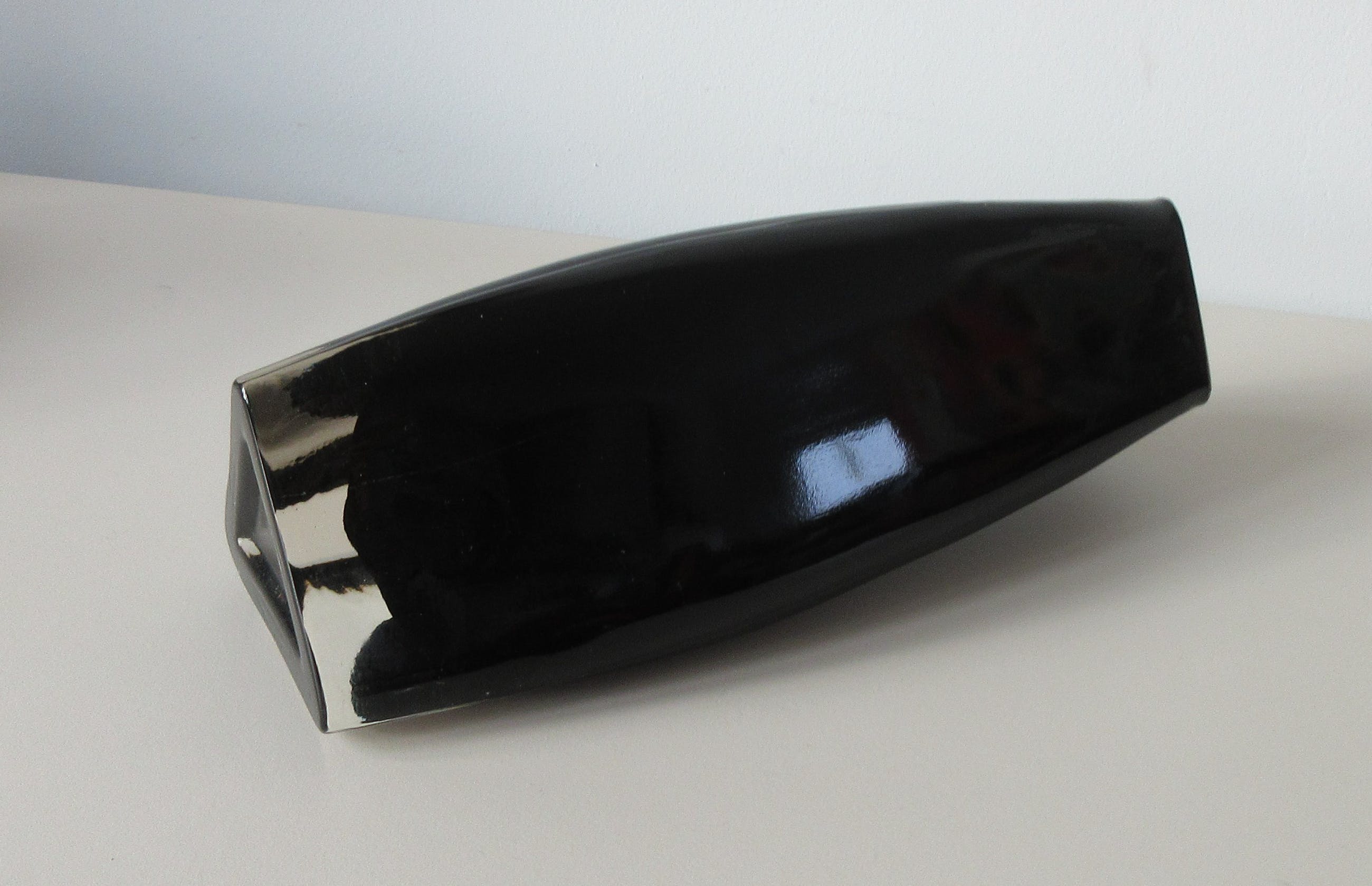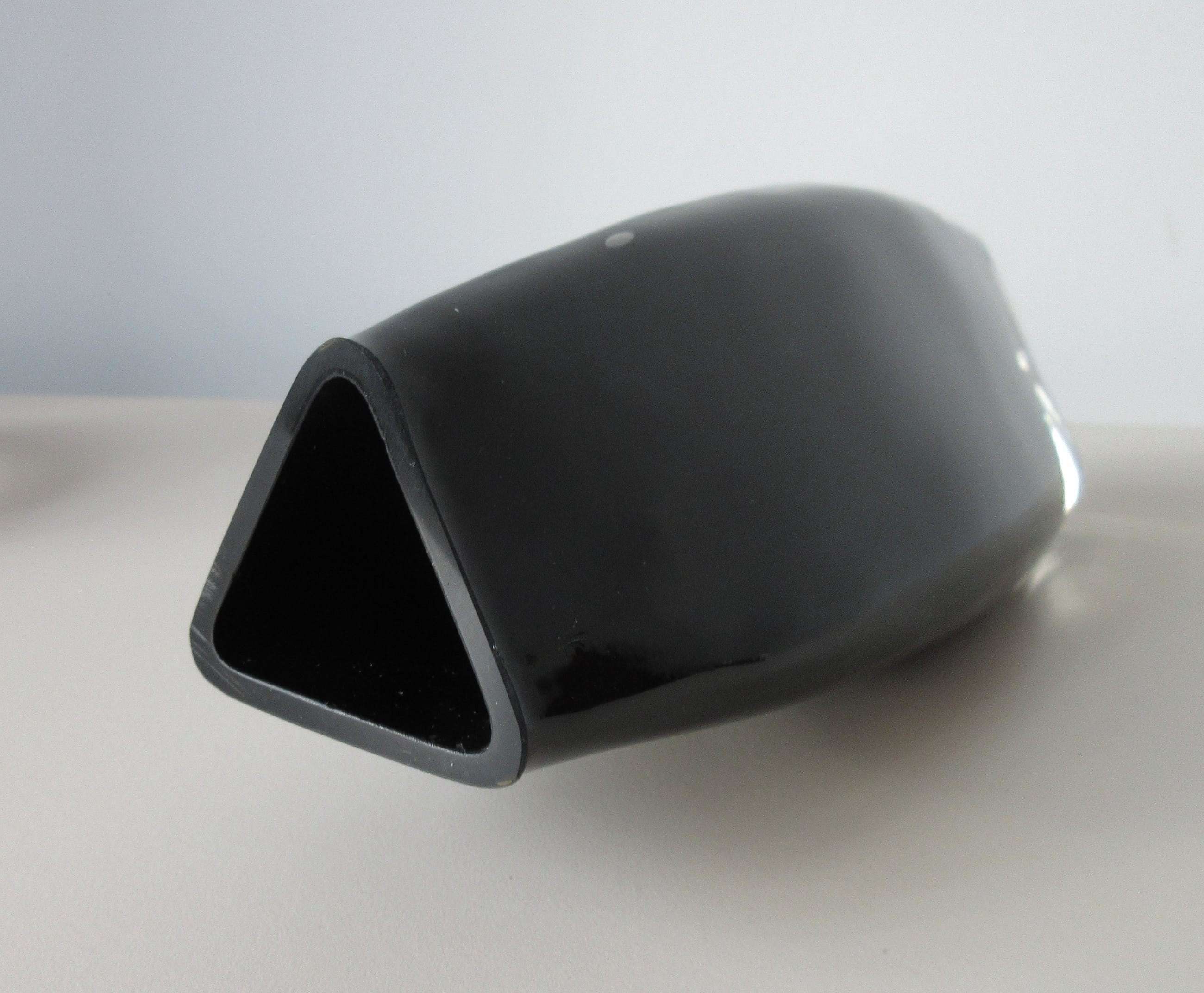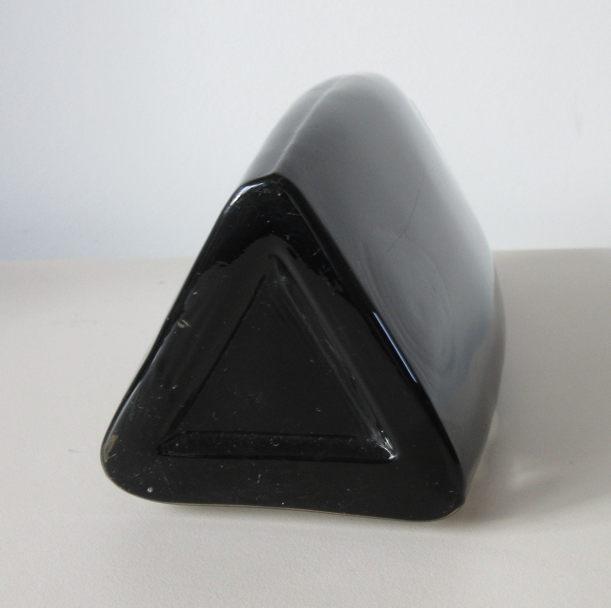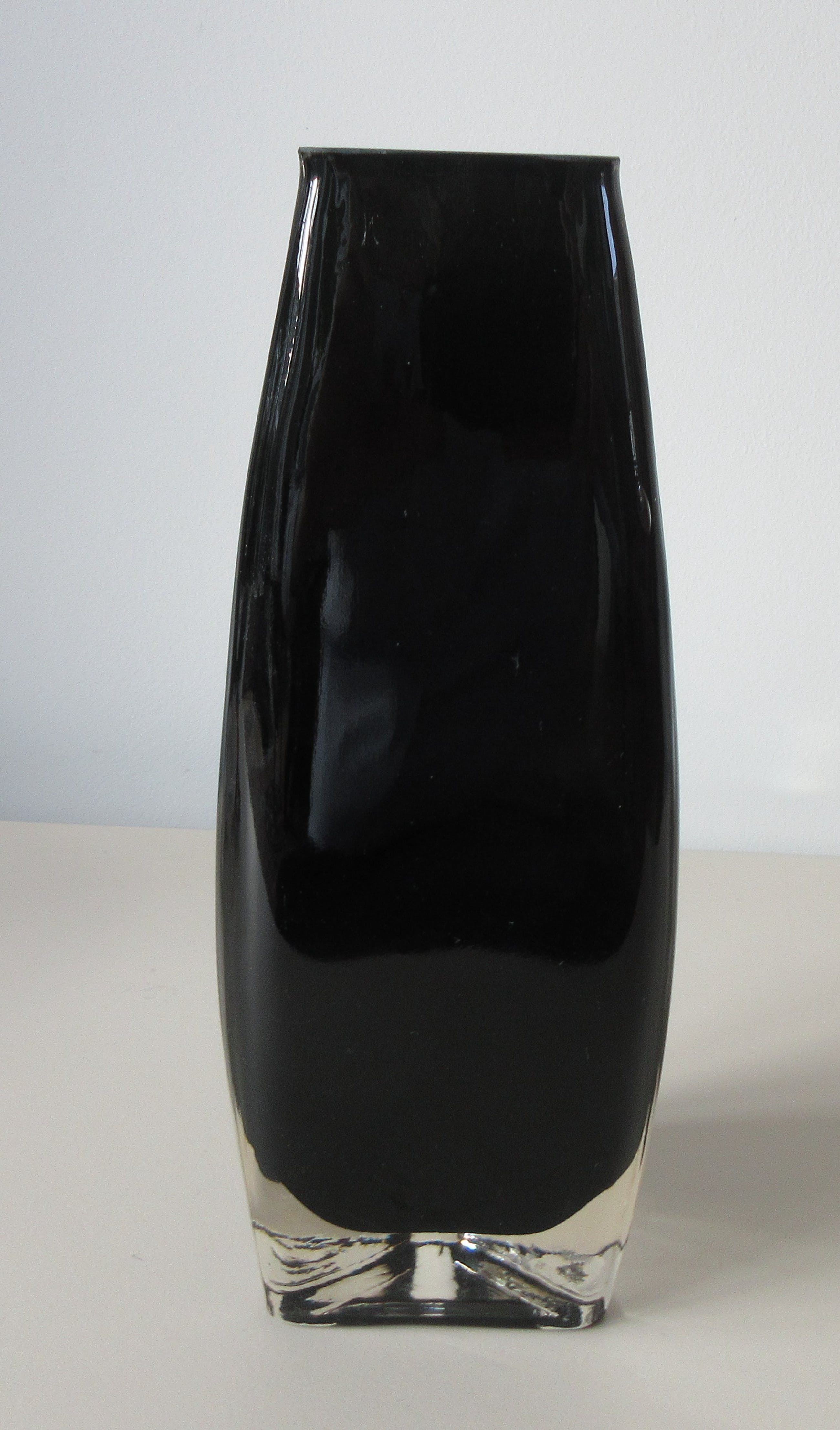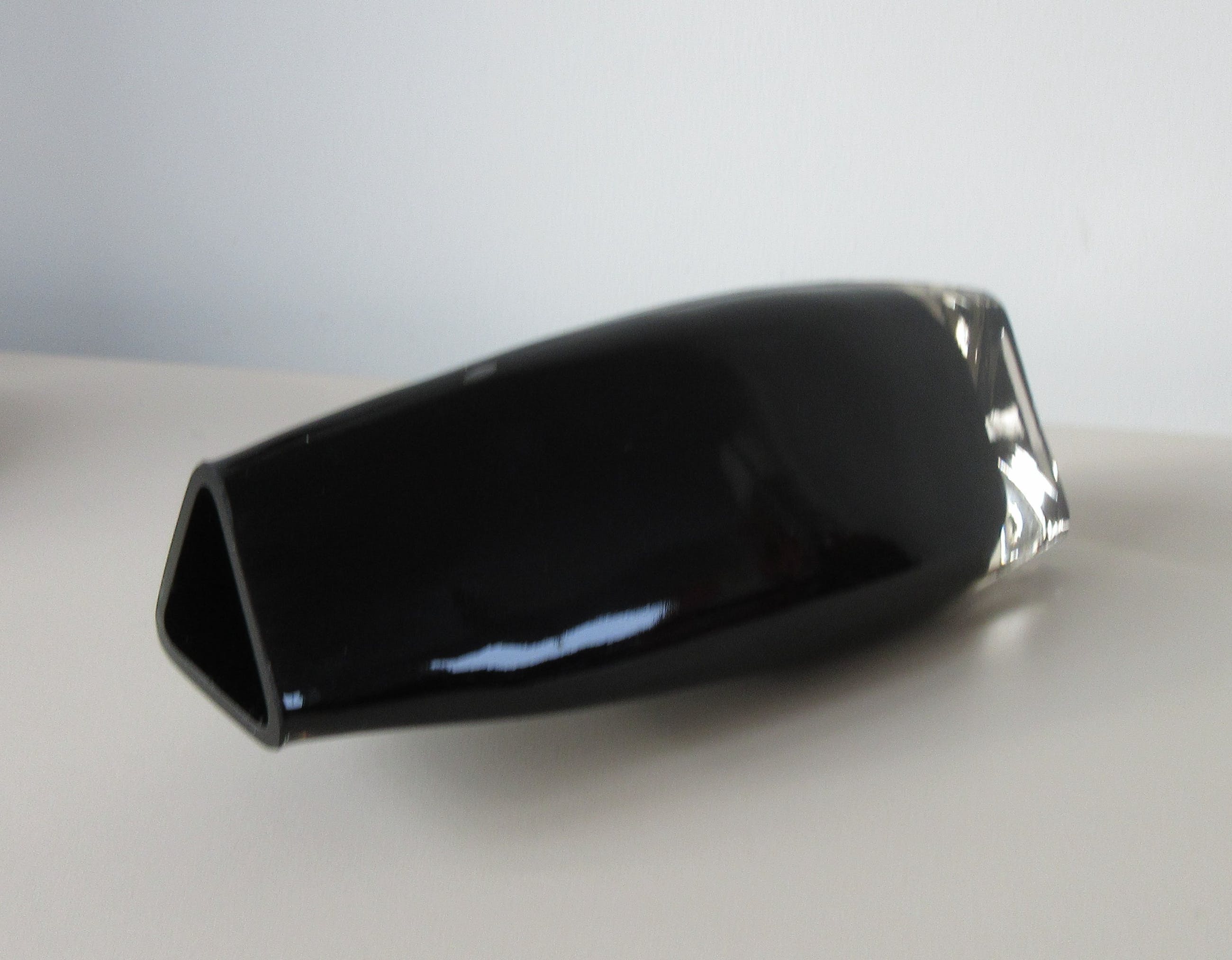 Dubbelwandige zwart en blank glazen Triangel vaas van Krosno uit Polen. Niet gemerkt. In zeer goede conditie, heeft een luchtbelletje in het glas.