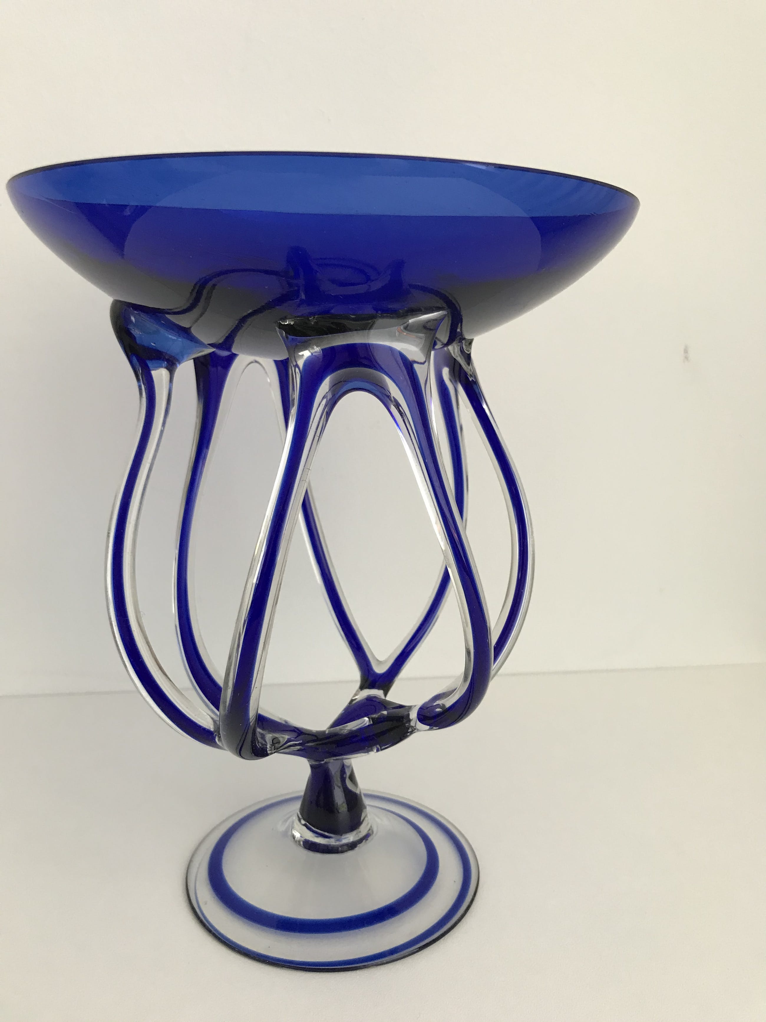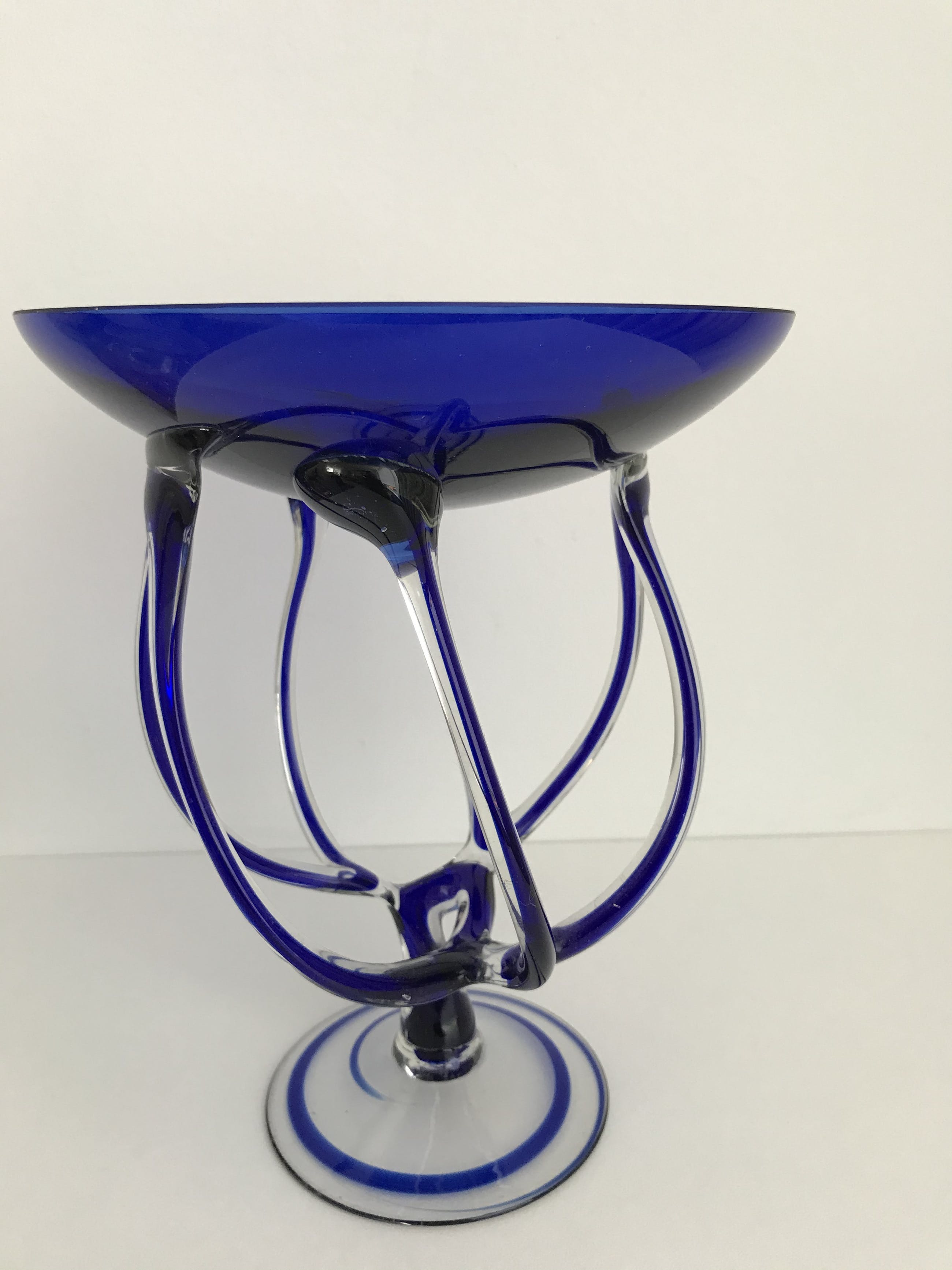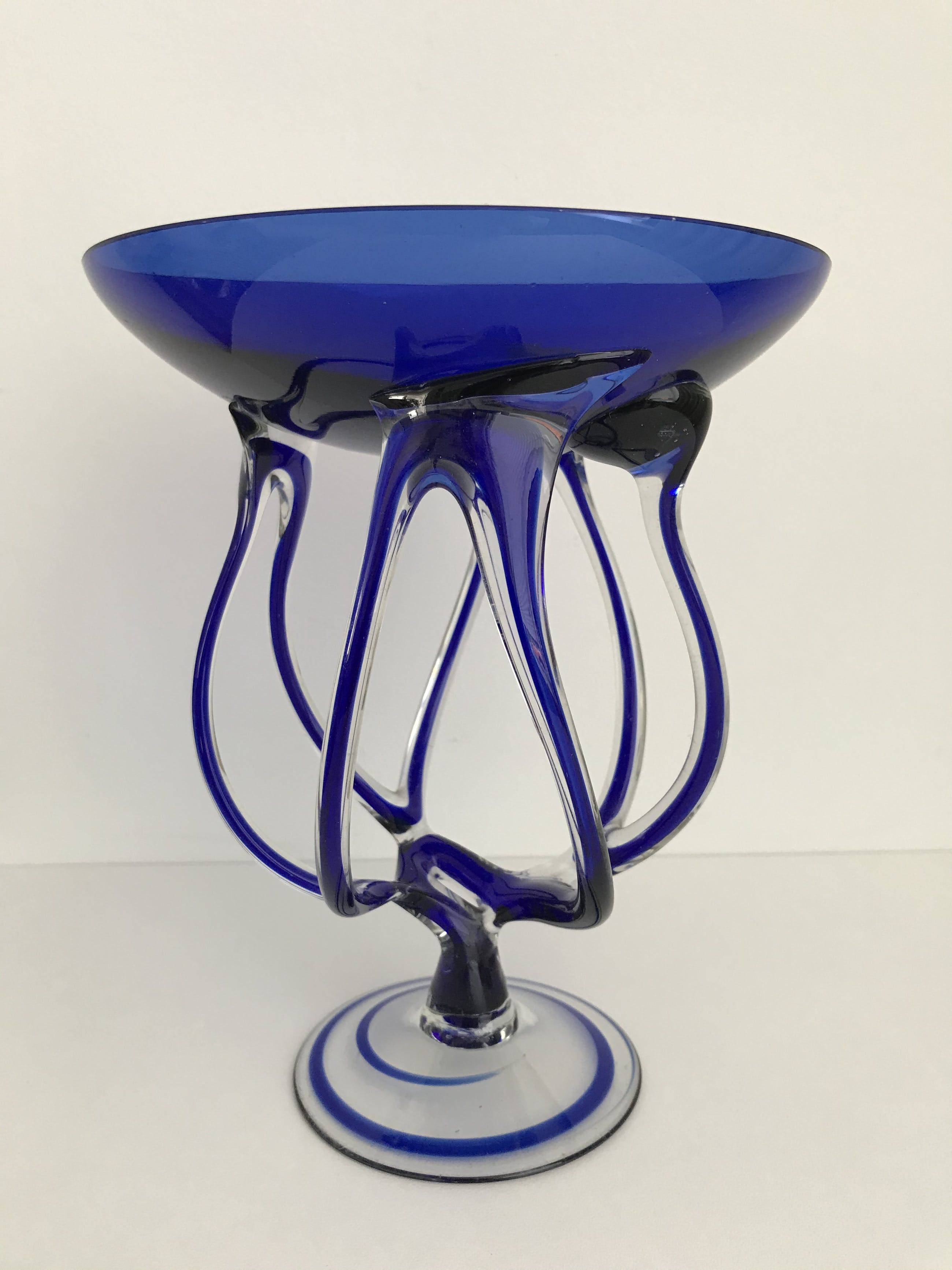 Cobalt blauwe glazen bokaal ontworpen door Jozefina Glassworks in Krosno, Polen.