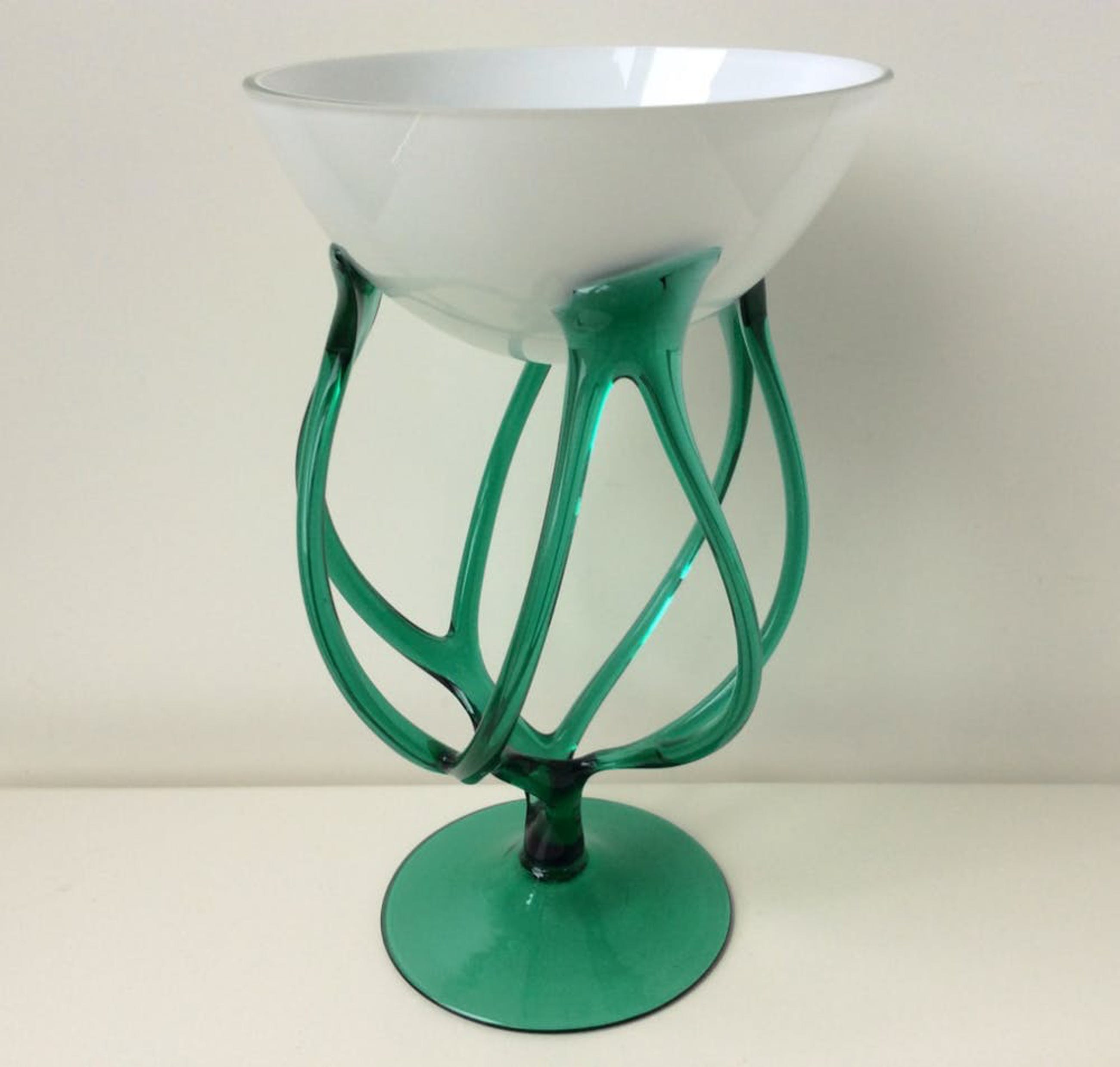 "Octopus vaas met 7 tentakels in turquoise groen en witte glazen kelk".
