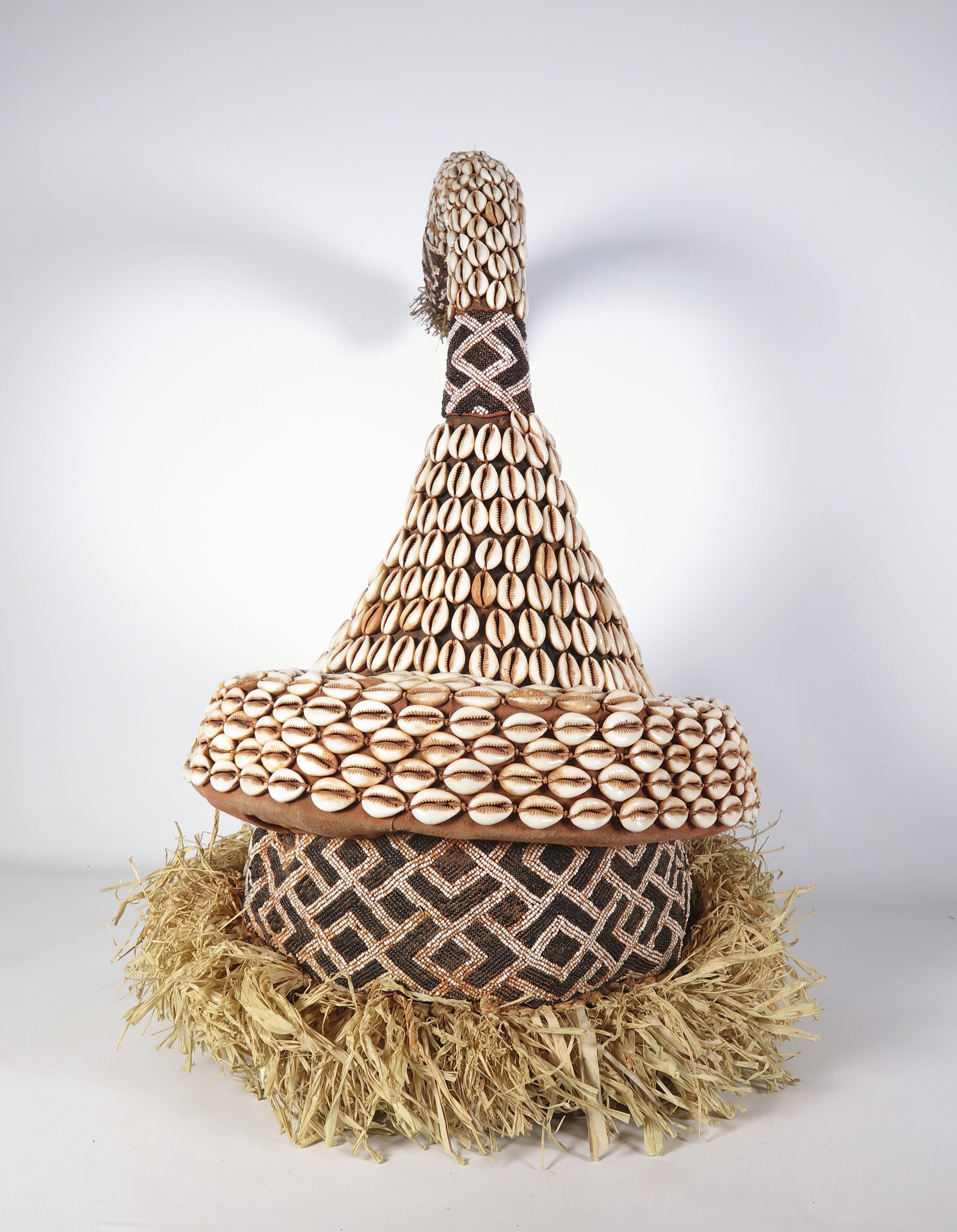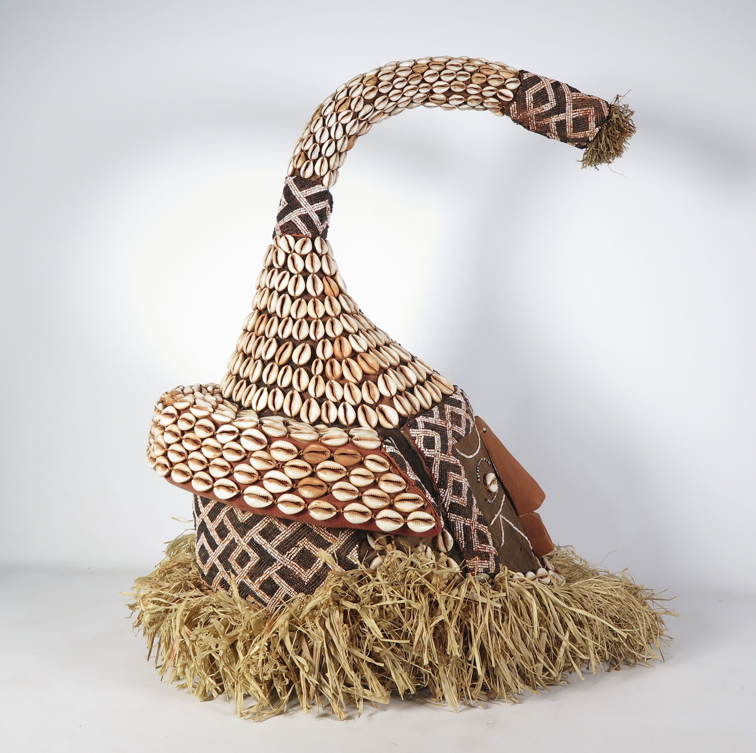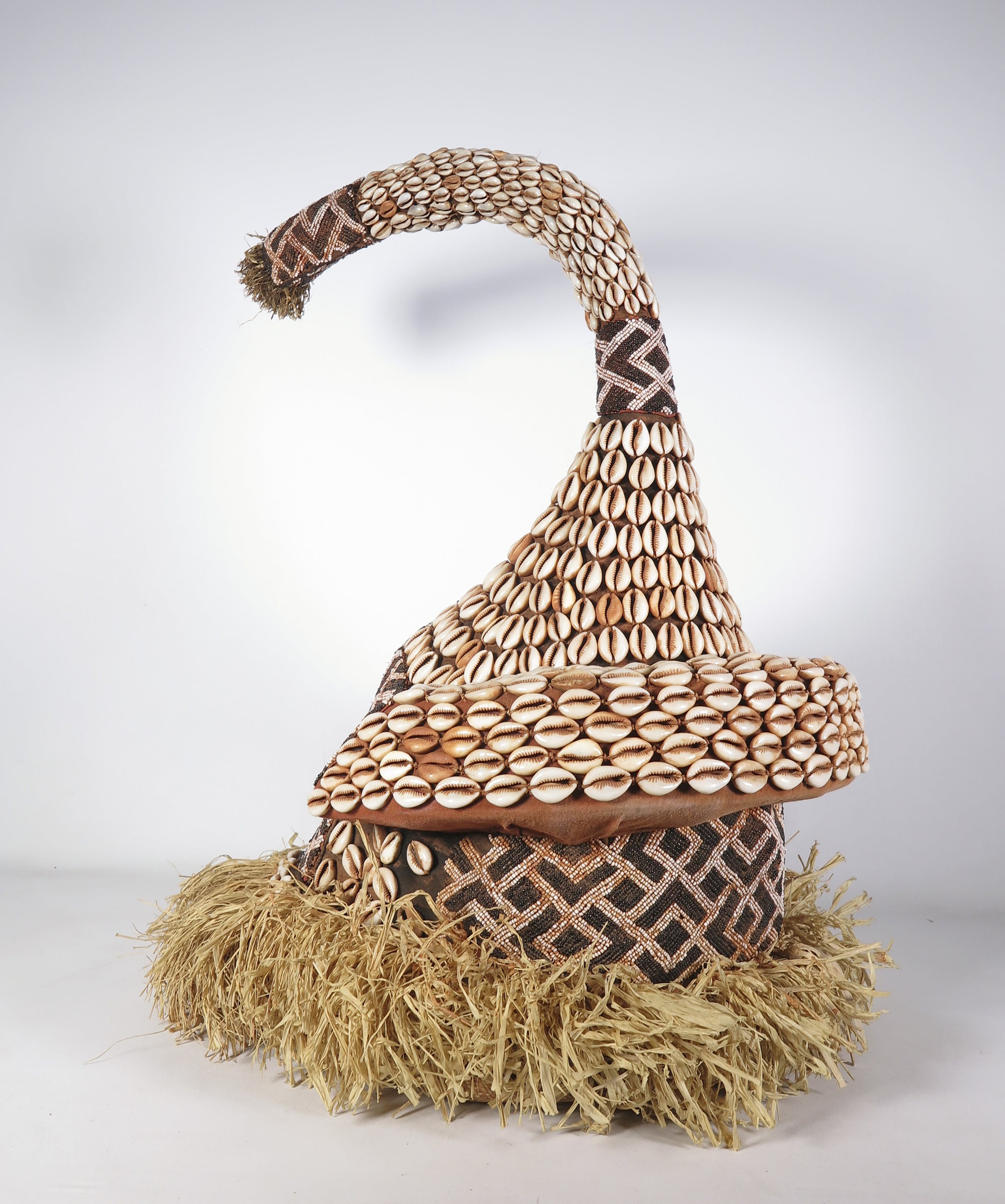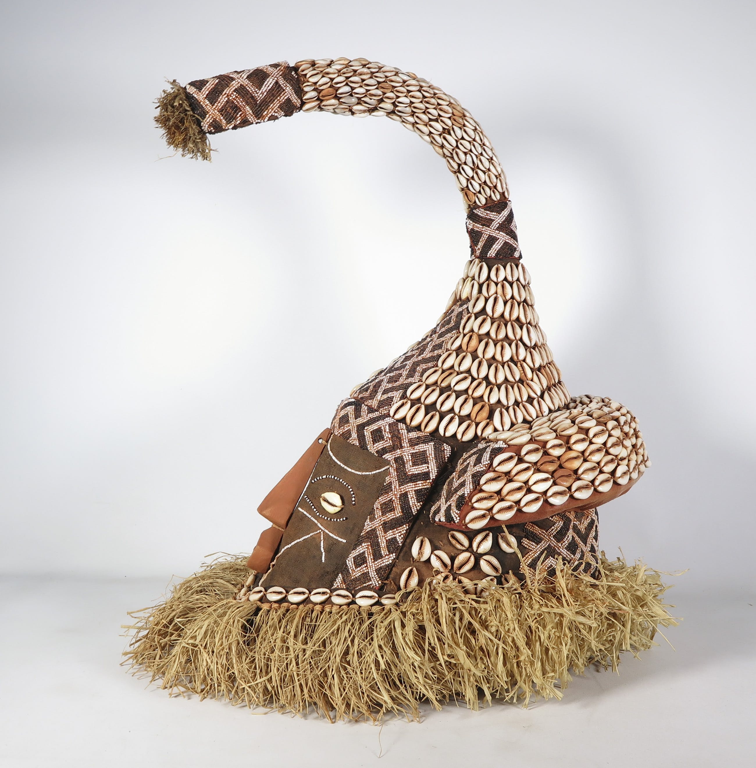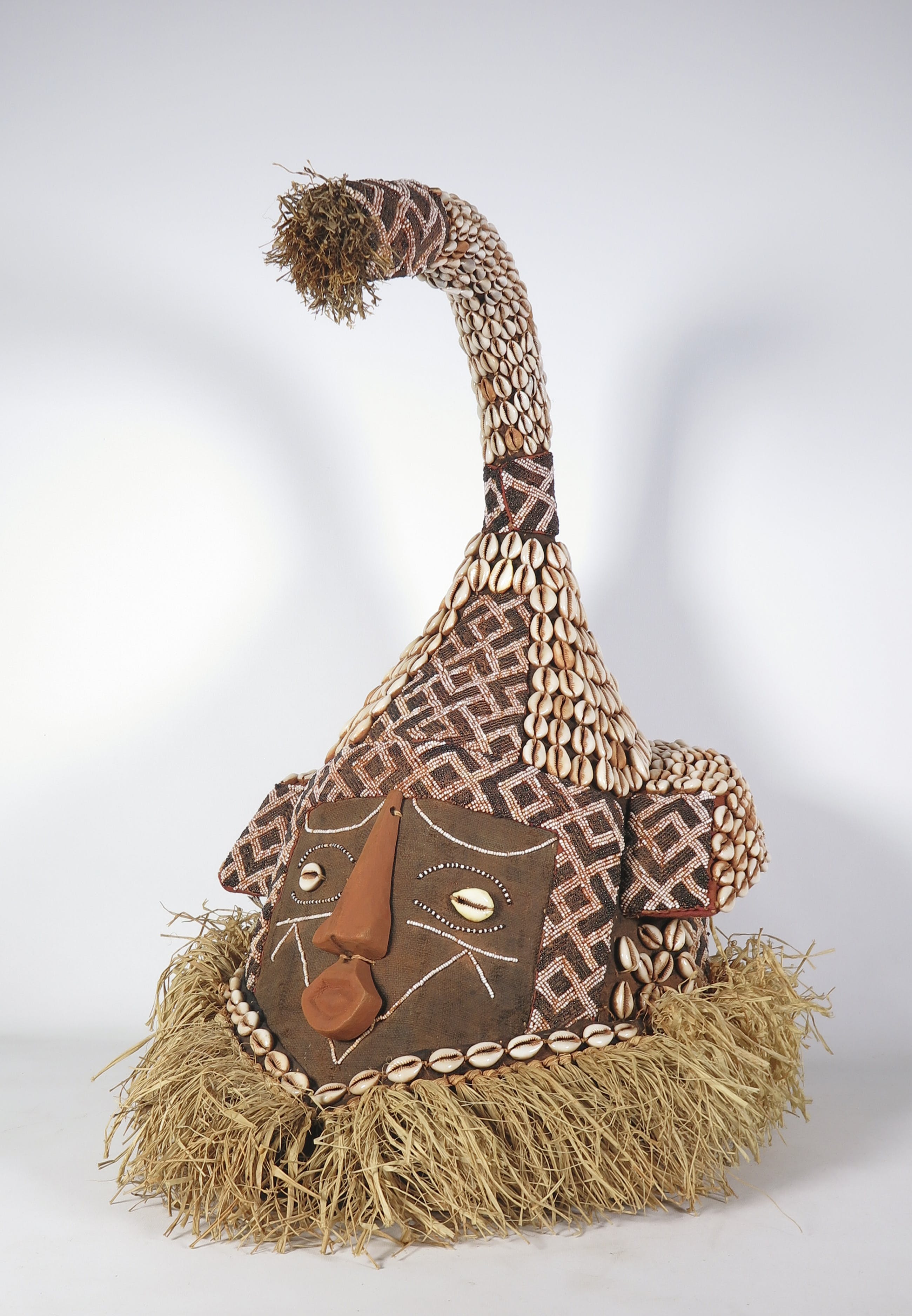 Afrikaans masker (Kuba), 20ste eeuw gemaakt van vezels, weefsels, kralen, schelpen. Ook wel een Mukyeem of Mukenga masker (olifantenmasker) genoemd.