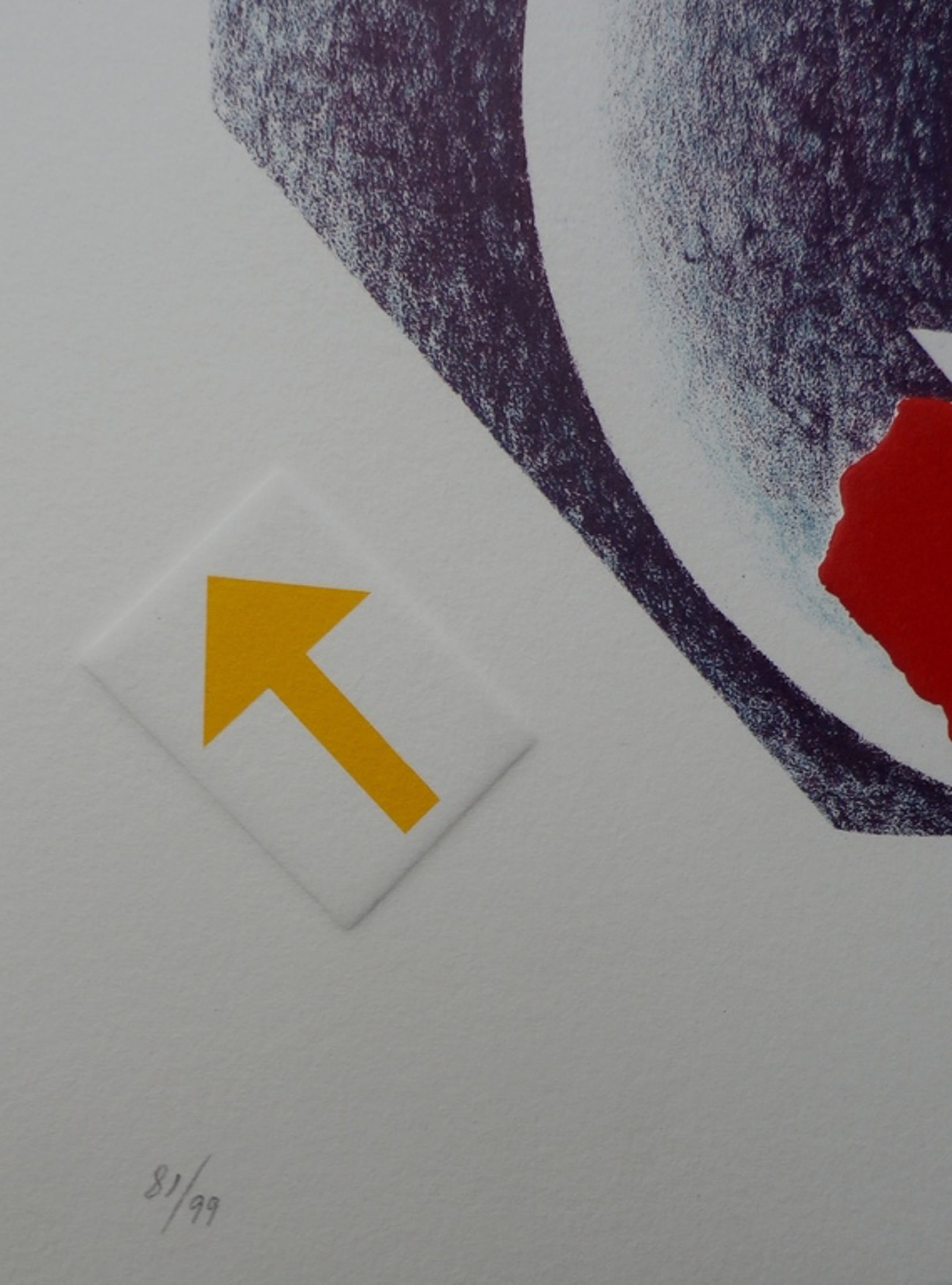 Kumi Sugai - litho: Compositie; nummer: 81/99; afm. blad: h28,5 x b24,5 cm; rechtsonder, met potlood, gesigneerd door de kunstenaar. De authenticiteit van dit werk wordt volledig gegarandeerd. Een certificaat van echtheid kan, op aanvraag, worden meegestuurd.