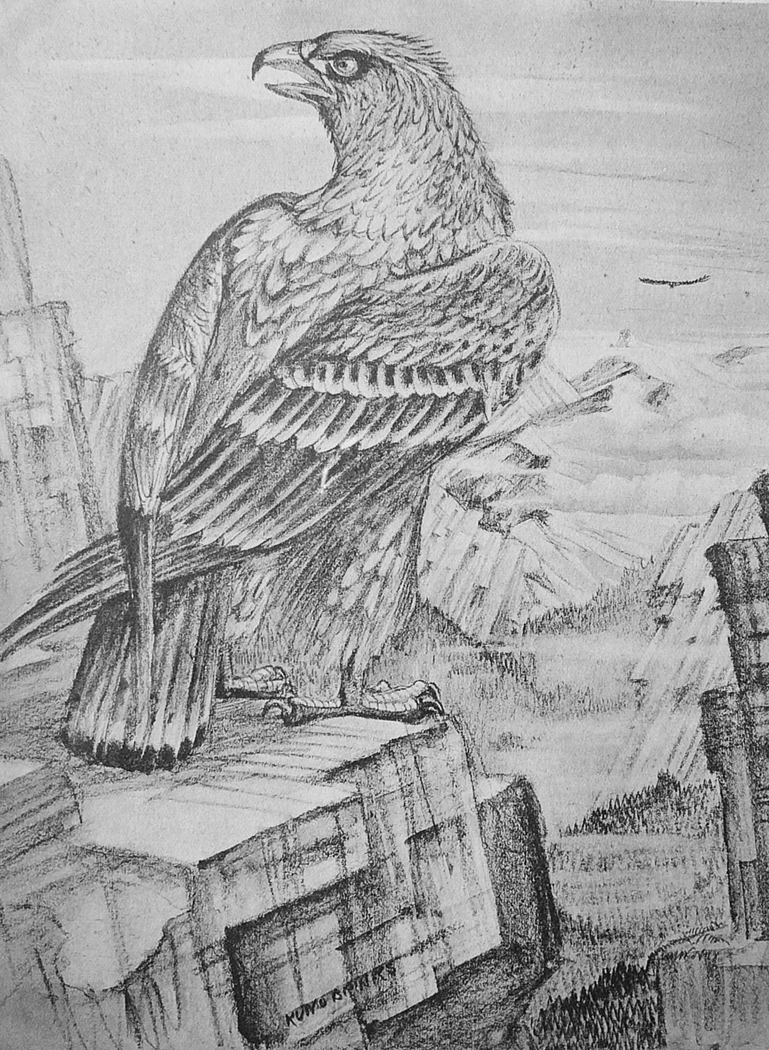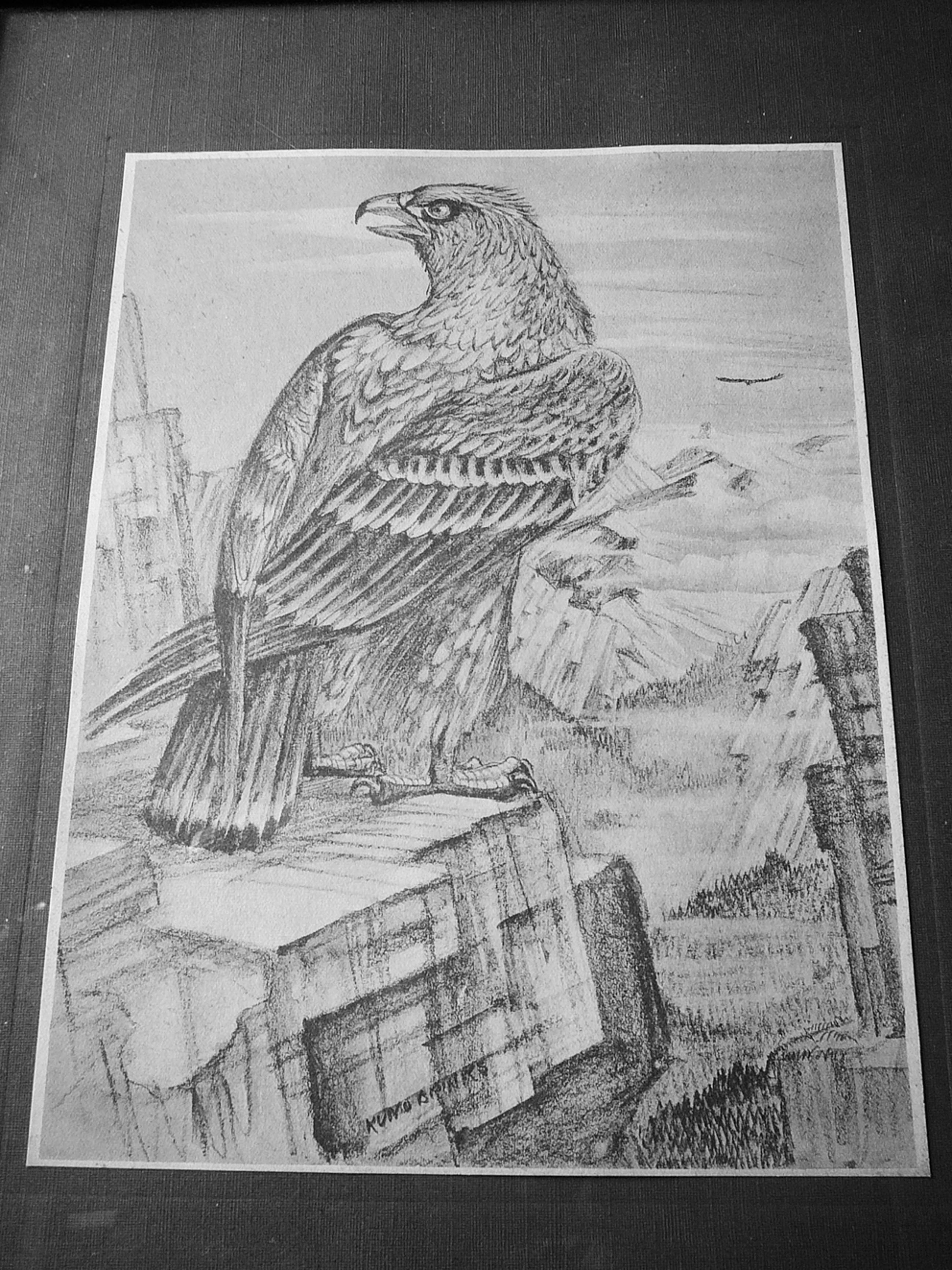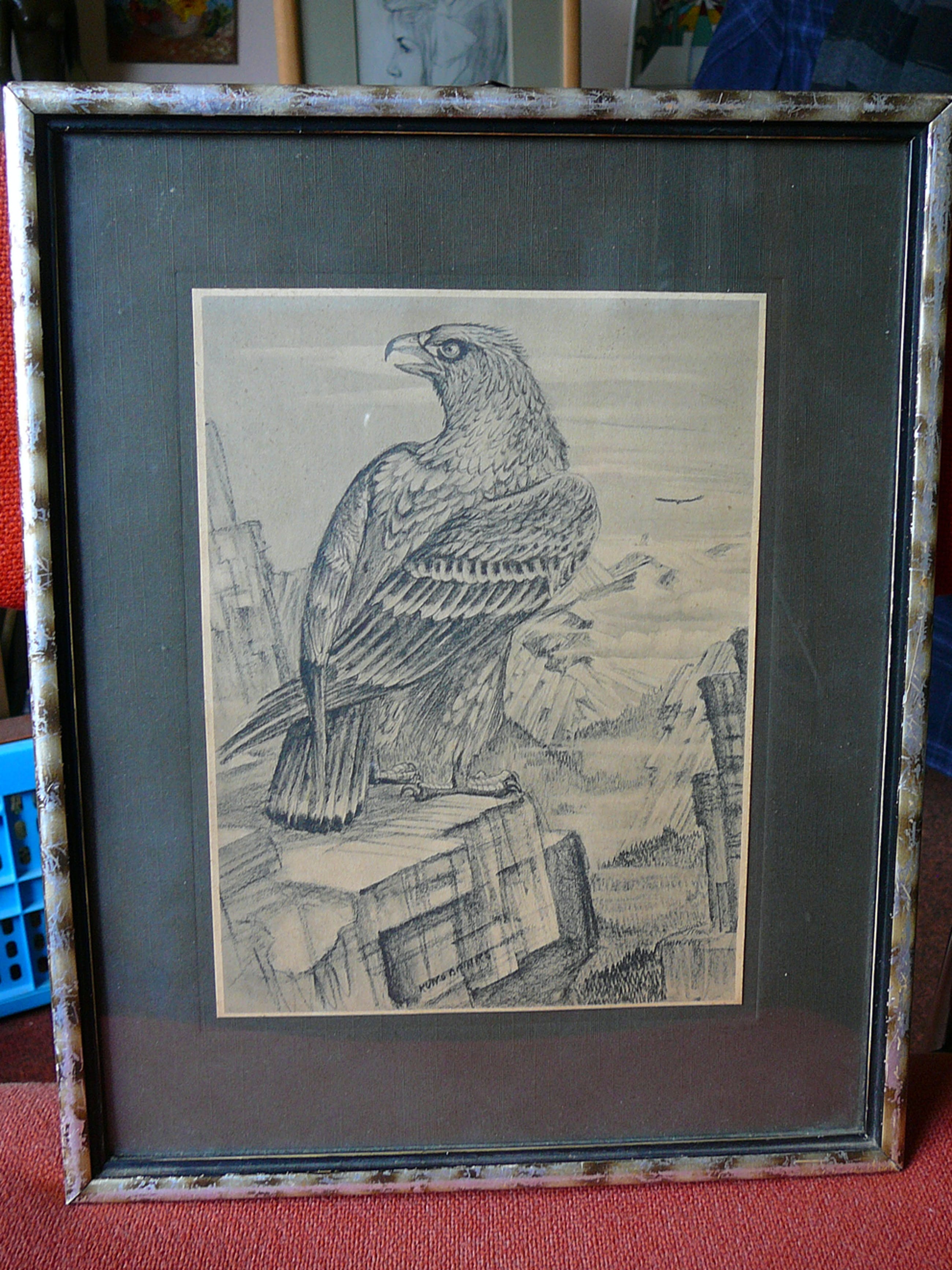 Stijlvolle lithografie van de hand van Kuno Brinks uit de dertiger jaren. Achter glas in originele lijst. Midden onder gesigneerd in de steen. Prent verwijst mogelijk naar de opkomst van het nationaal socialisme.