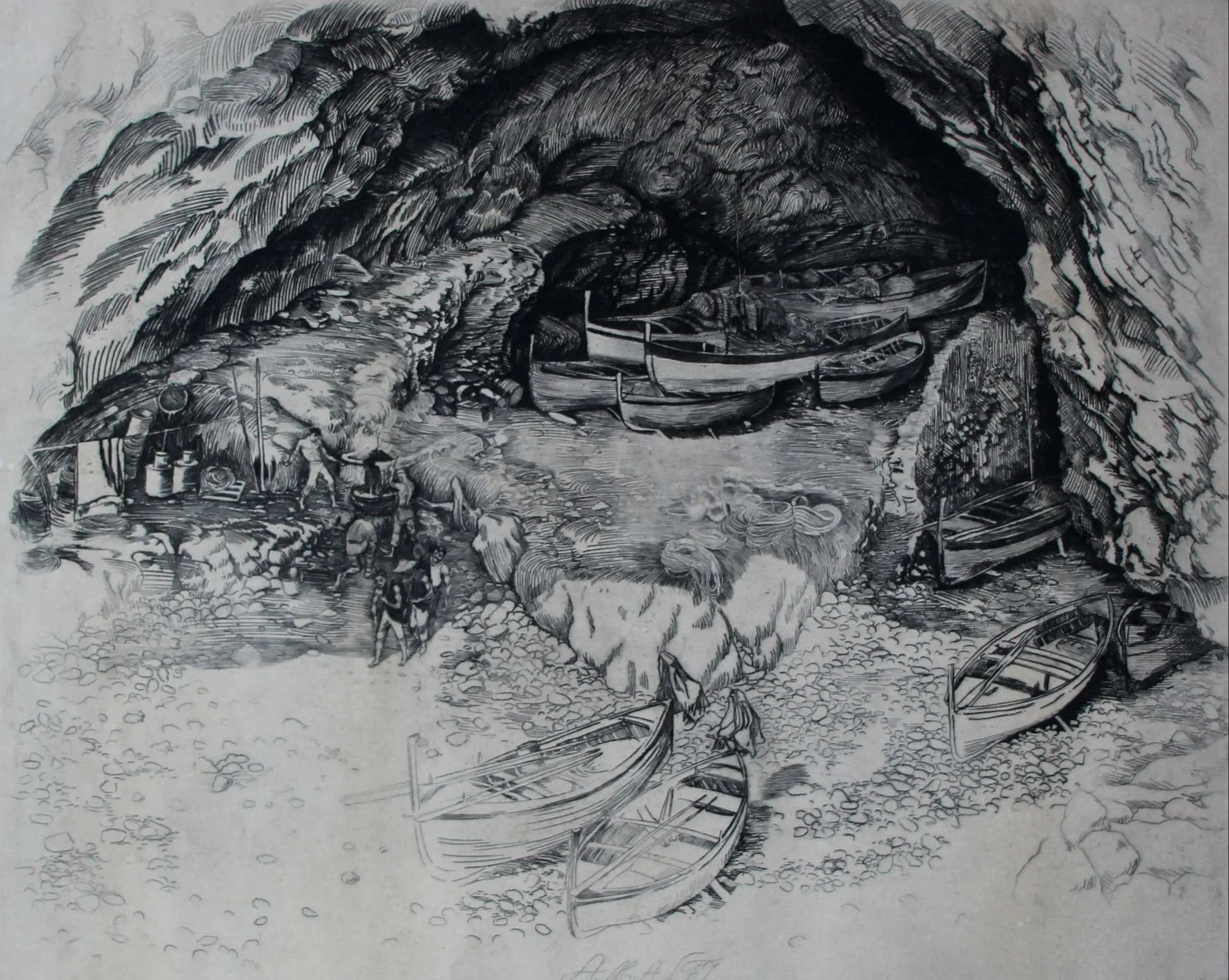 Ets van Kuno Brink. Titel: Vereniging ter bevordering van beeldende kunsten 1937. Afmetingen werk: H56 x b70 cm. Afmetingen voorstelling: H48 x b60 cm. Het werk is in de druk gesigneerd door de kunstenaar. De authenticiteit van het, aangeboden, werk wordt volledig gegarandeerd. Een certificaat van echtheid kan, op aanvraag, worden gemaild.