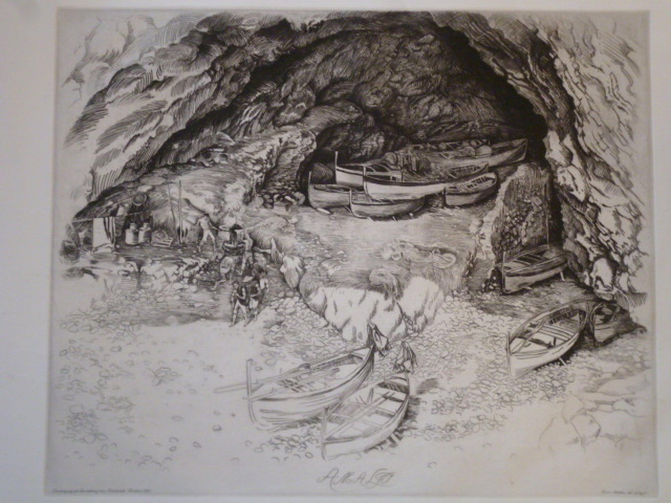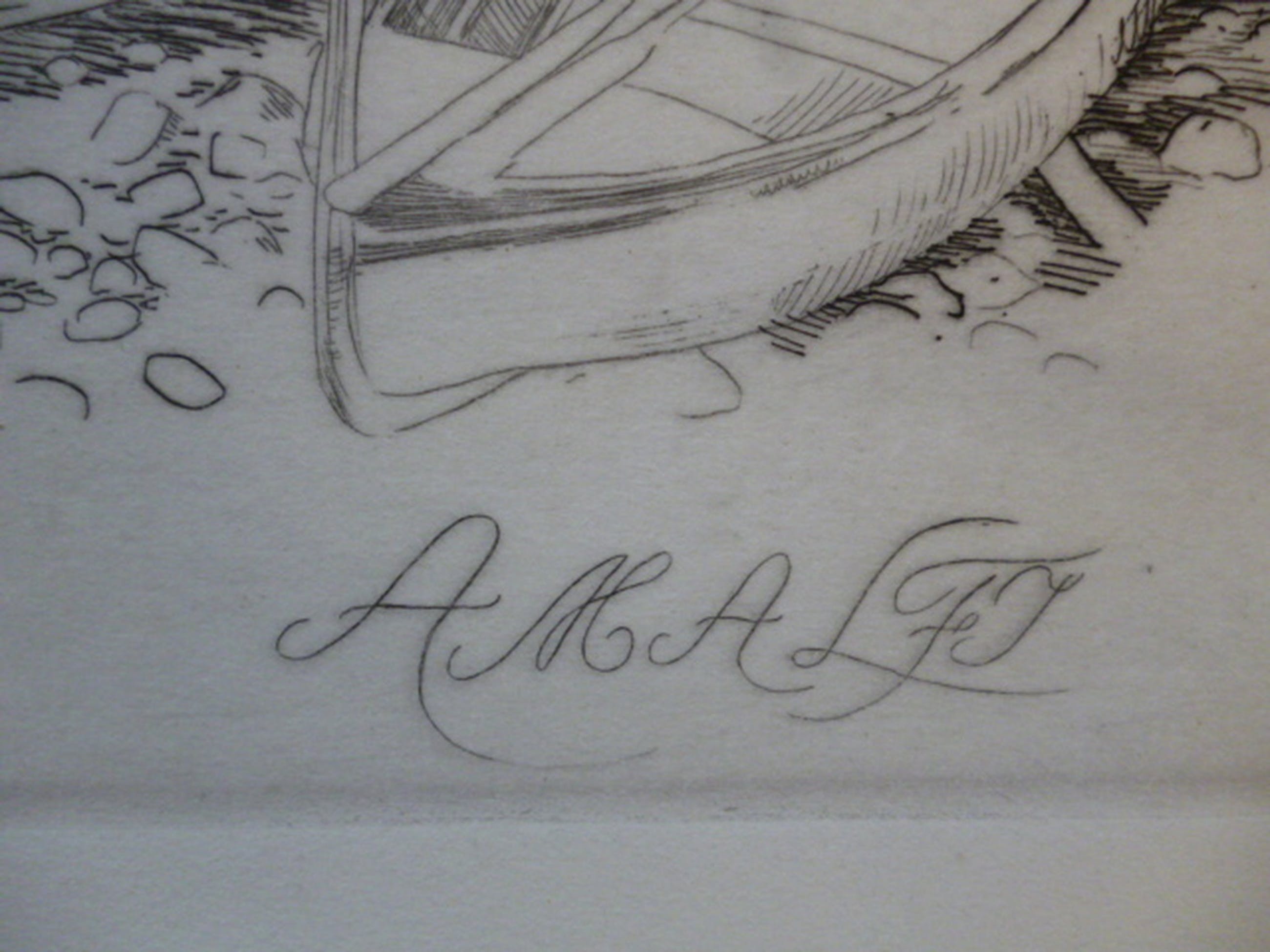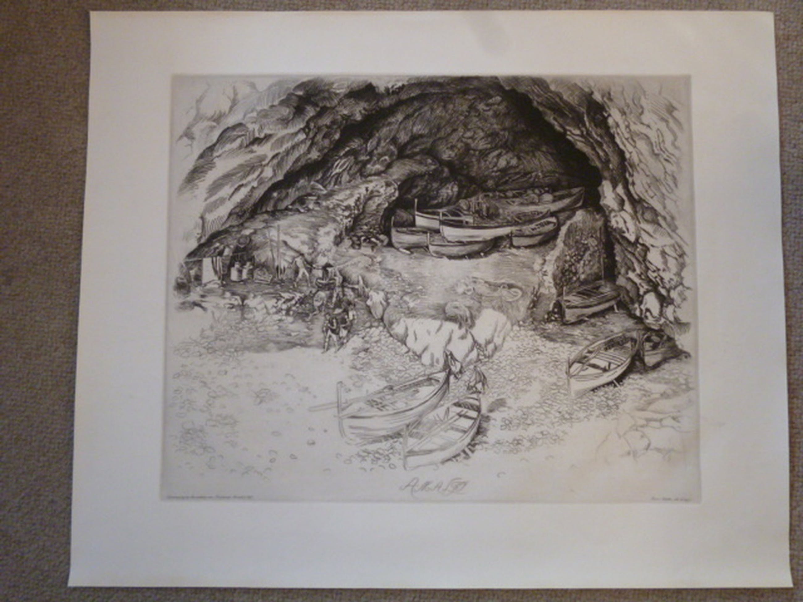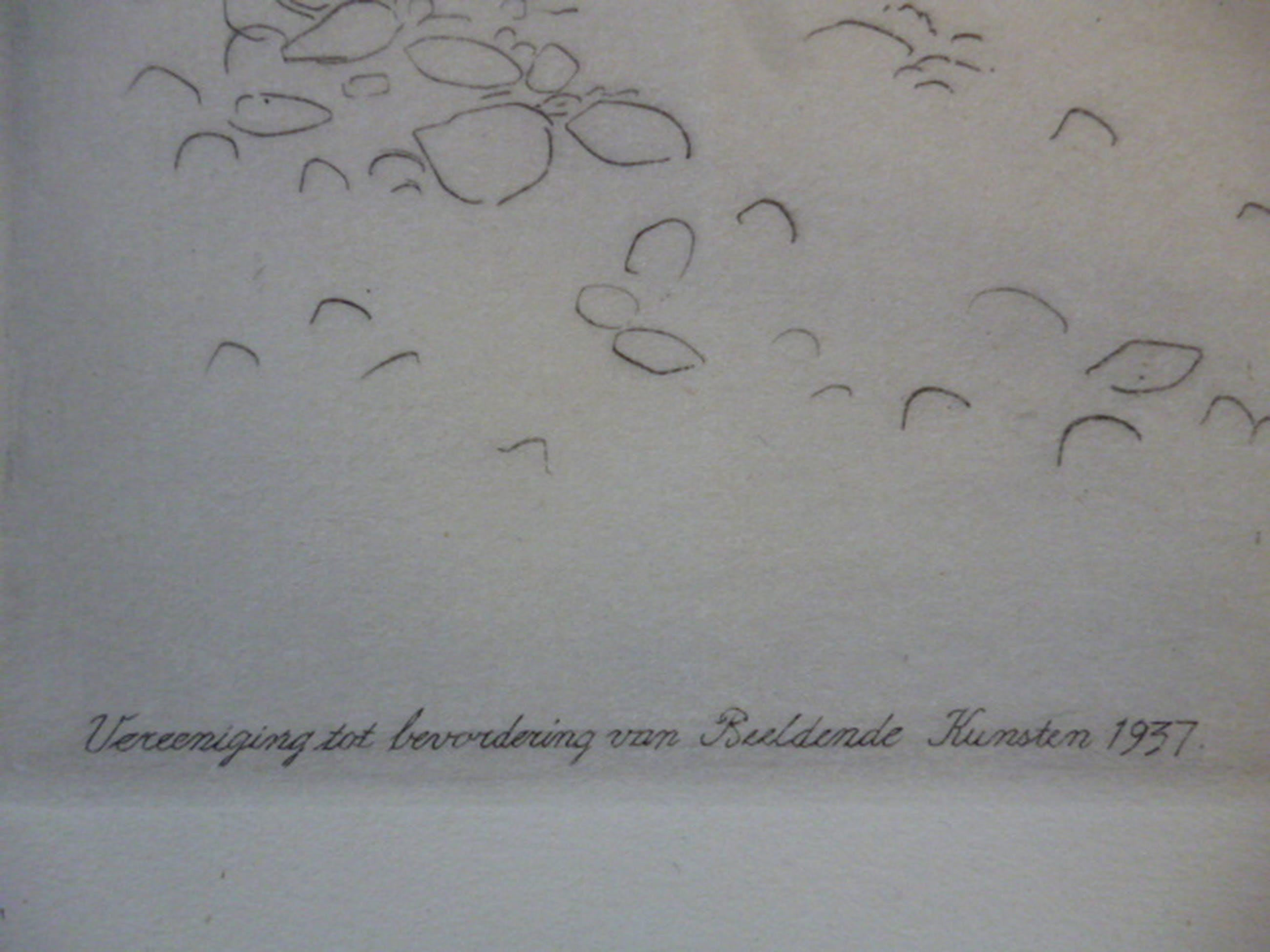 Ets uit 1937. In de plaat gesigneerd rechtsonder. Getiteld middenonder.