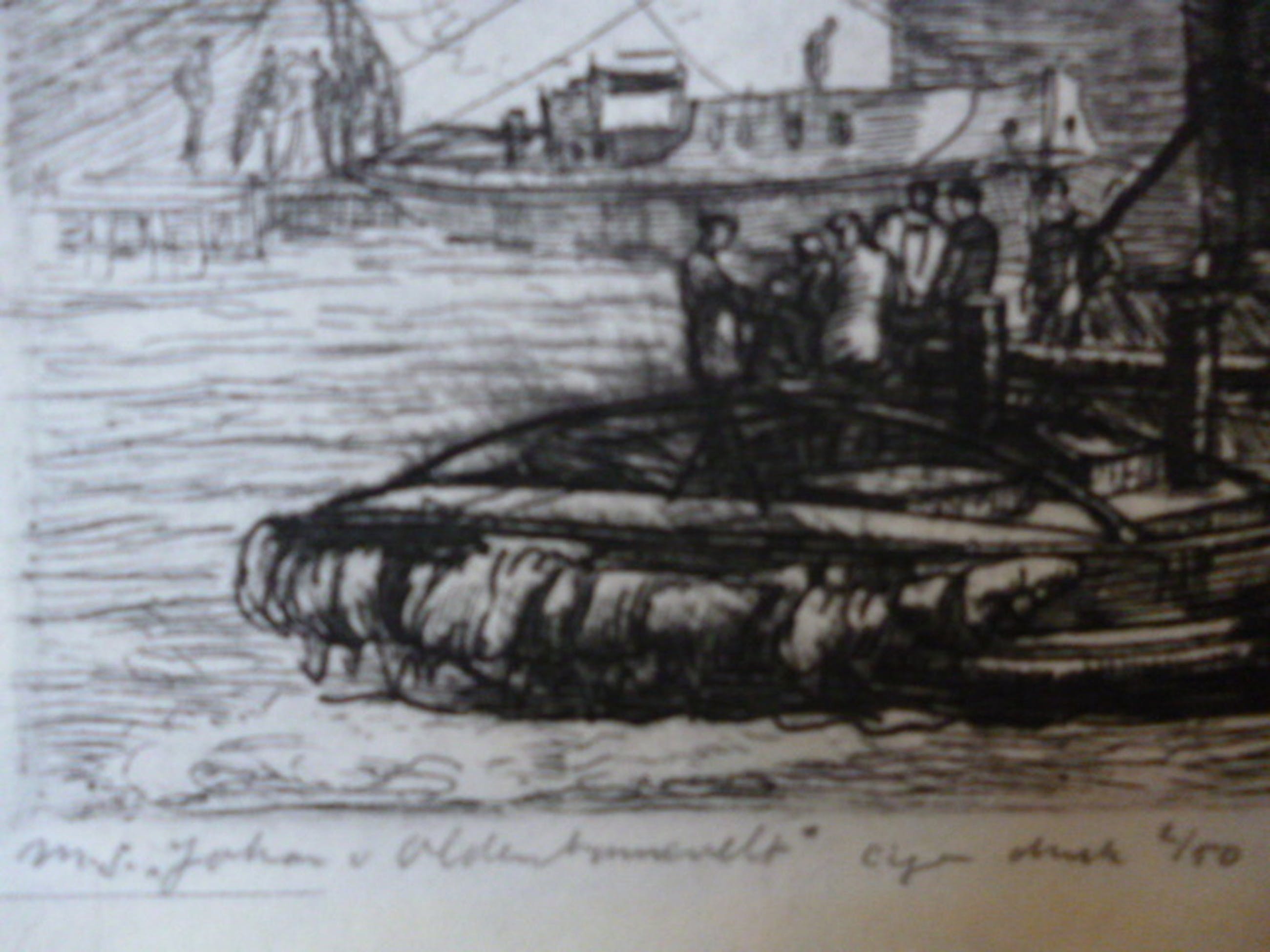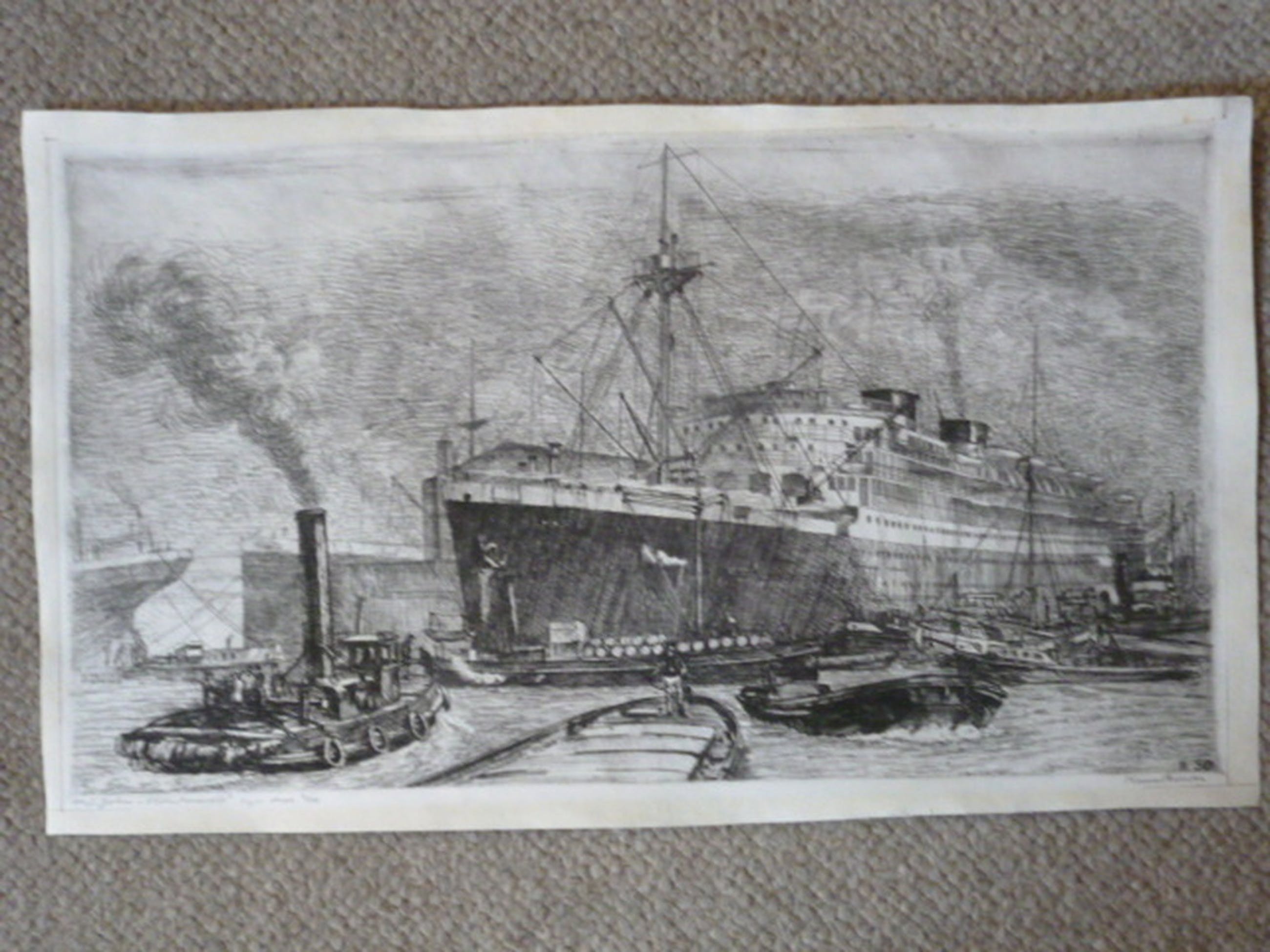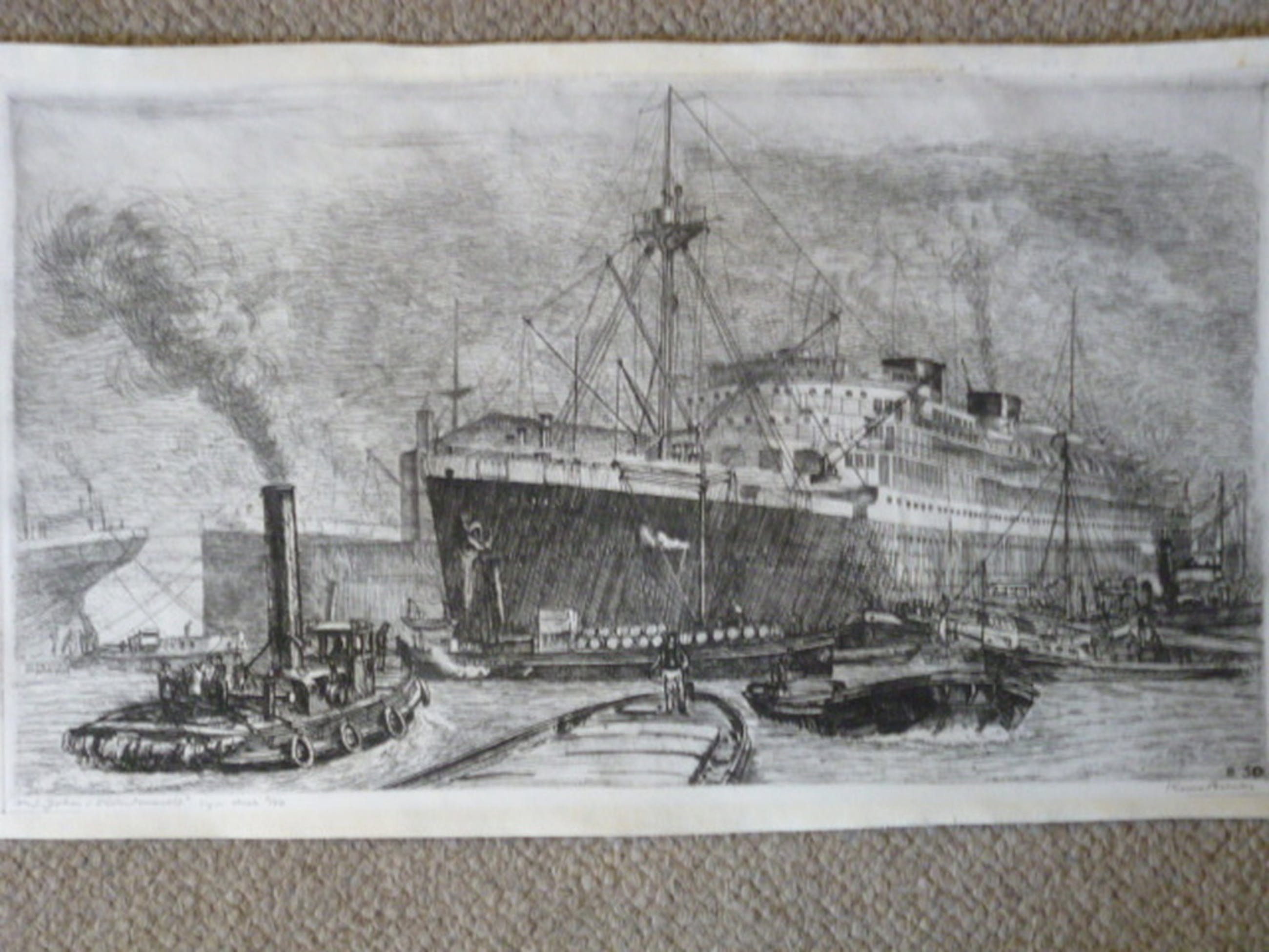 Ets uit 1930. Potlood gesigneerd rechtsonder. Getiteld en genummerd 2/50 linksonder. In de plaat gemonogrammeerd en gedateerd